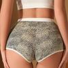 Bóxers de Algodón Puro para Mujer, Estampado de Leopardo, Empalme Blanco, Transpirables, Anti-Exposición, Talla Grande, Cintura Alta, Control de Abdomen
