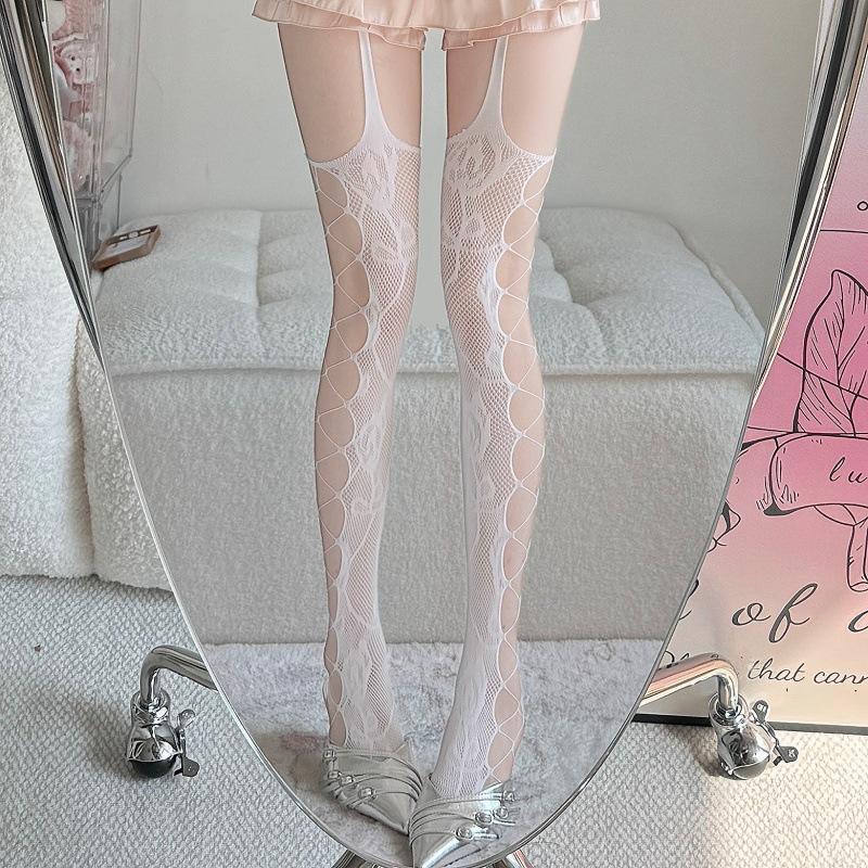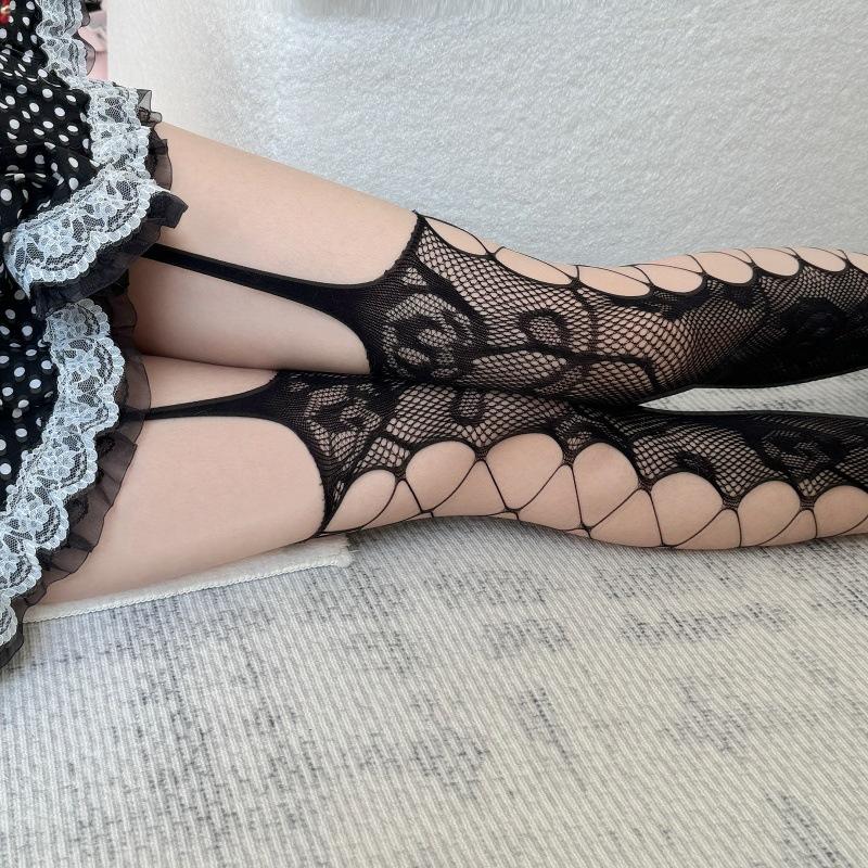 Sexy Chica Caliente Rosa JK Medias Negras Mujer Patrón Medias Finas Estilo Deseo Puro Medias de Red de Moda Laterales Ahuecadas