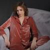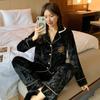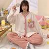 Otoño e invierno para mujer, pijama grueso de forro polar doble cara para estar en casa, de alta gama, cárdigan con solapa, conjunto de pantalones largos para papá