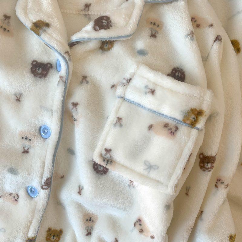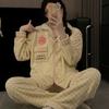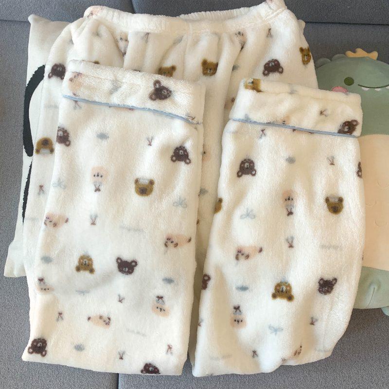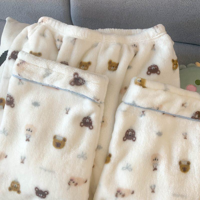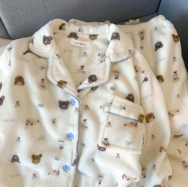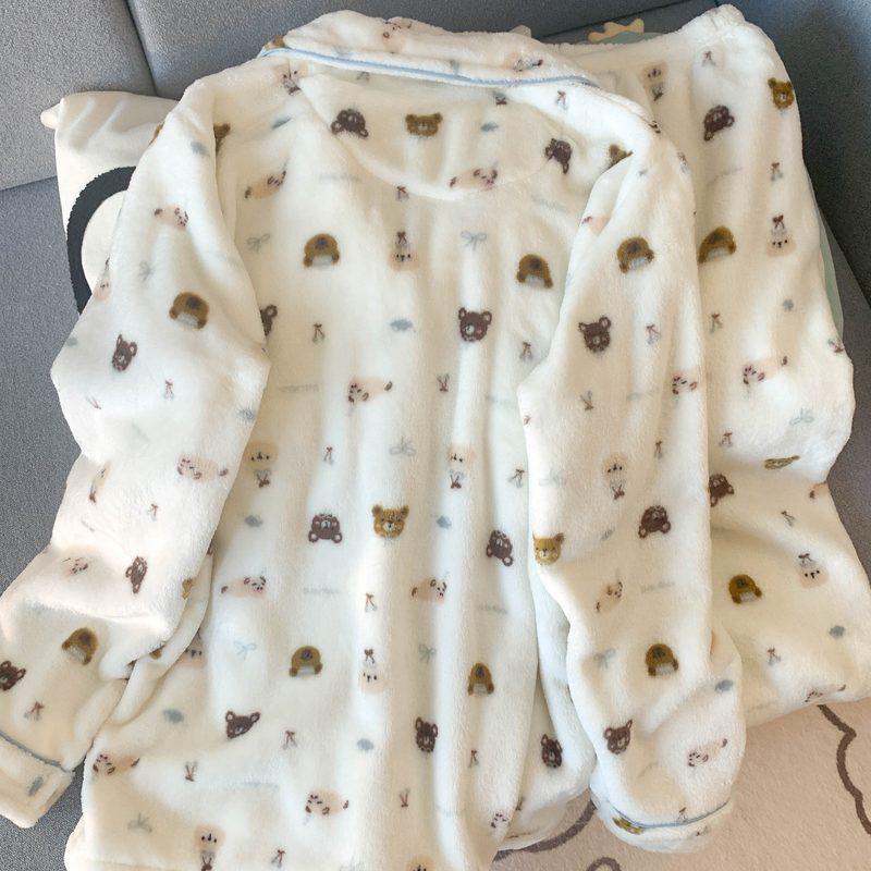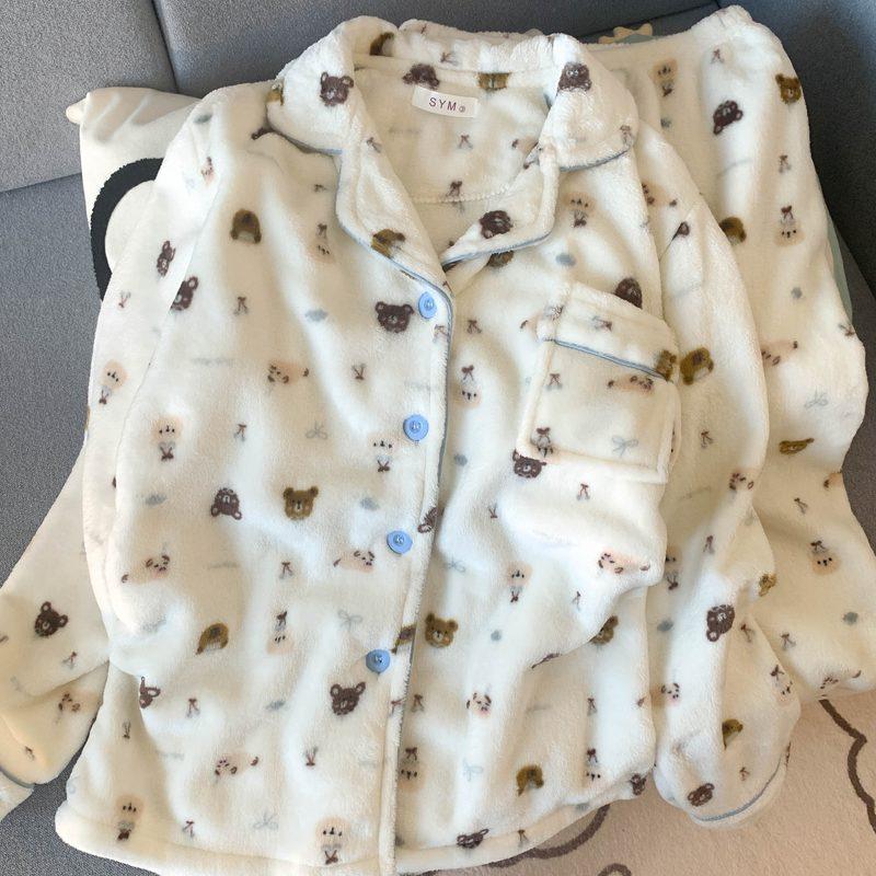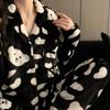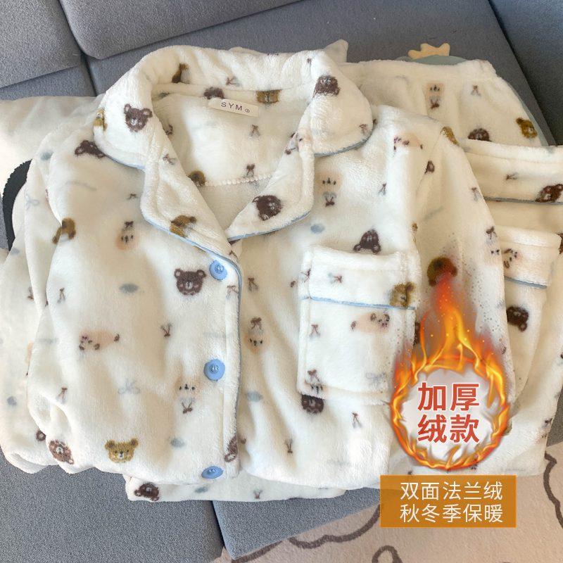 Pijama de oso de dibujos animados de talla grande para mujer, otoño e invierno, Milk Hoo, ropa de casa con forro polar grueso, conjunto de dos piezas para niñas