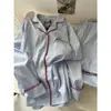 Pijama de Rayas Estilo Coreano para Mujer, Conjunto de Manga Larga para Primavera y Otoño, Ropa de Casa de Alta Gama, Estilo Moderno, Adecuado para Usar al Aire Libre, Venta al por Mayor Transfronteriza