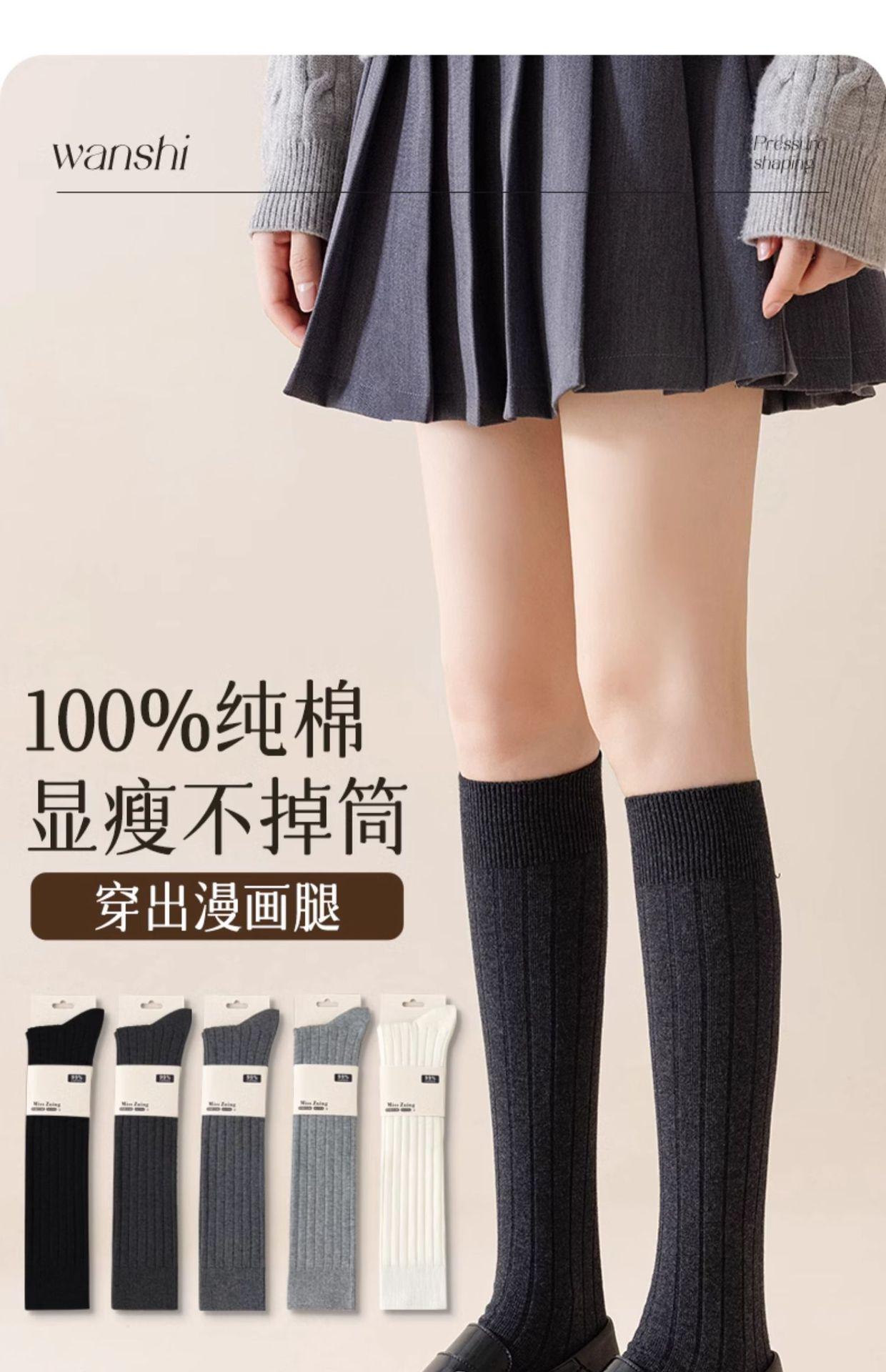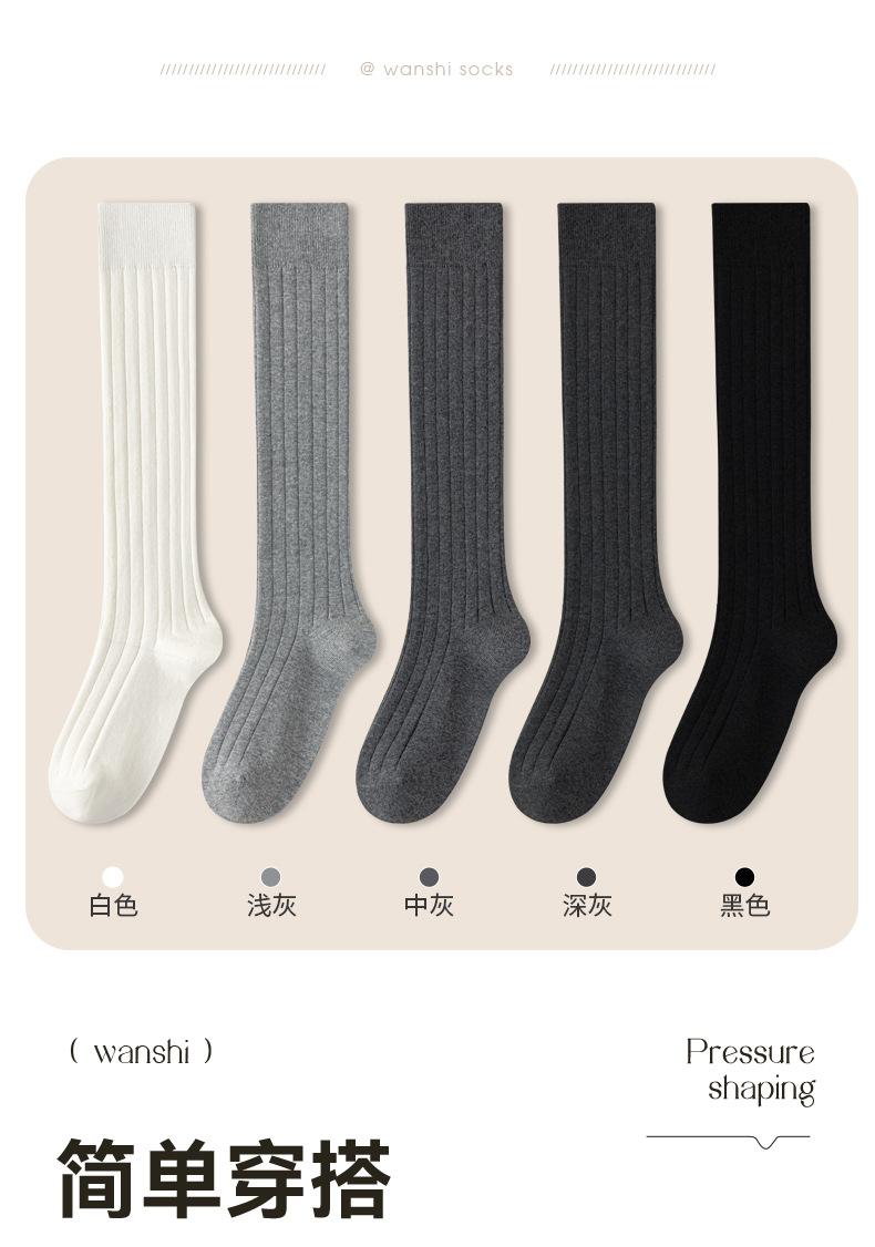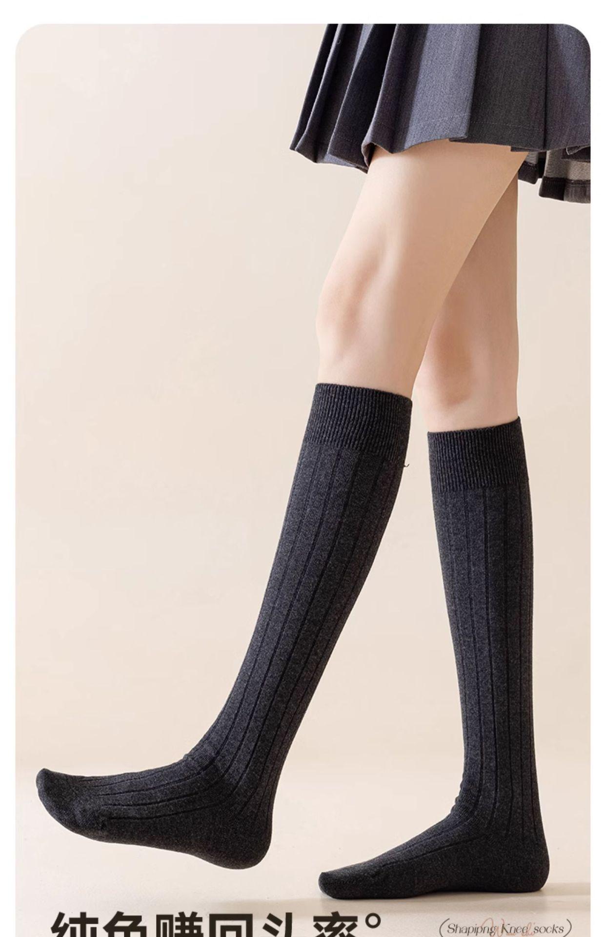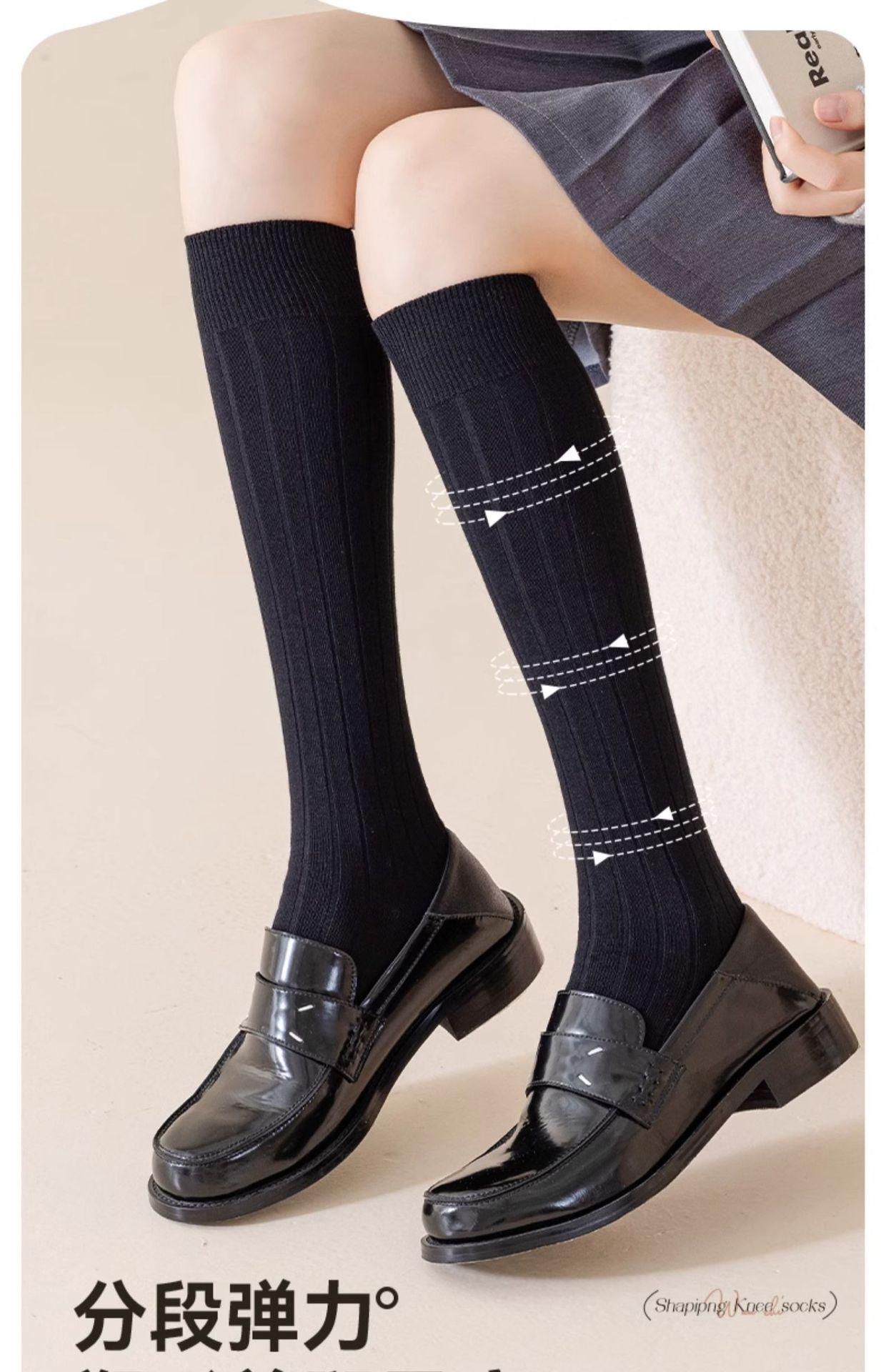 Calcetines Altos hasta la Rodilla Rayados Primavera y Otoño Color Sólido Estilo miu para Mujer Nuevos Negros Adelgazantes Japoneses JK de Pantorrilla Arrugados