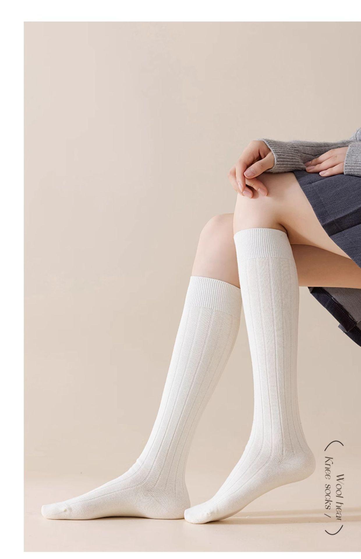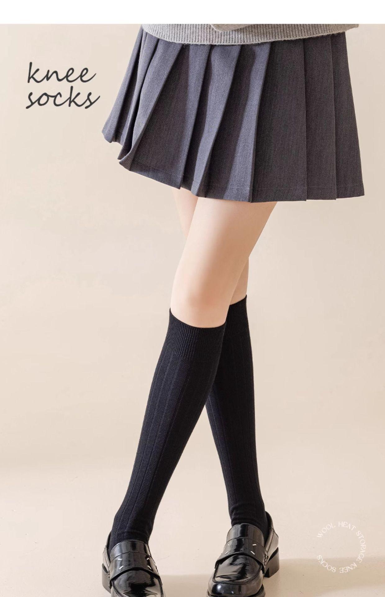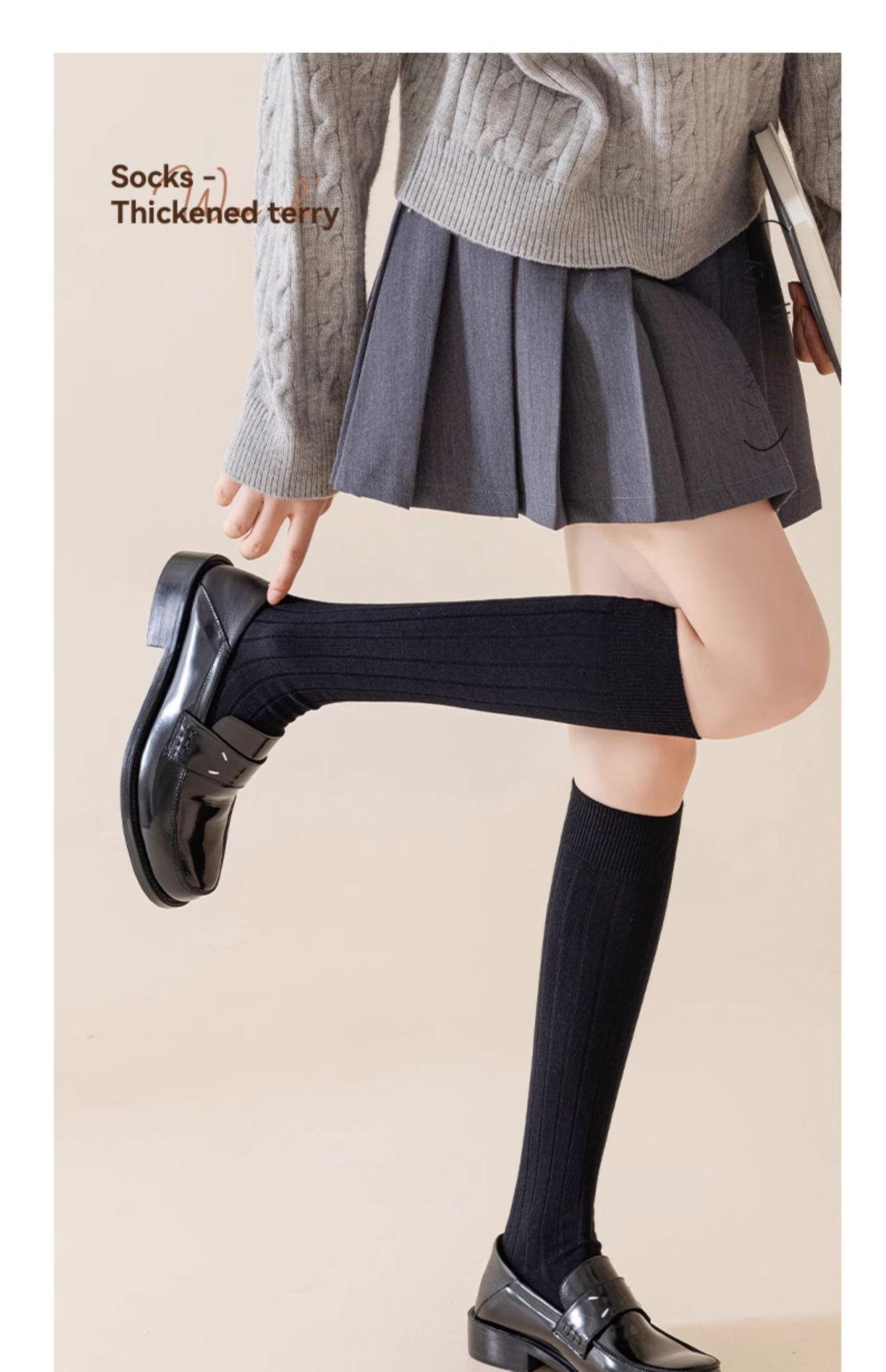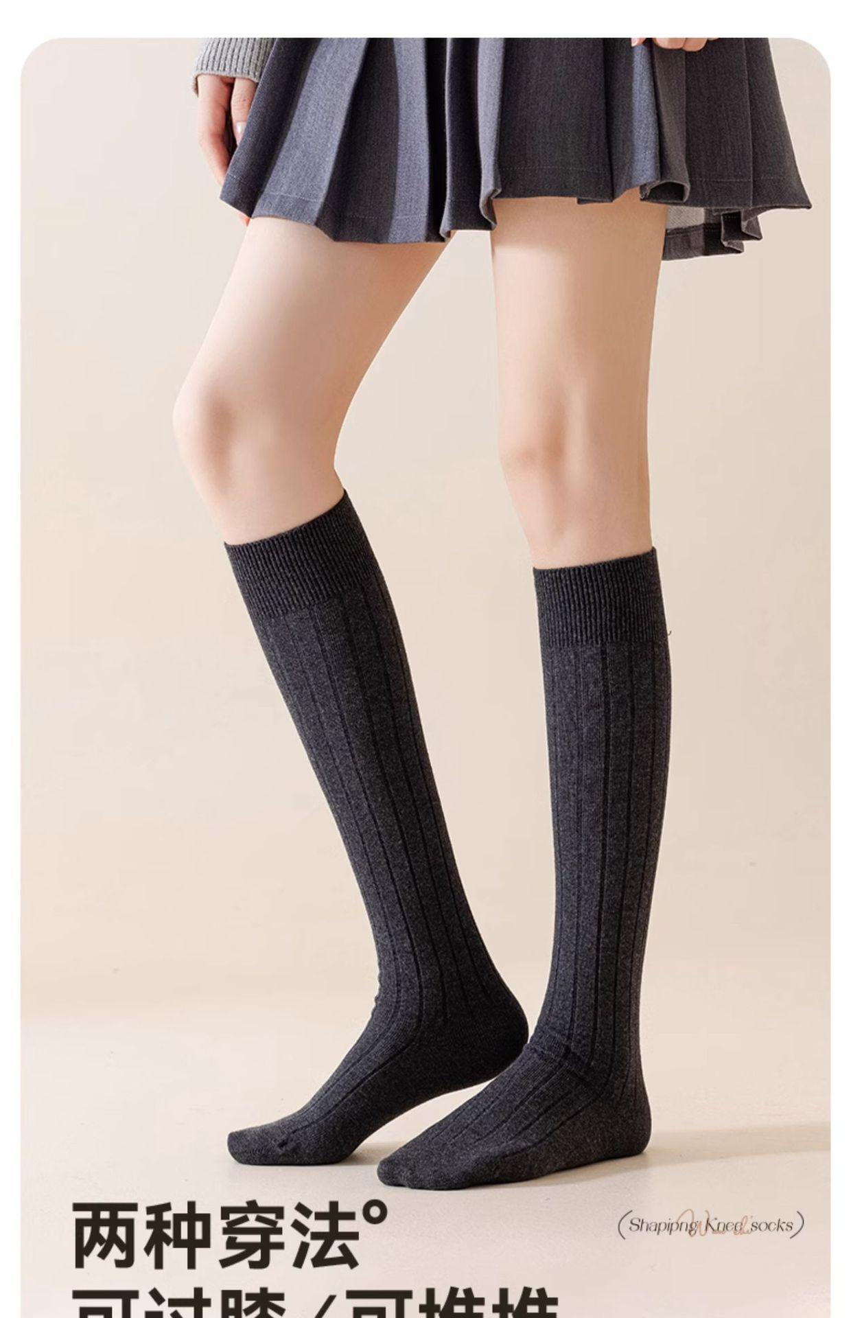 Calcetines Altos hasta la Rodilla Rayados Primavera y Otoño Color Sólido Estilo miu para Mujer Nuevos Negros Adelgazantes Japoneses JK de Pantorrilla Arrugados