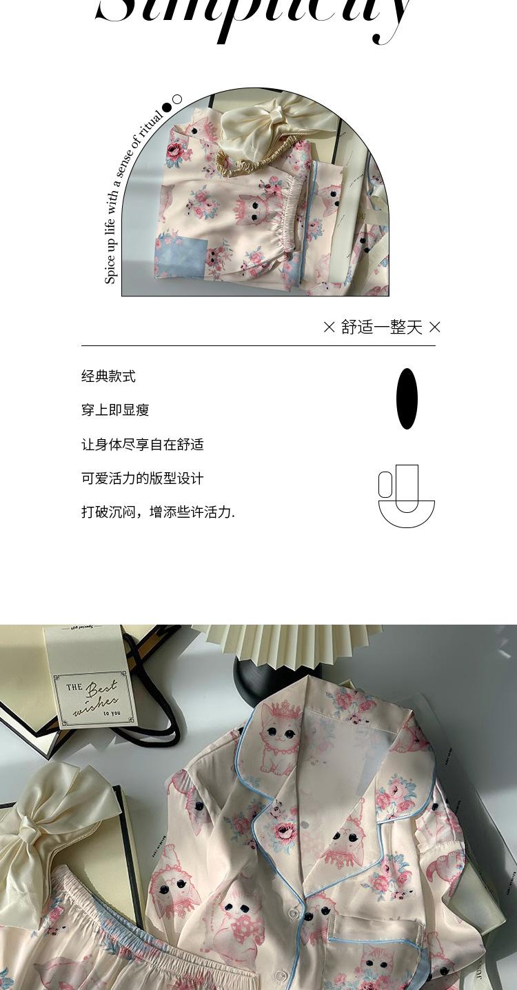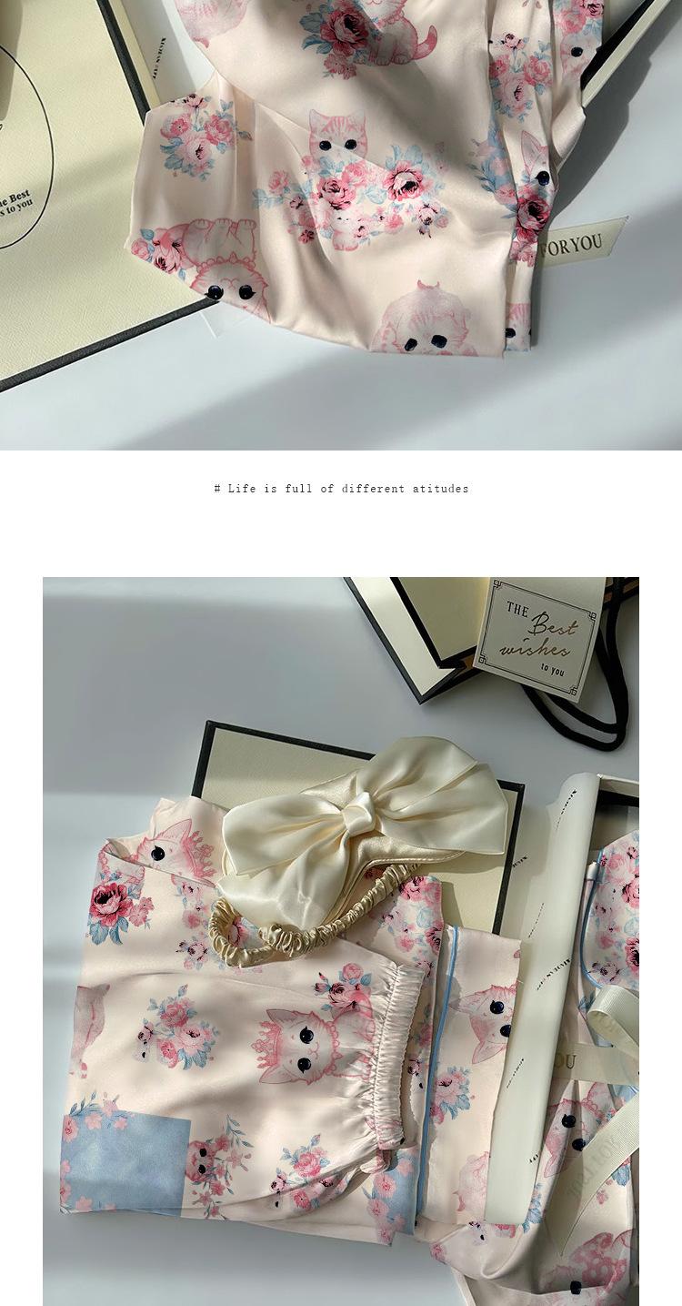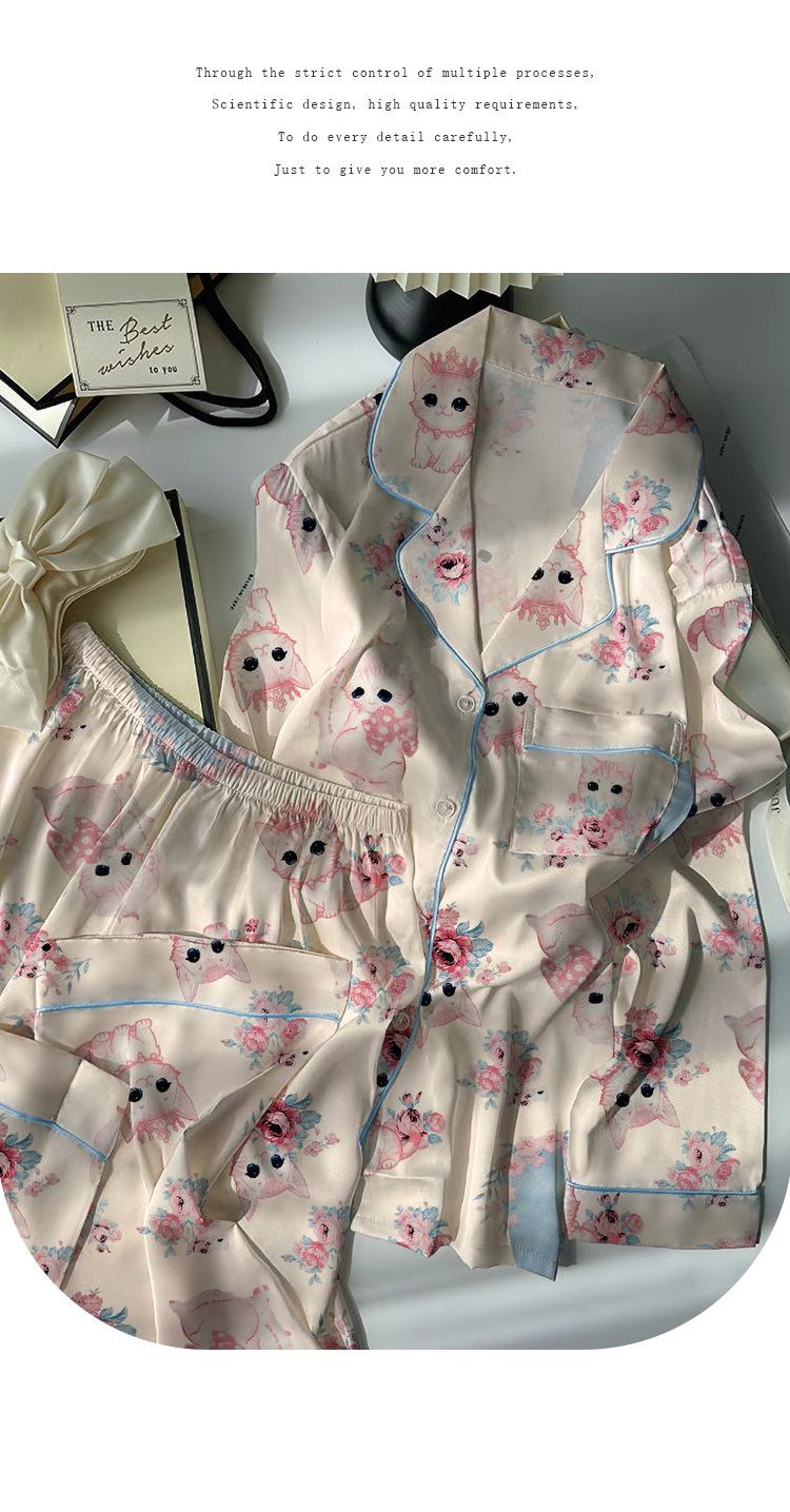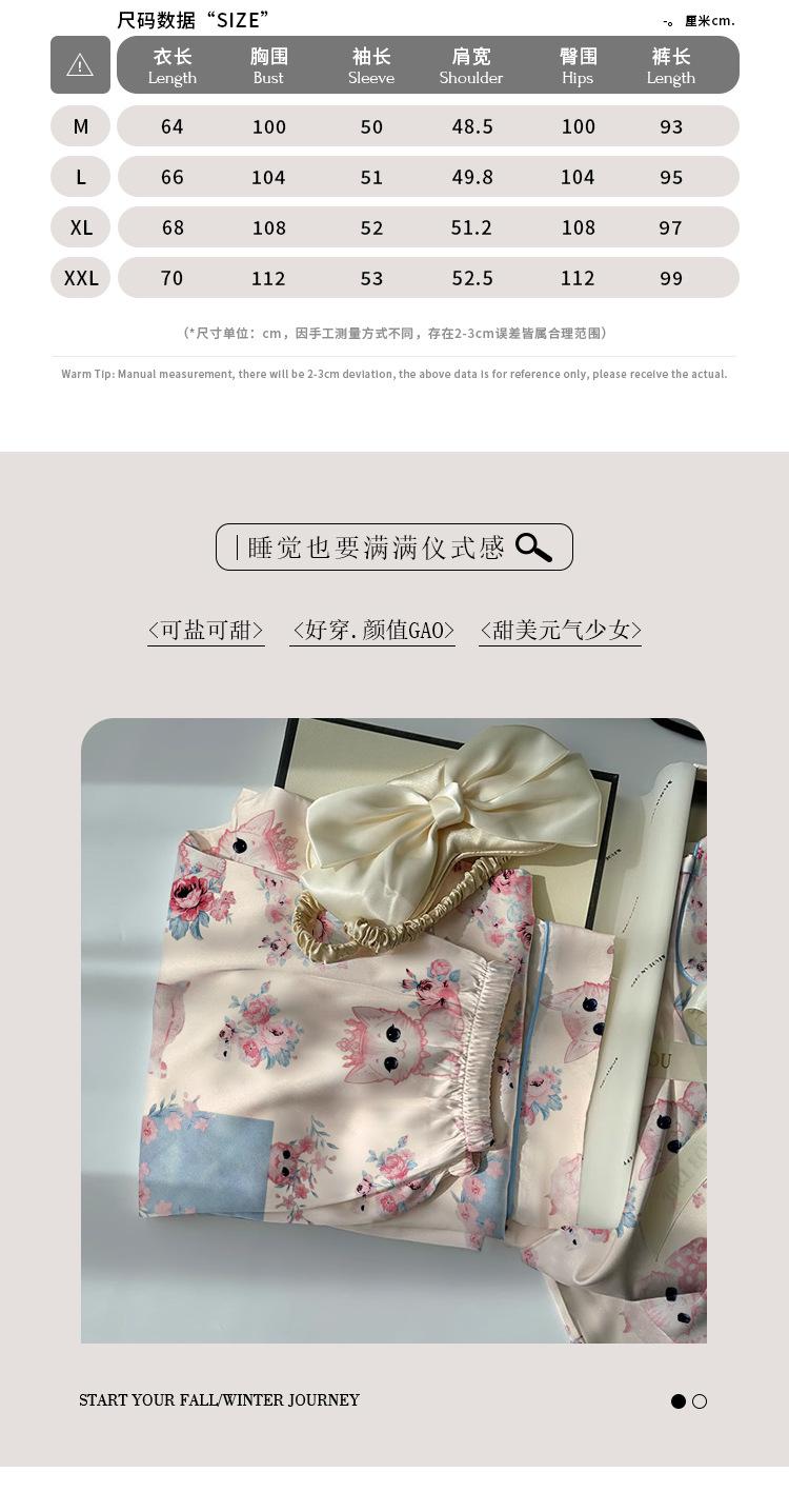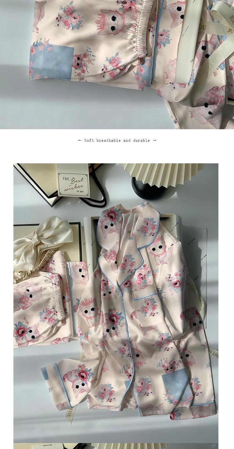 Pijama Dulce de Gato Estilo Coreano para Mujer Otoño Primavera Nuevo Temperamento Manga Larga Satén Seda de Hielo Dibujos Animados Conjunto para Estar en Casa Venta al por Mayor