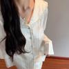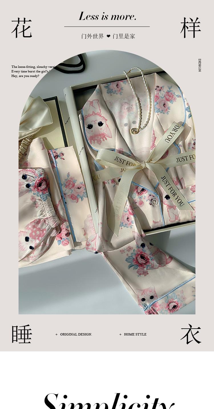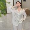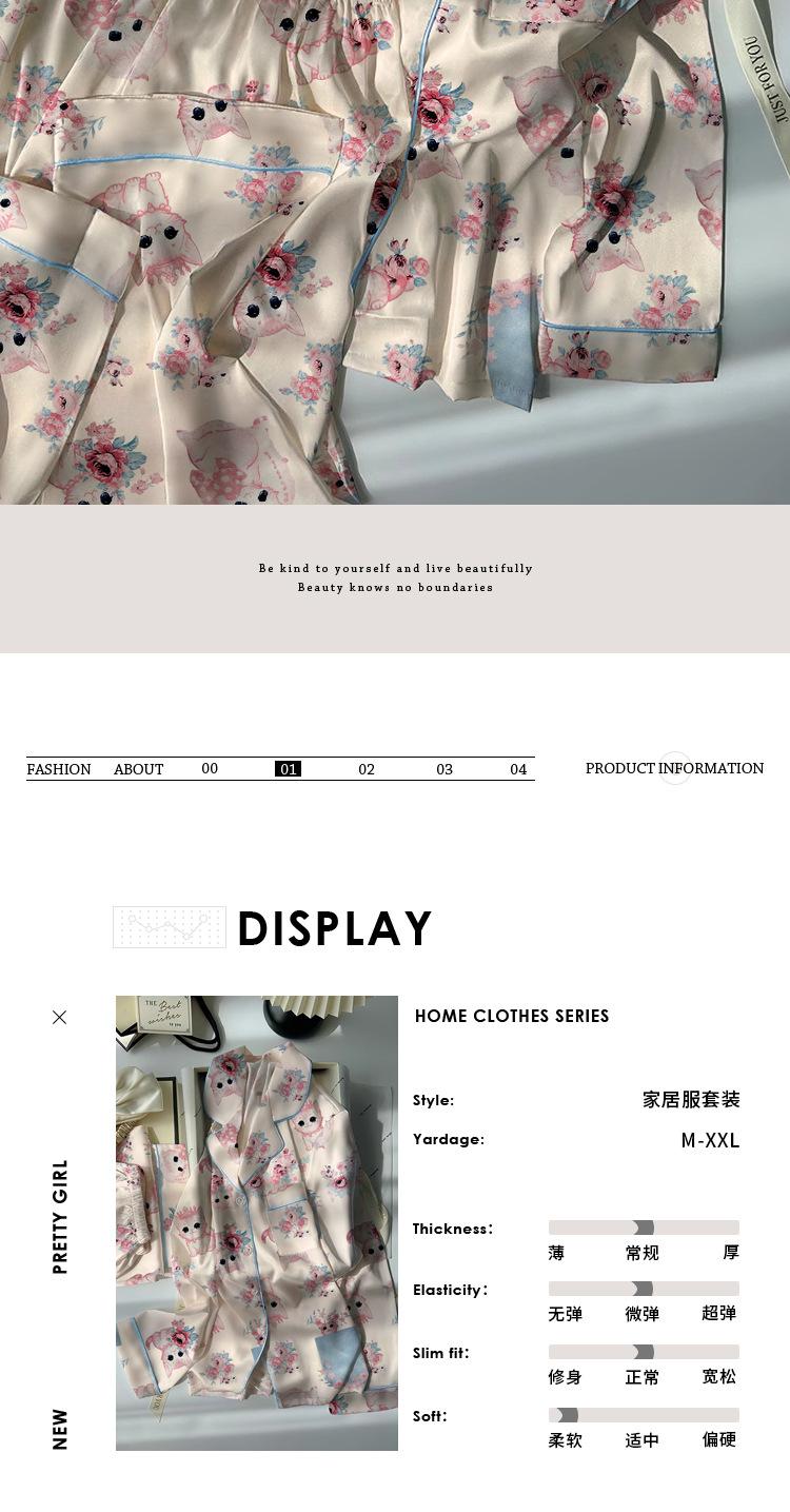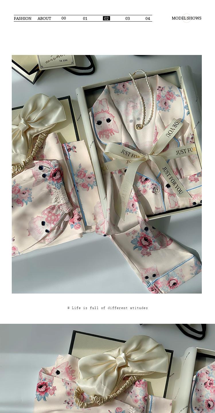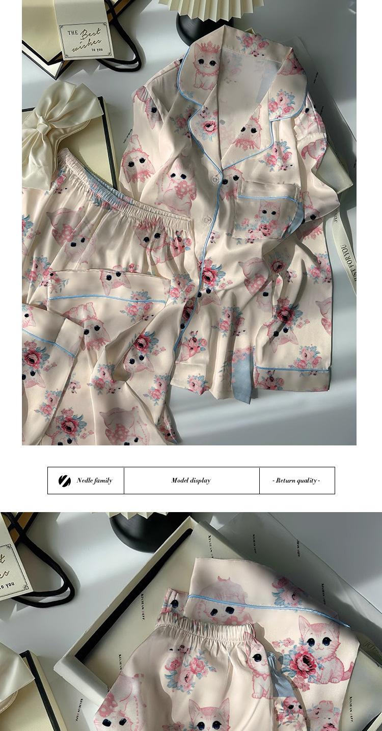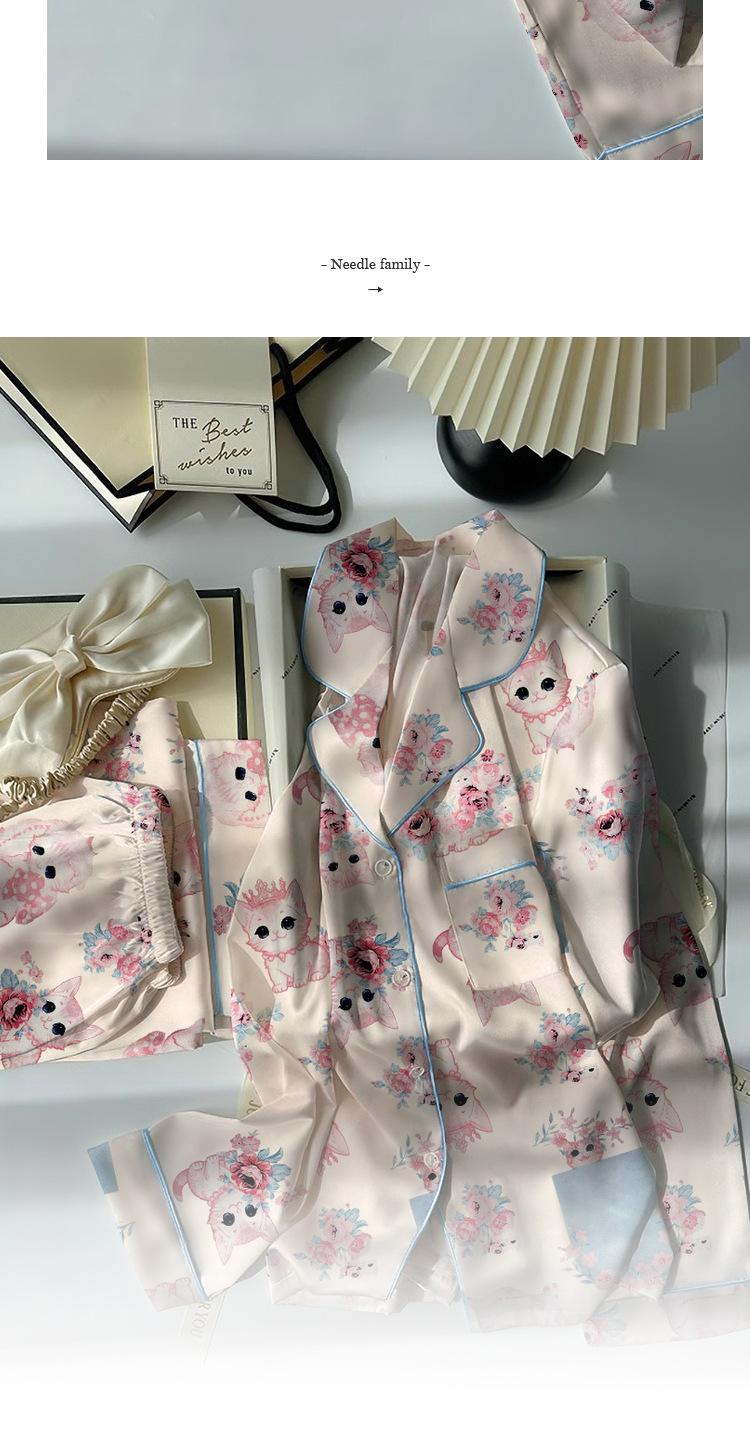 Pijama Dulce de Gato Estilo Coreano para Mujer Otoño Primavera Nuevo Temperamento Manga Larga Satén Seda de Hielo Dibujos Animados Conjunto para Estar en Casa Venta al por Mayor