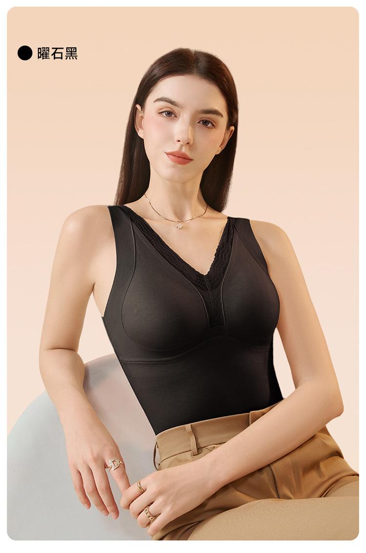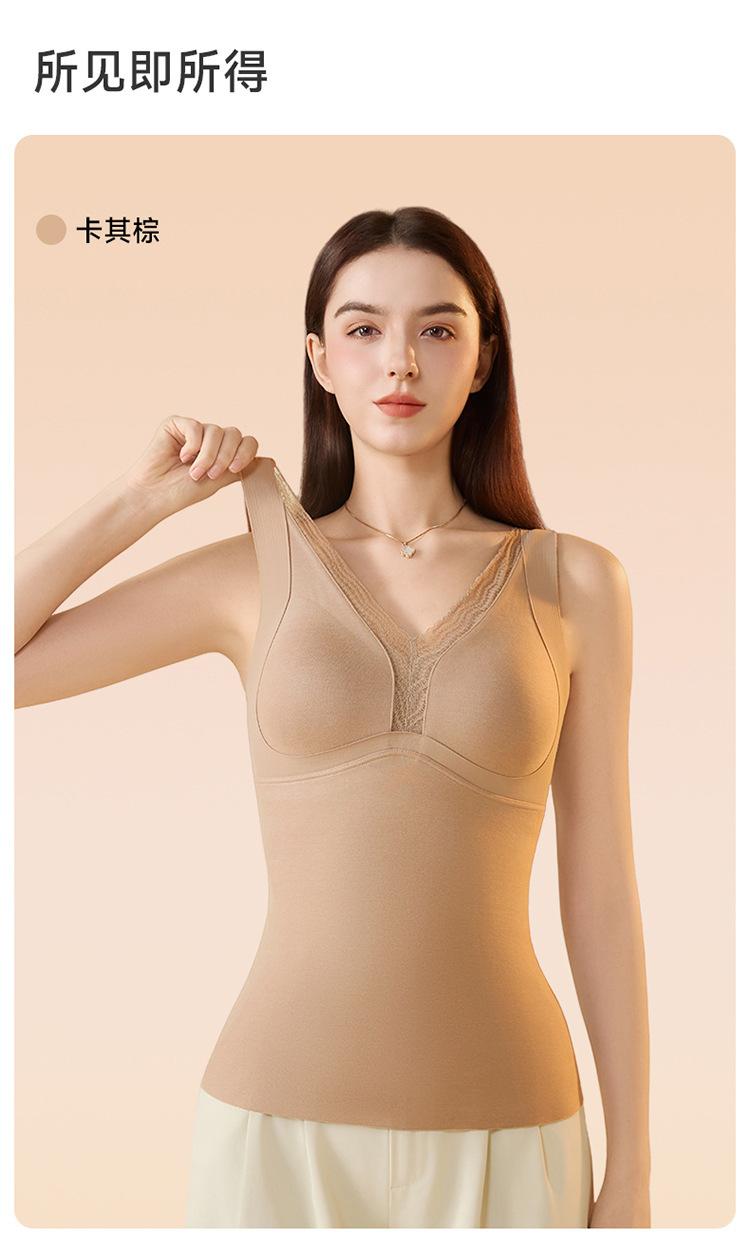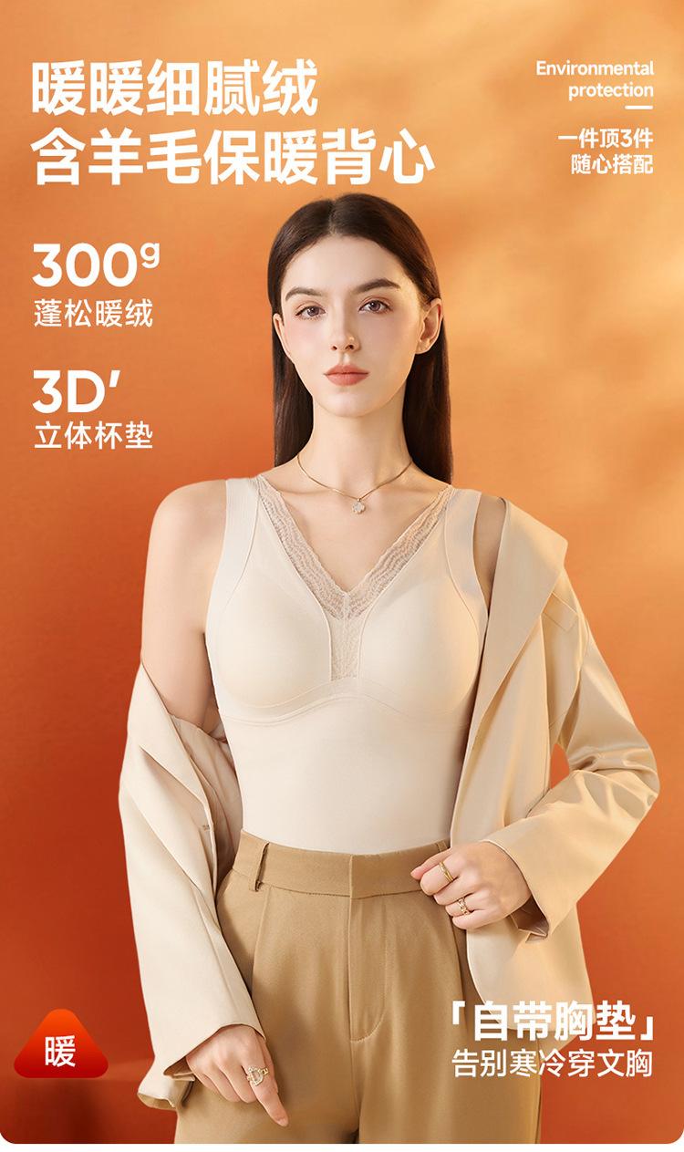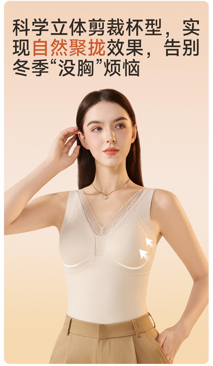 Cachemira de otoño e invierno con almohadilla en el pecho chaleco cálido ropa interior para mujer ropa exterior ajuste ceñido cómodo grueso color sólido versátil top básico