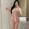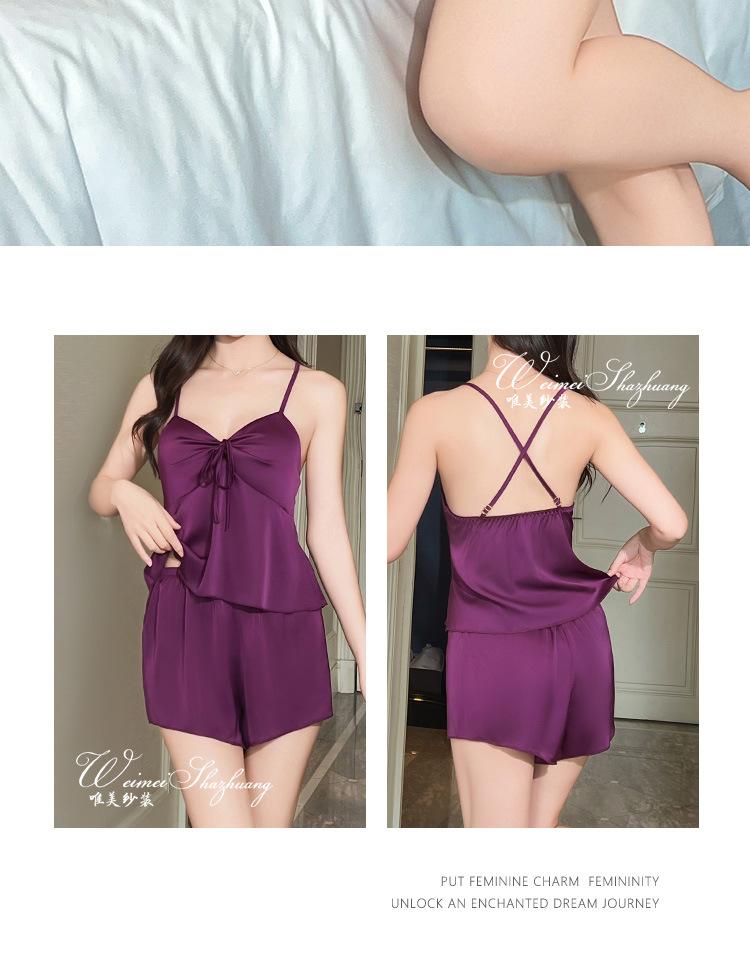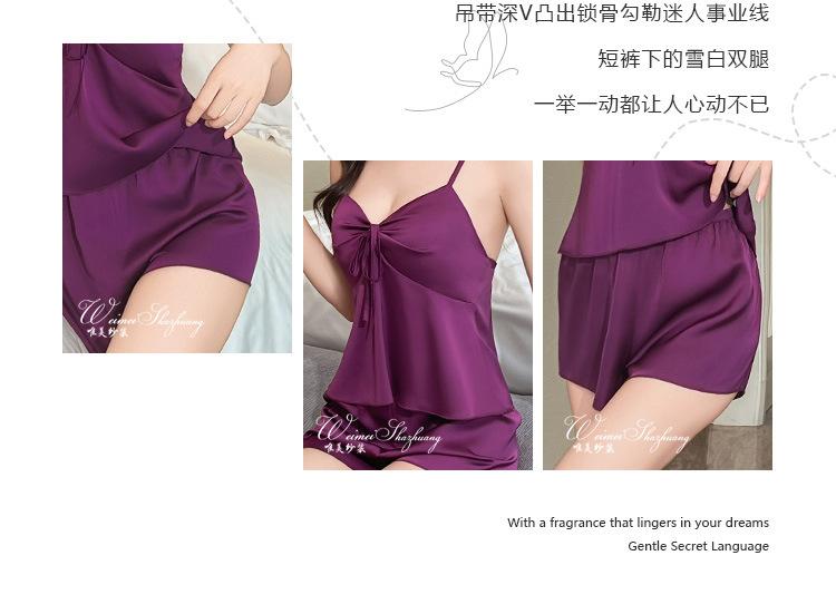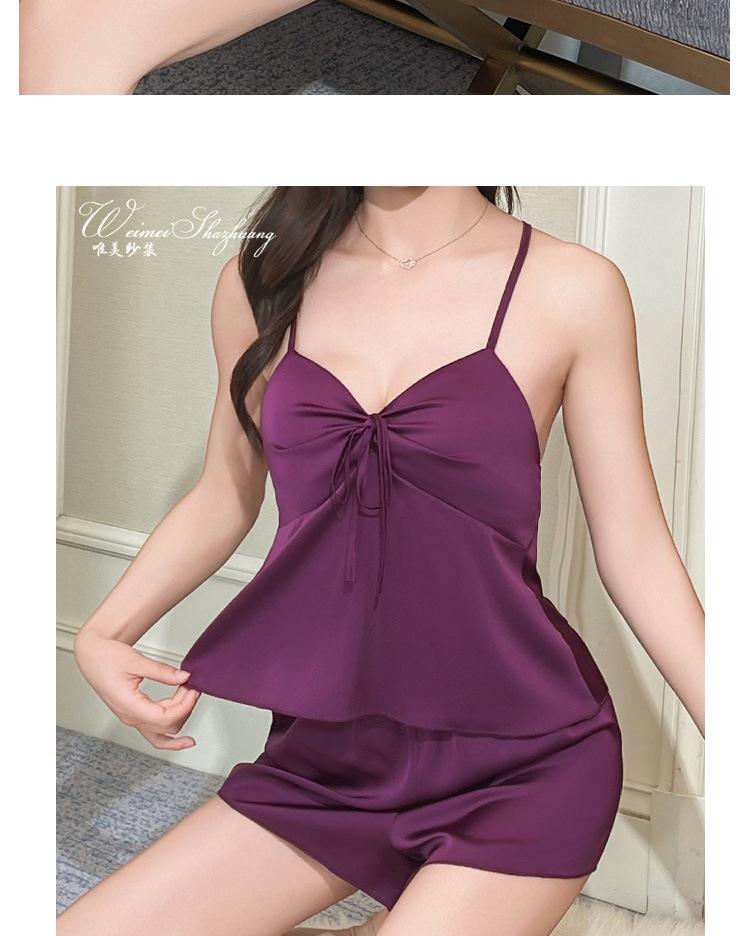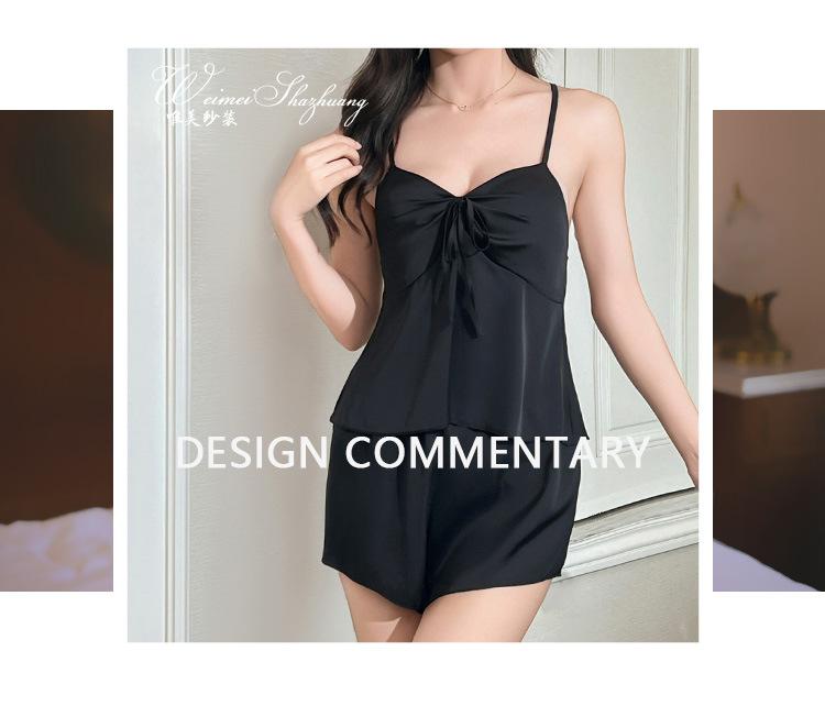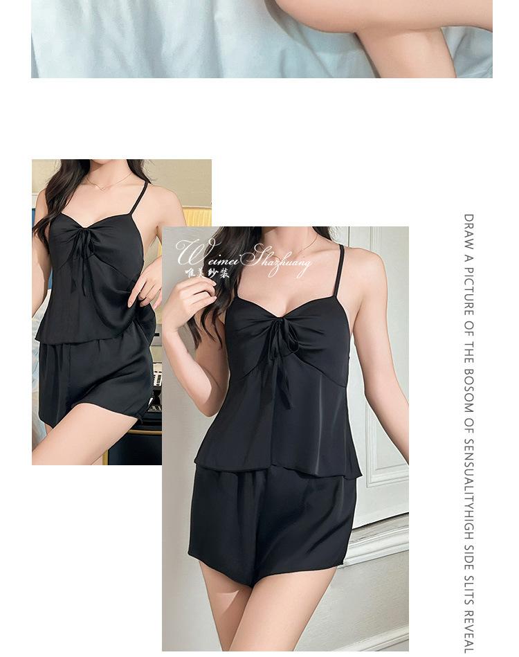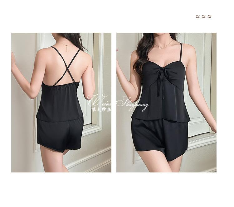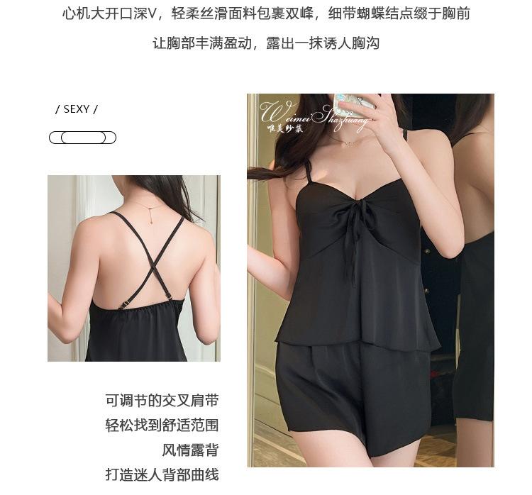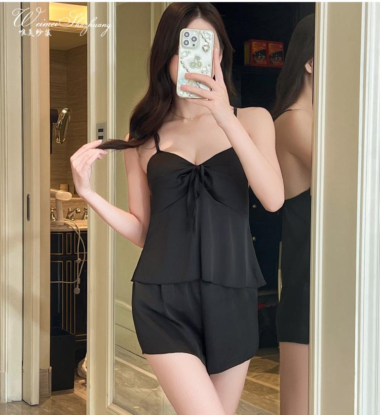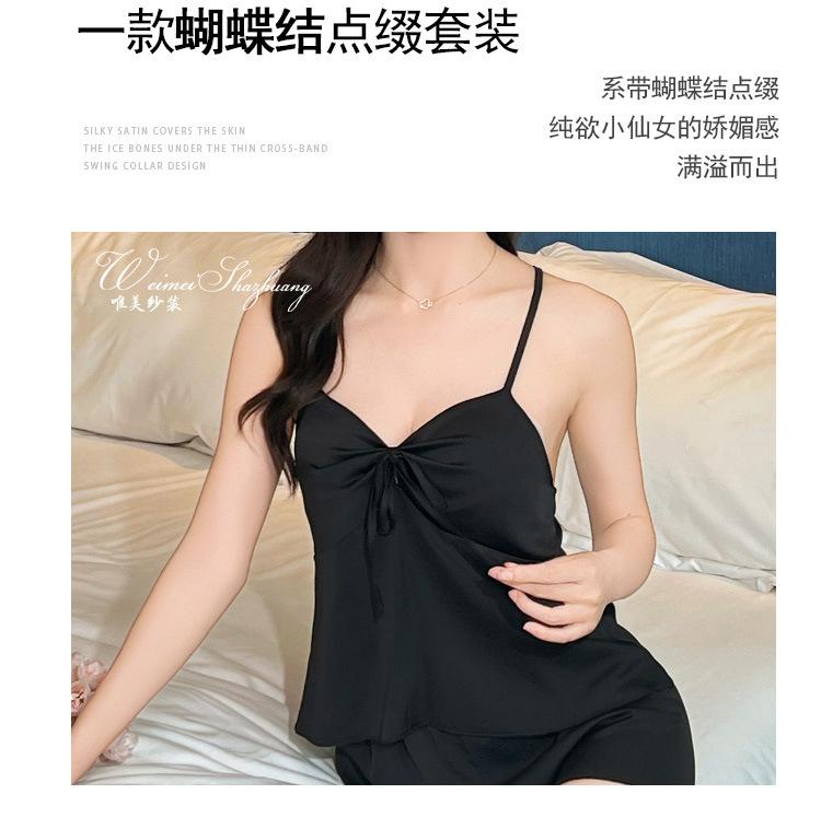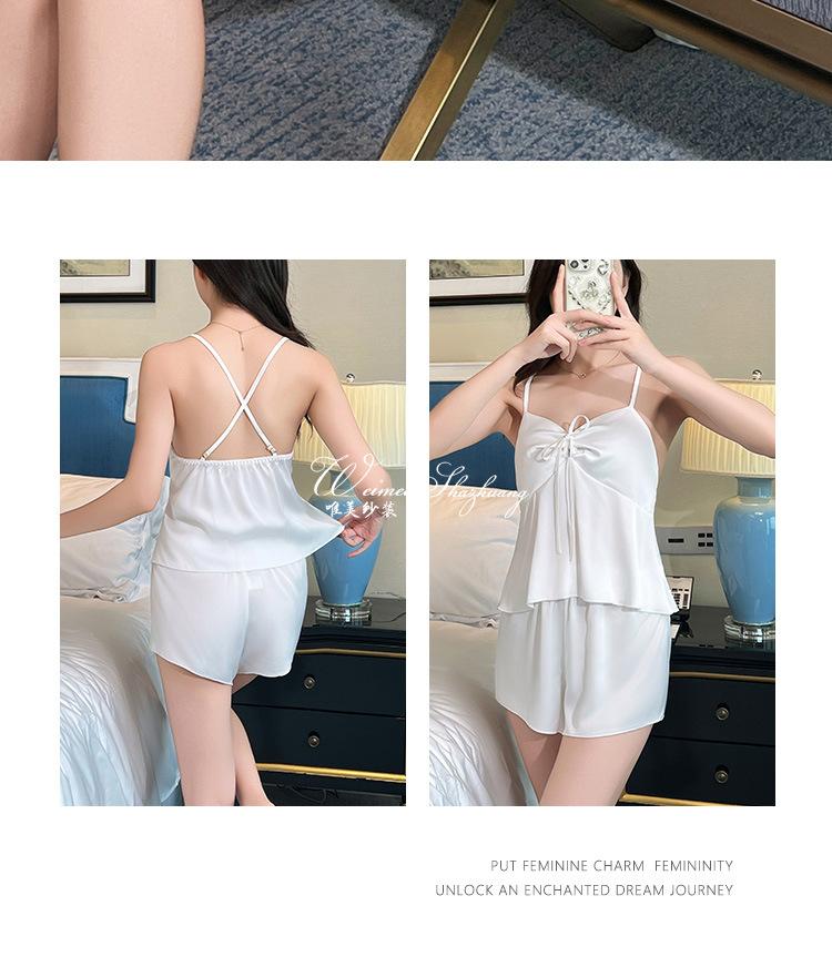 Estético Gasa Sexy Escote en V Profundo con Relleno Conjunto para Estar en Casa Verano Puro Deseo Camisola de Seda de Hielo Shorts Pijama Conjunto de Dos Piezas