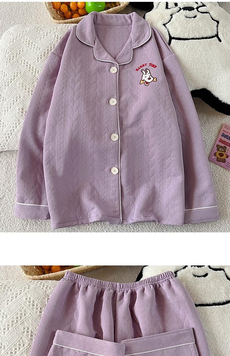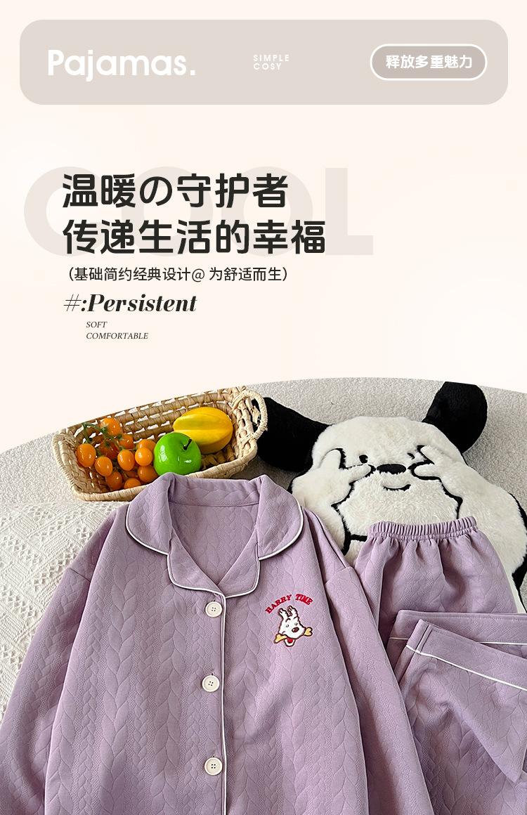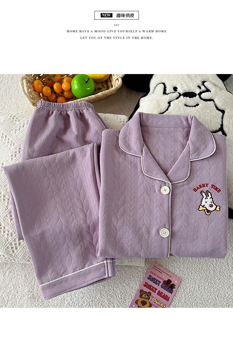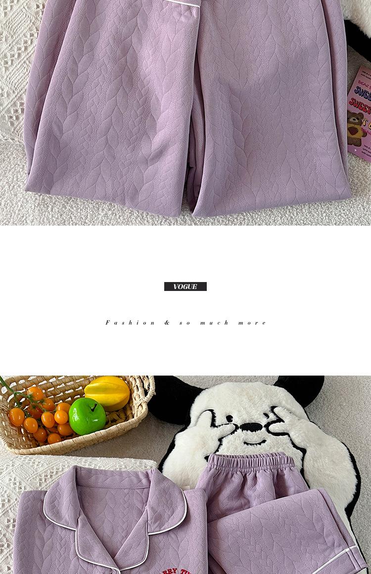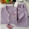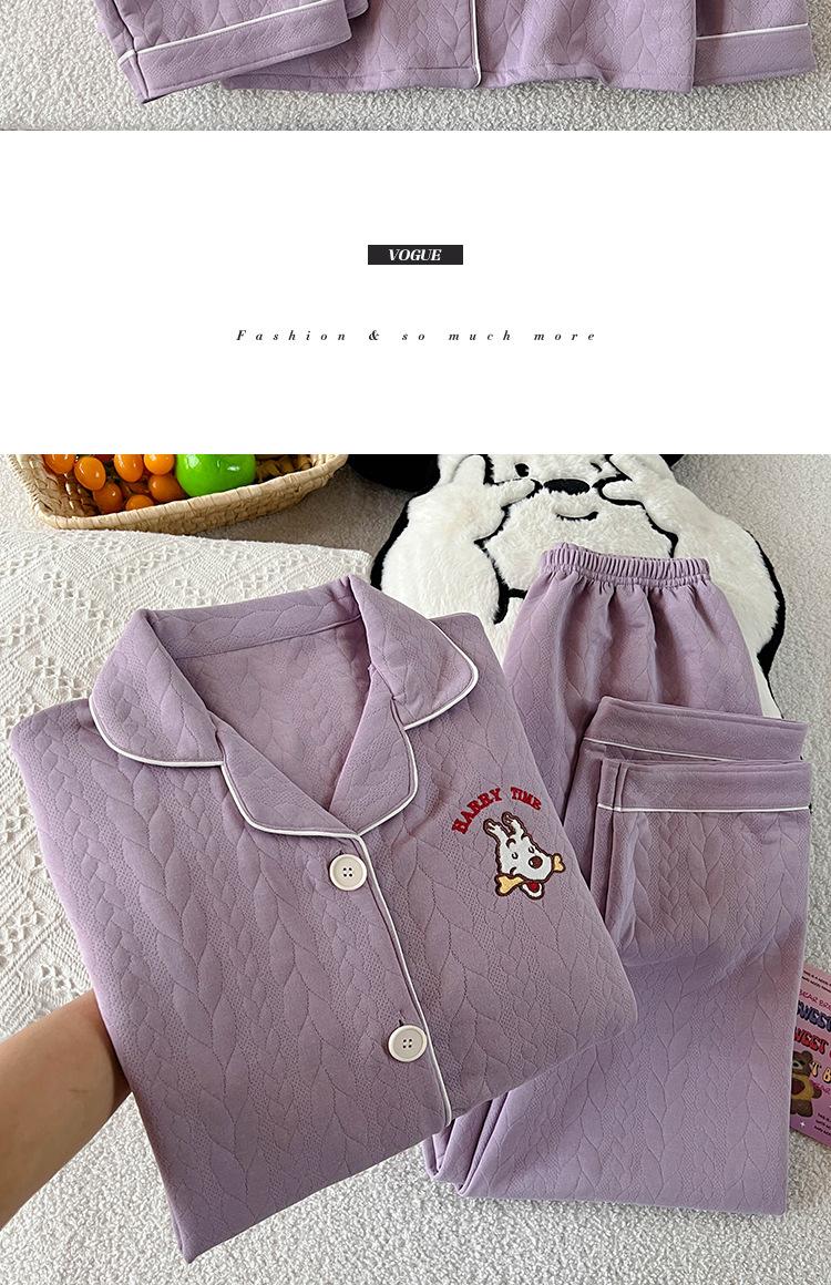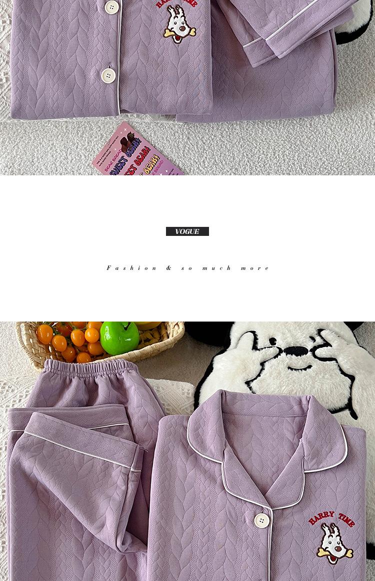 Color sólido bordado de alta gama cachorro estilo ins algodón aire casual dulce pijama conjunto ropa de casa para mujer al por mayor