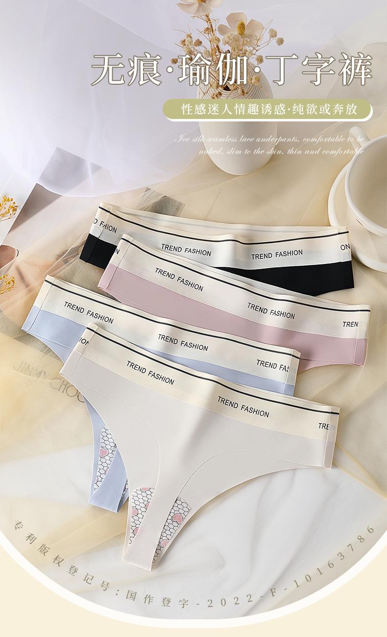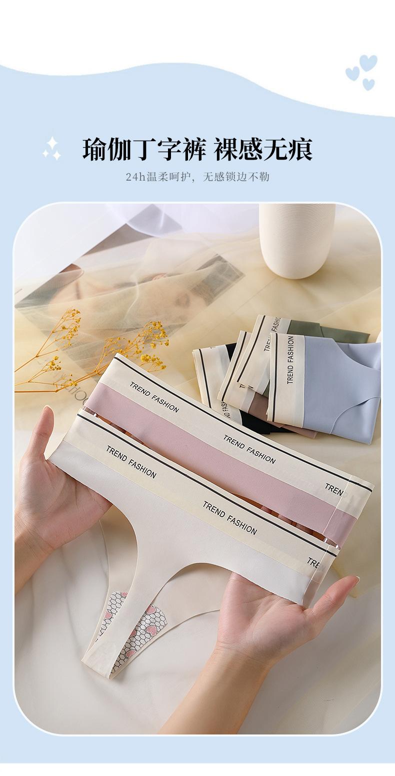 Tanga de Seda de Hielo para Mujer Deportiva Fitness Yoga Sin Costuras de Una Pieza Algodón Puro Entrepierna Antibacteriana Sexy Cintura Media Braguitas para Dama