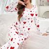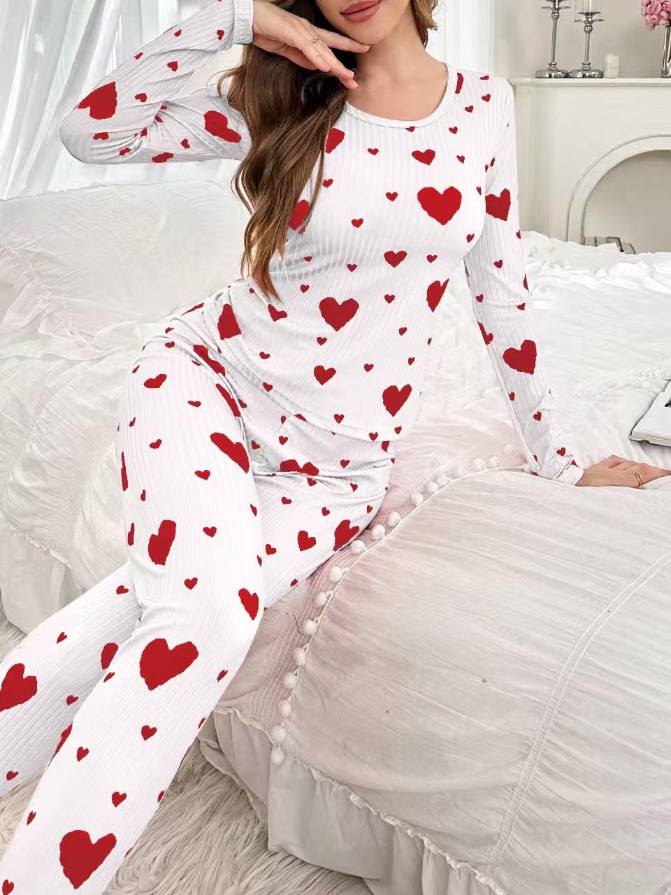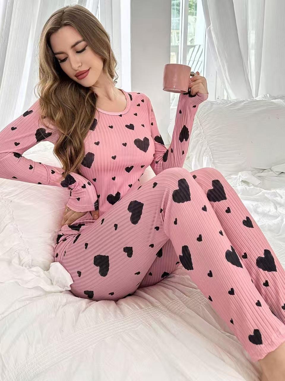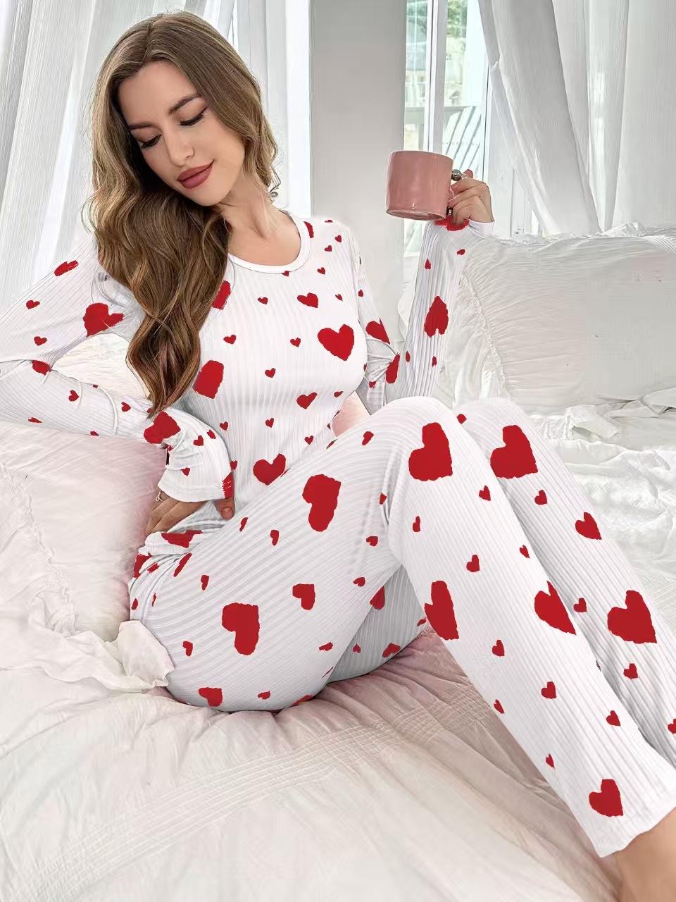 Nuevo Conjunto de Ropa para el Hogar de Comercio Exterior Transfronterizo Estampado de Corazones Manga Larga Pantalón Largo Conjunto Europeo y Americano Más Vendido Pijamas de Dama