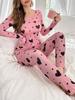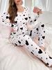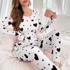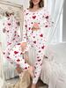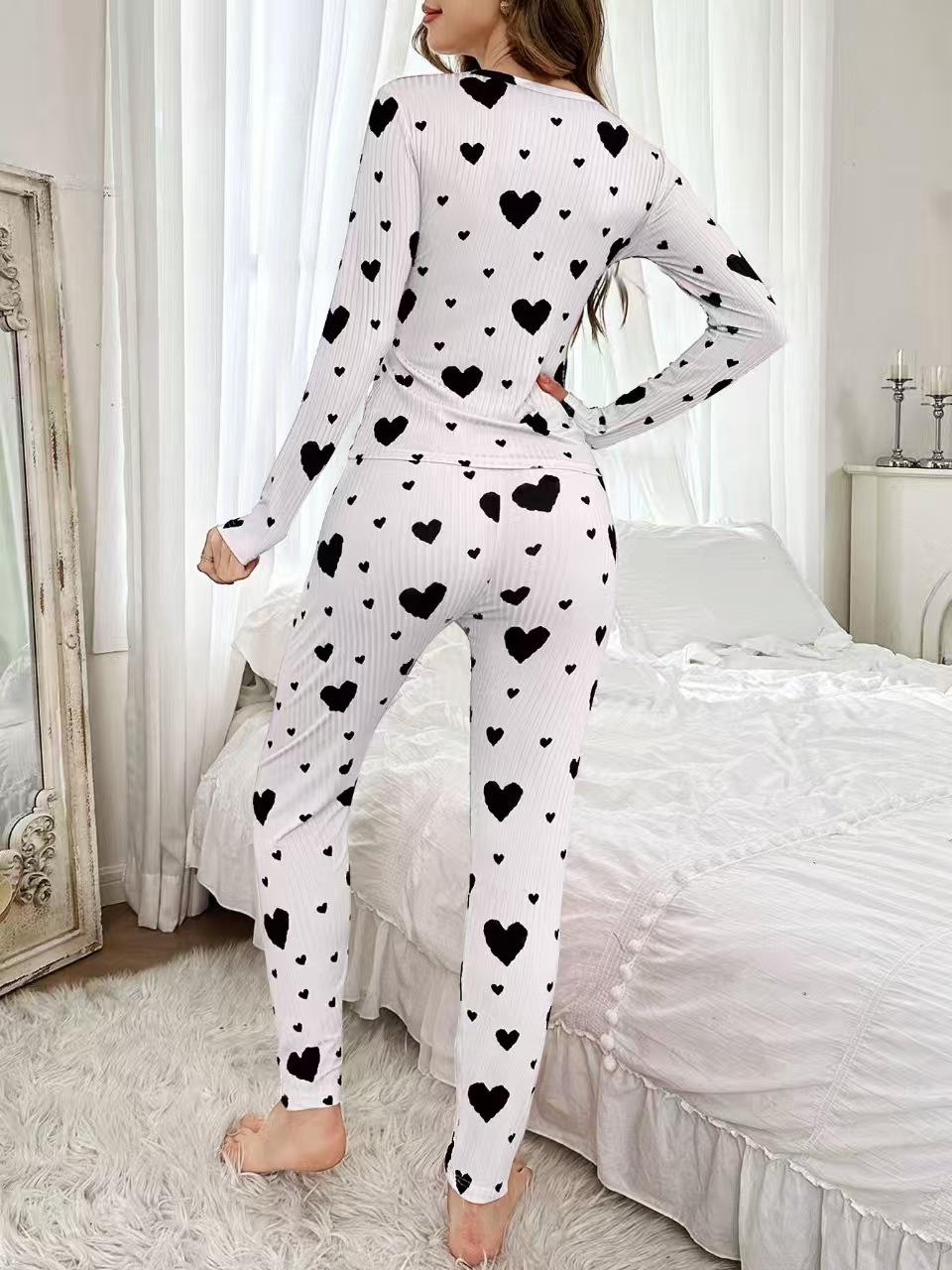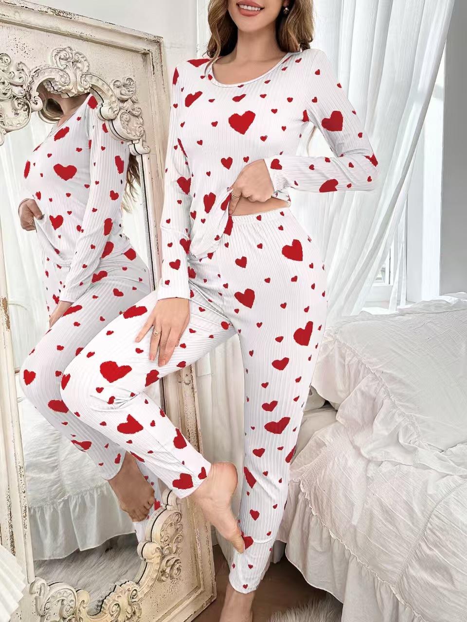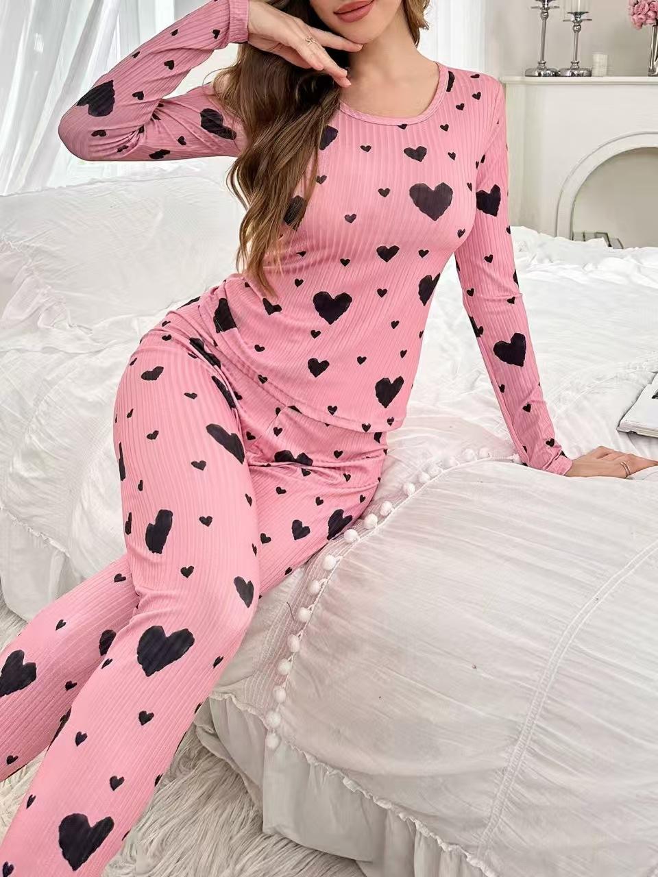 Nuevo Conjunto de Ropa para el Hogar de Comercio Exterior Transfronterizo Estampado de Corazones Manga Larga Pantalón Largo Conjunto Europeo y Americano Más Vendido Pijamas de Dama