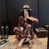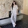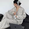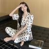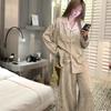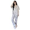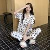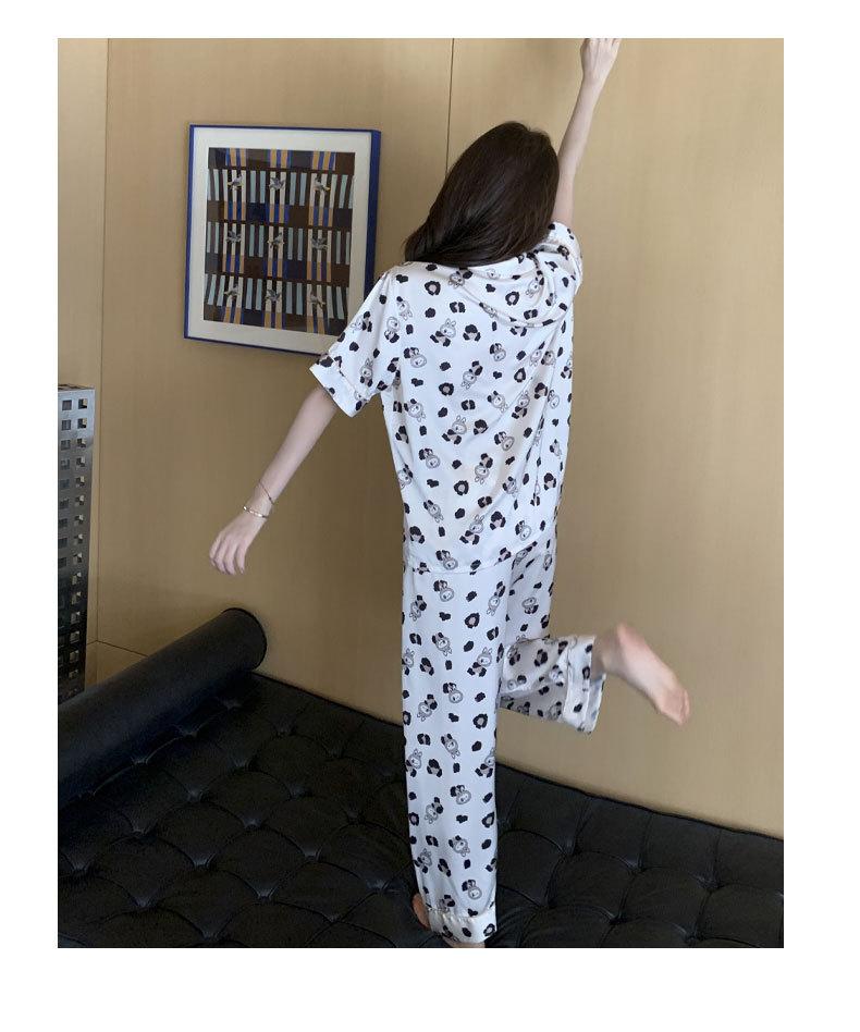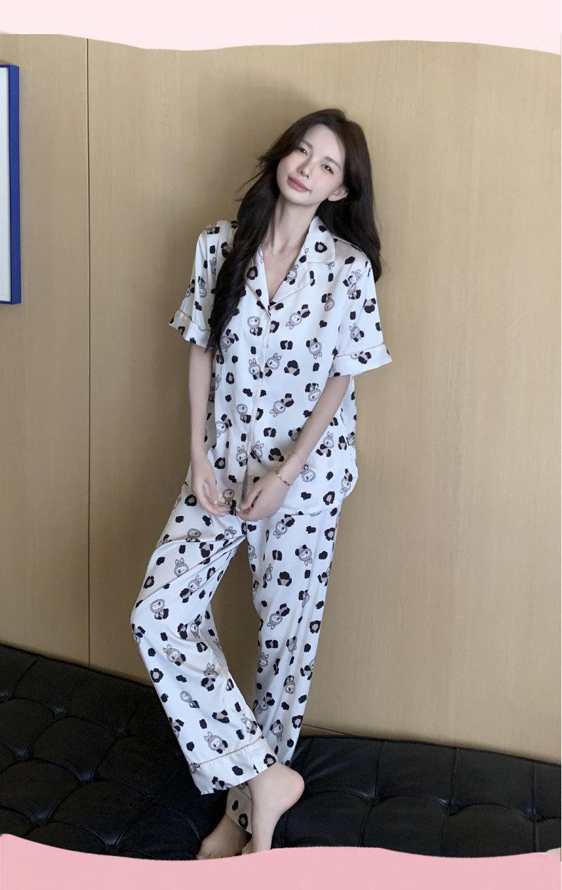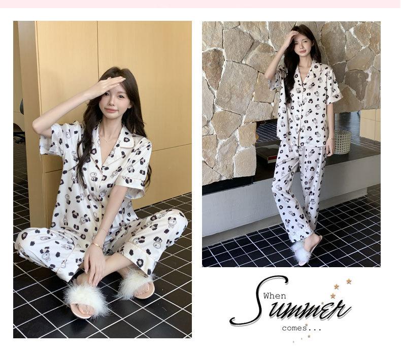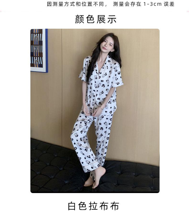 2025 Pijama Nuevo de Seda de Hielo para Mujer Delgado Estampado de Leopardo Tejido Conjunto de Tres Piezas Manga Corta Pantalón Largo Ropa de Casa Se Puede Usar Afuera