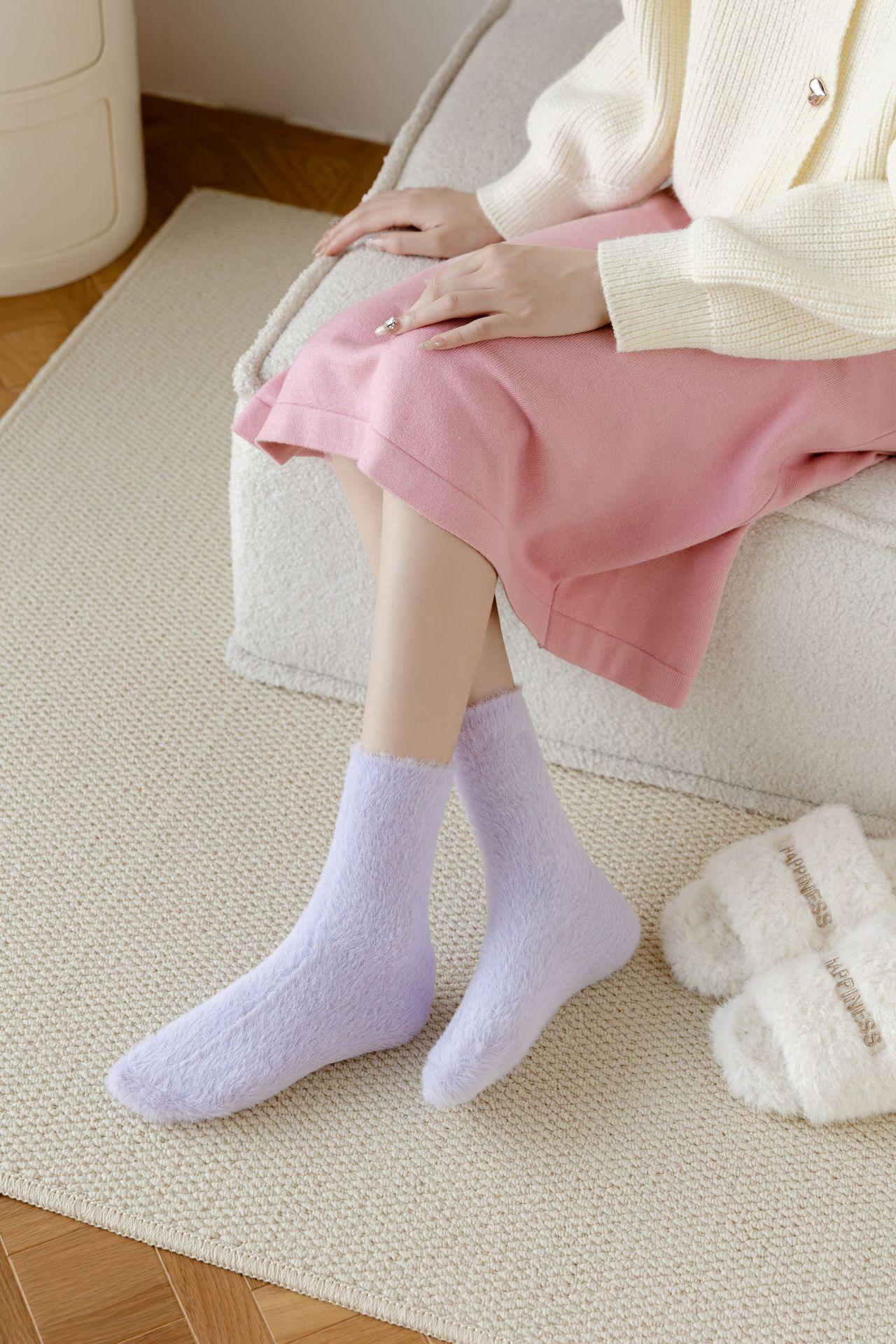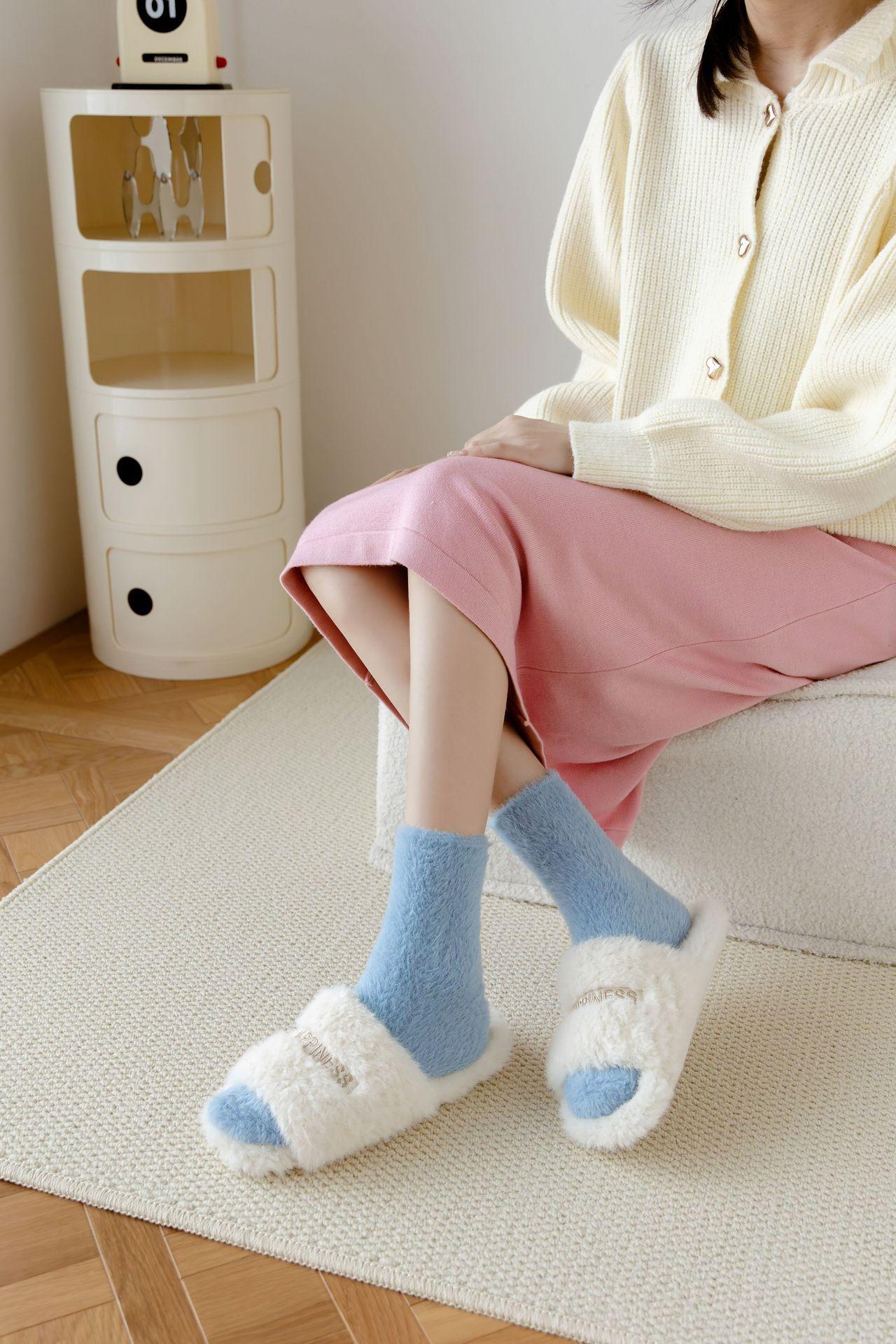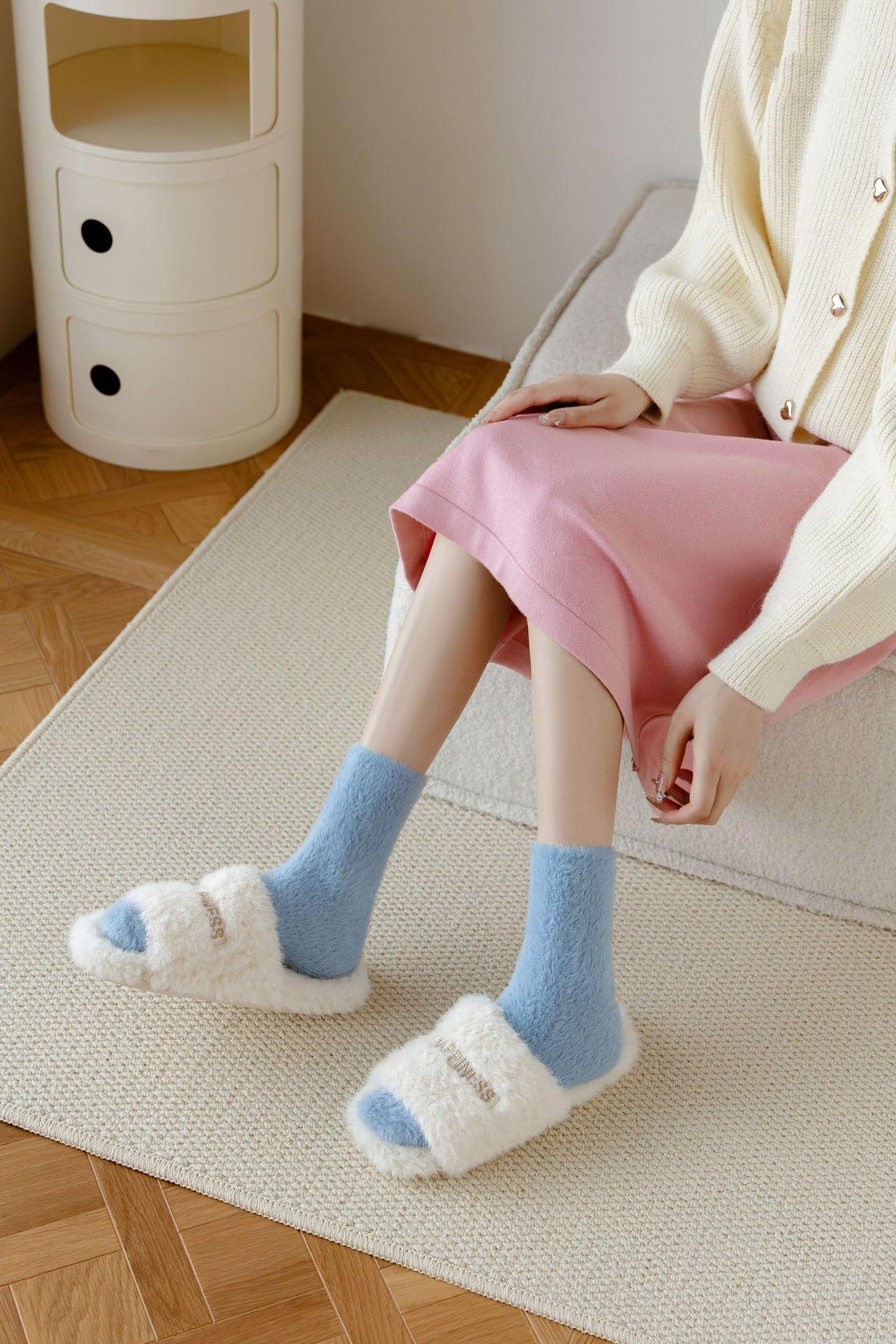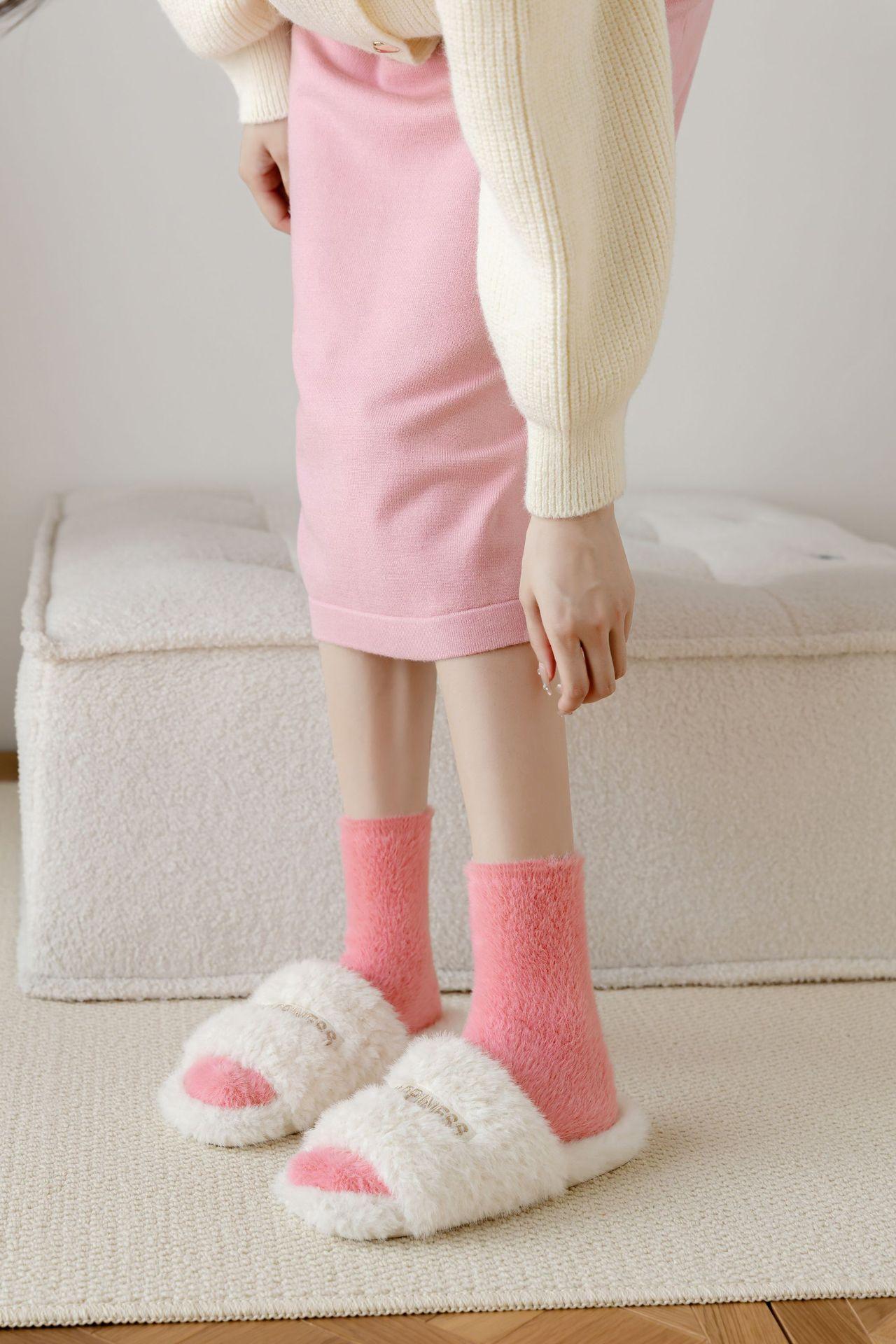 Calcetines para dormir de otoño e invierno para mujer más terciopelo engrosado de medio lado de terciopelo cálidos calcetines de media caña cómodos transpirables calcetines de vellón coral al por mayor