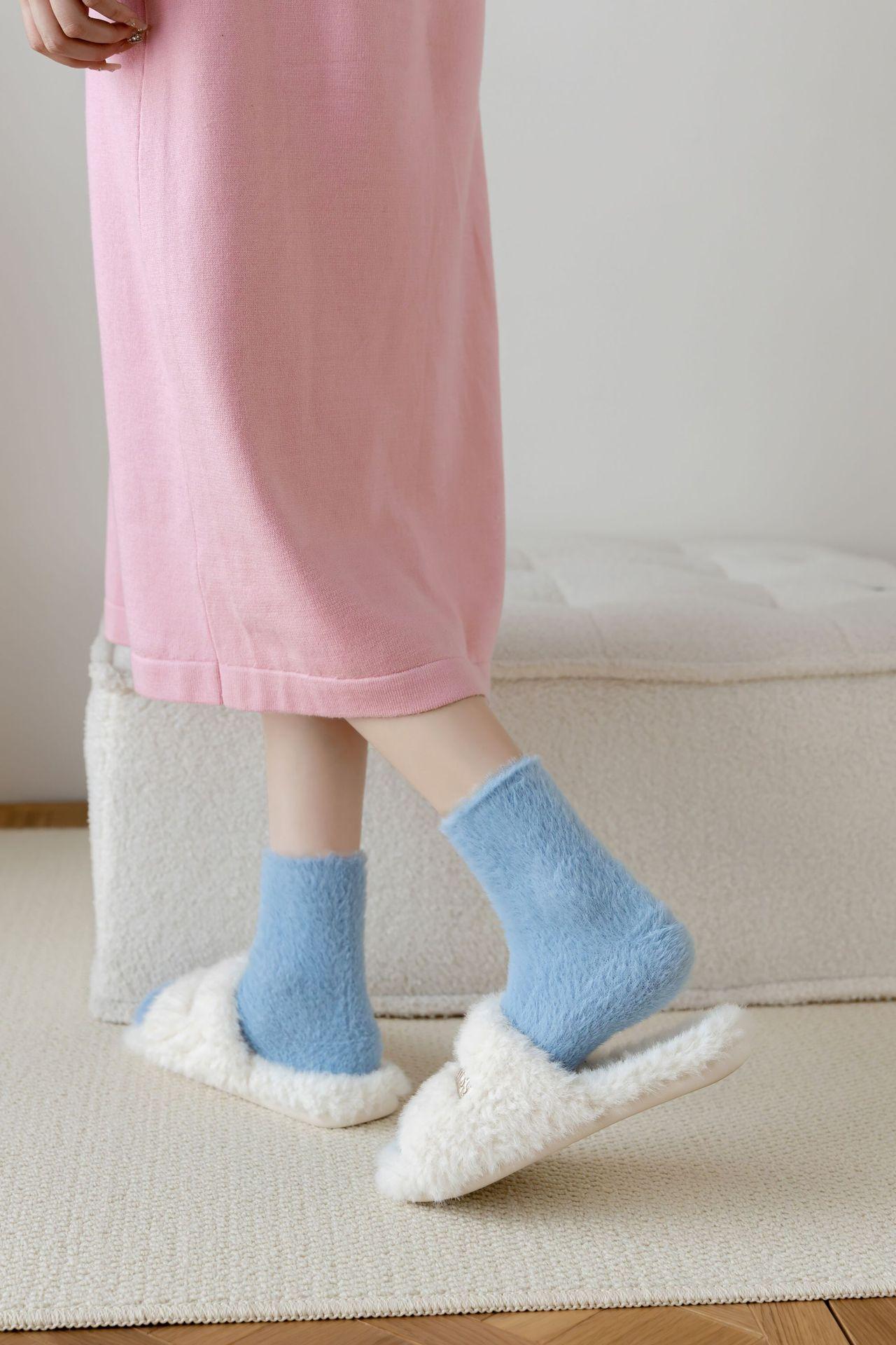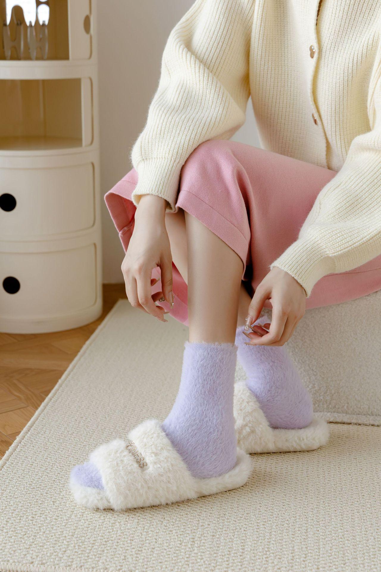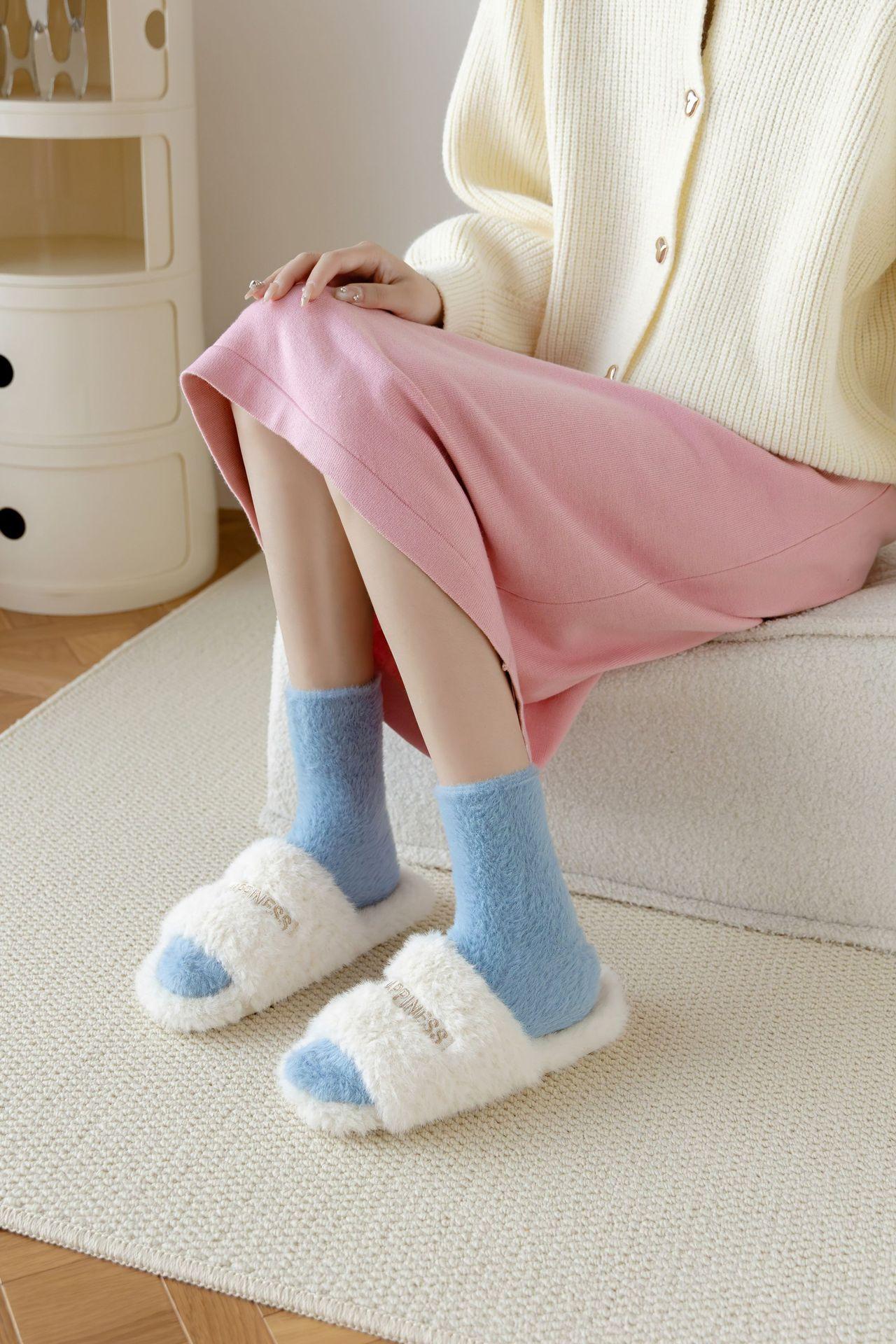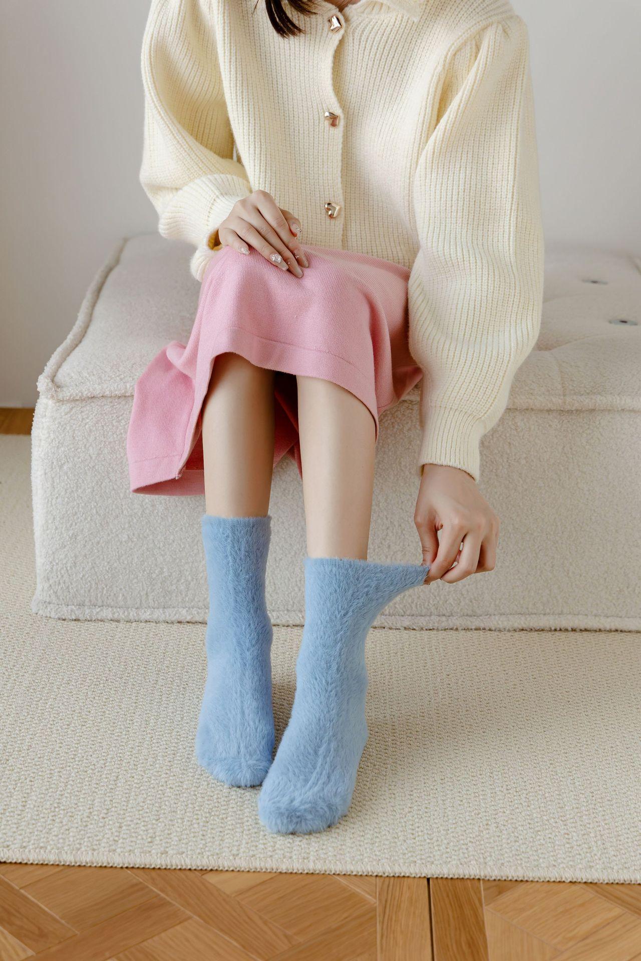 Calcetines para dormir de otoño e invierno para mujer más terciopelo engrosado de medio lado de terciopelo cálidos calcetines de media caña cómodos transpirables calcetines de vellón coral al por mayor