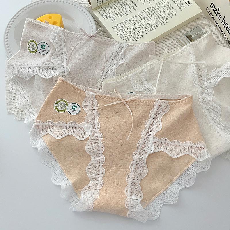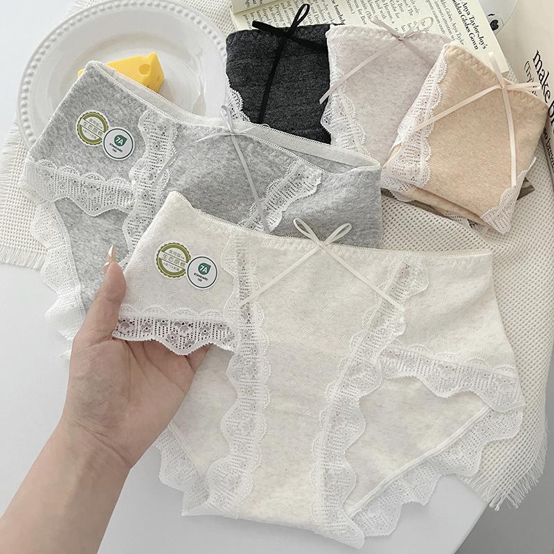 Clase A Algodón para Bebé Encaje Sexy Cubre Caderas 7A Antibacteriano Entrepierna de Algodón Puro Calzones Triángulo Sin Costuras para Mujer Ropa Interior para Mujer