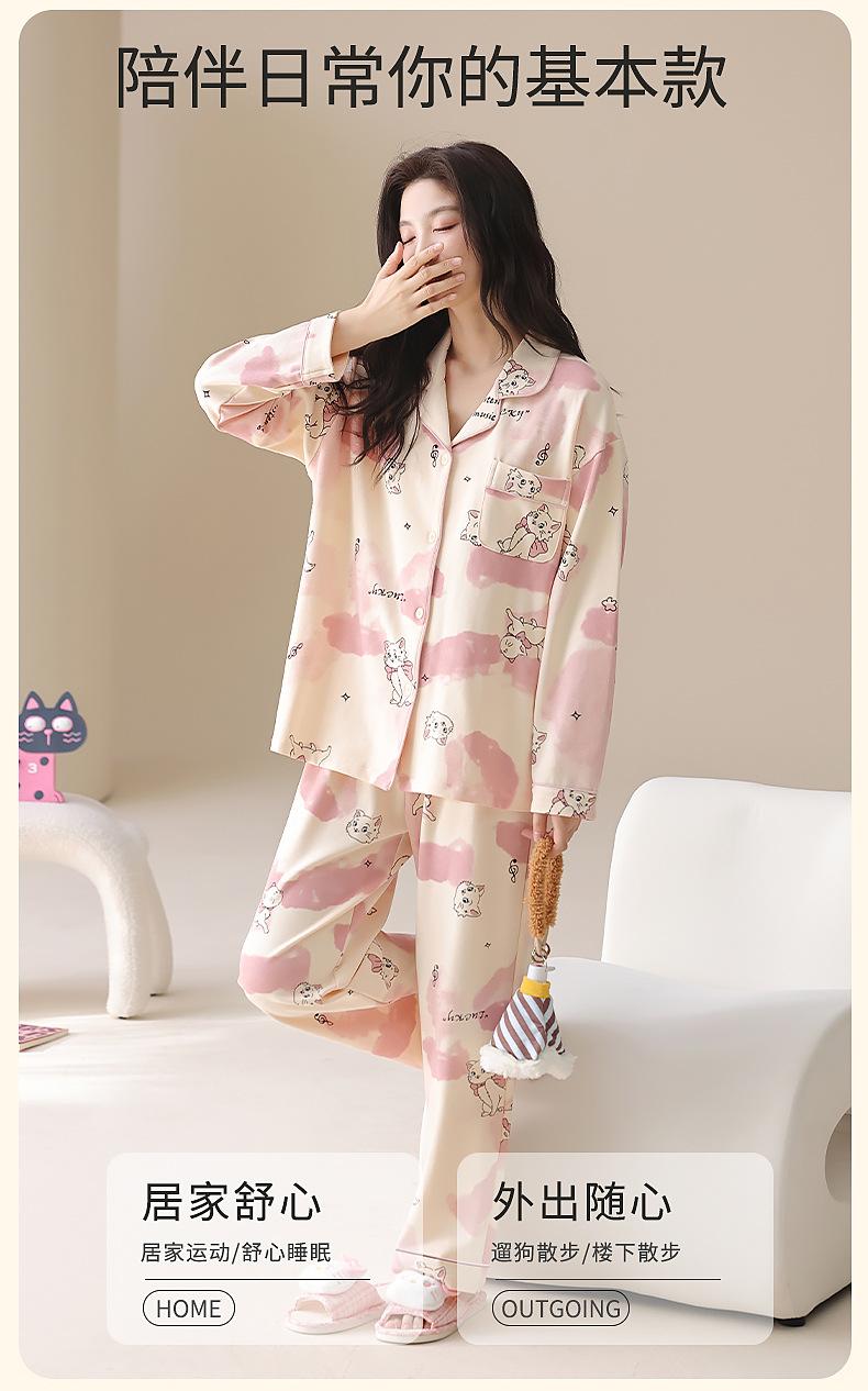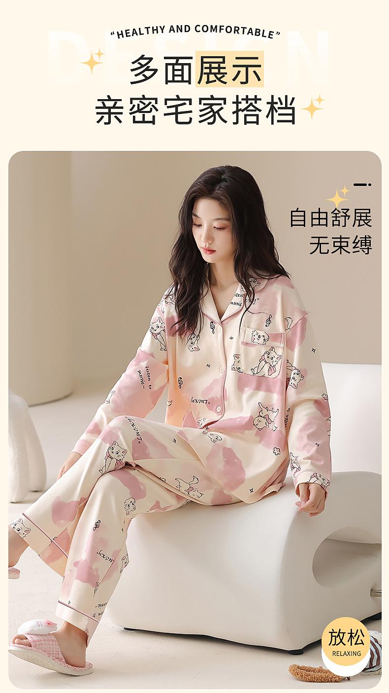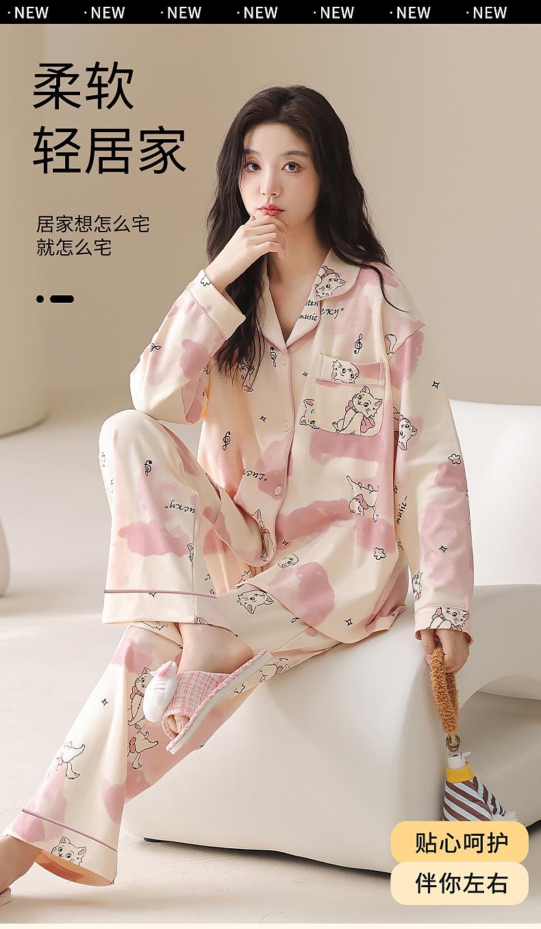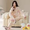 Pijama algodón puro para mujer primavera y otoño 2025 mujer cárdigan manga larga casual holgado se puede usar fuera conjunto para estar en casa invierno