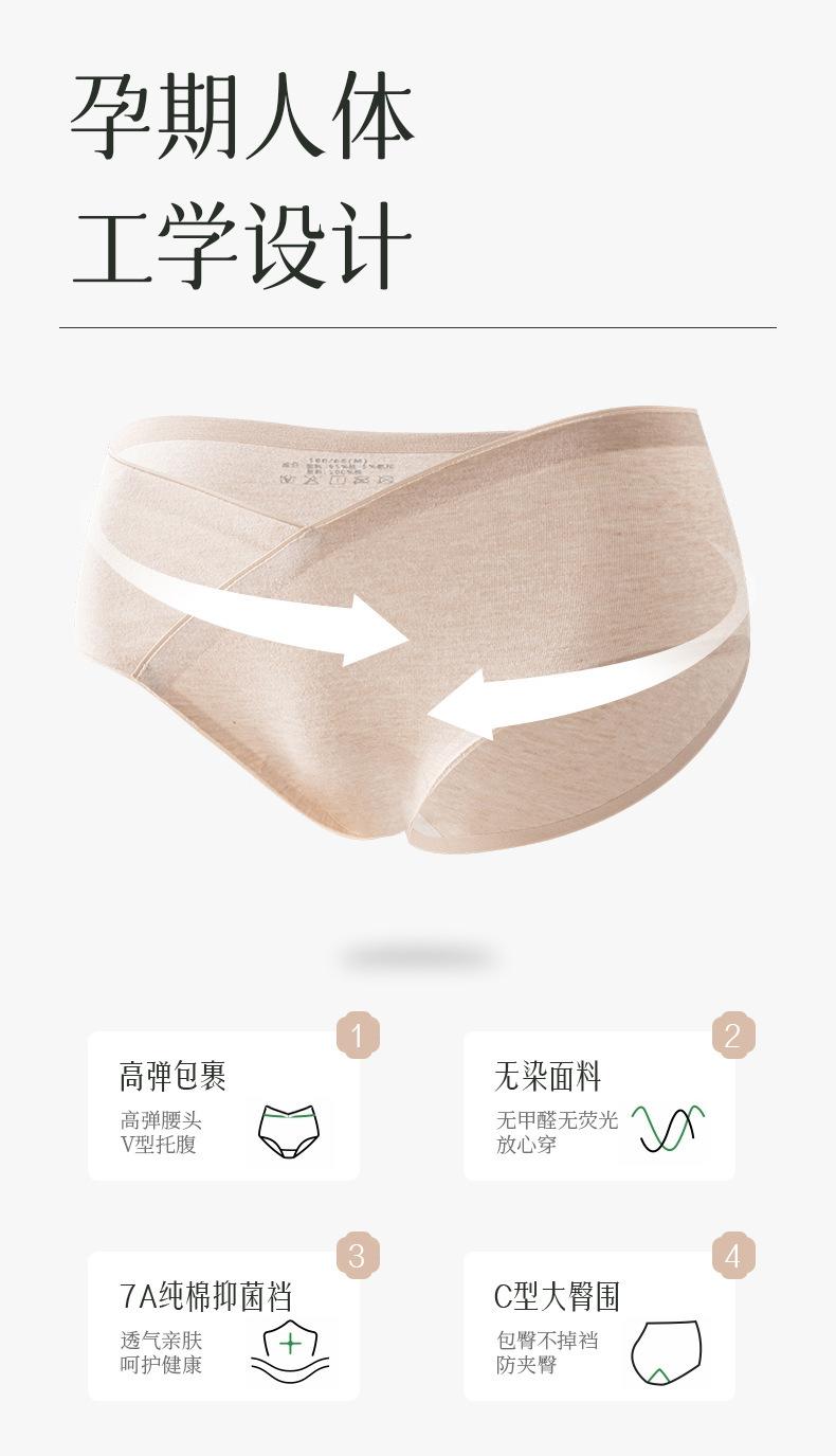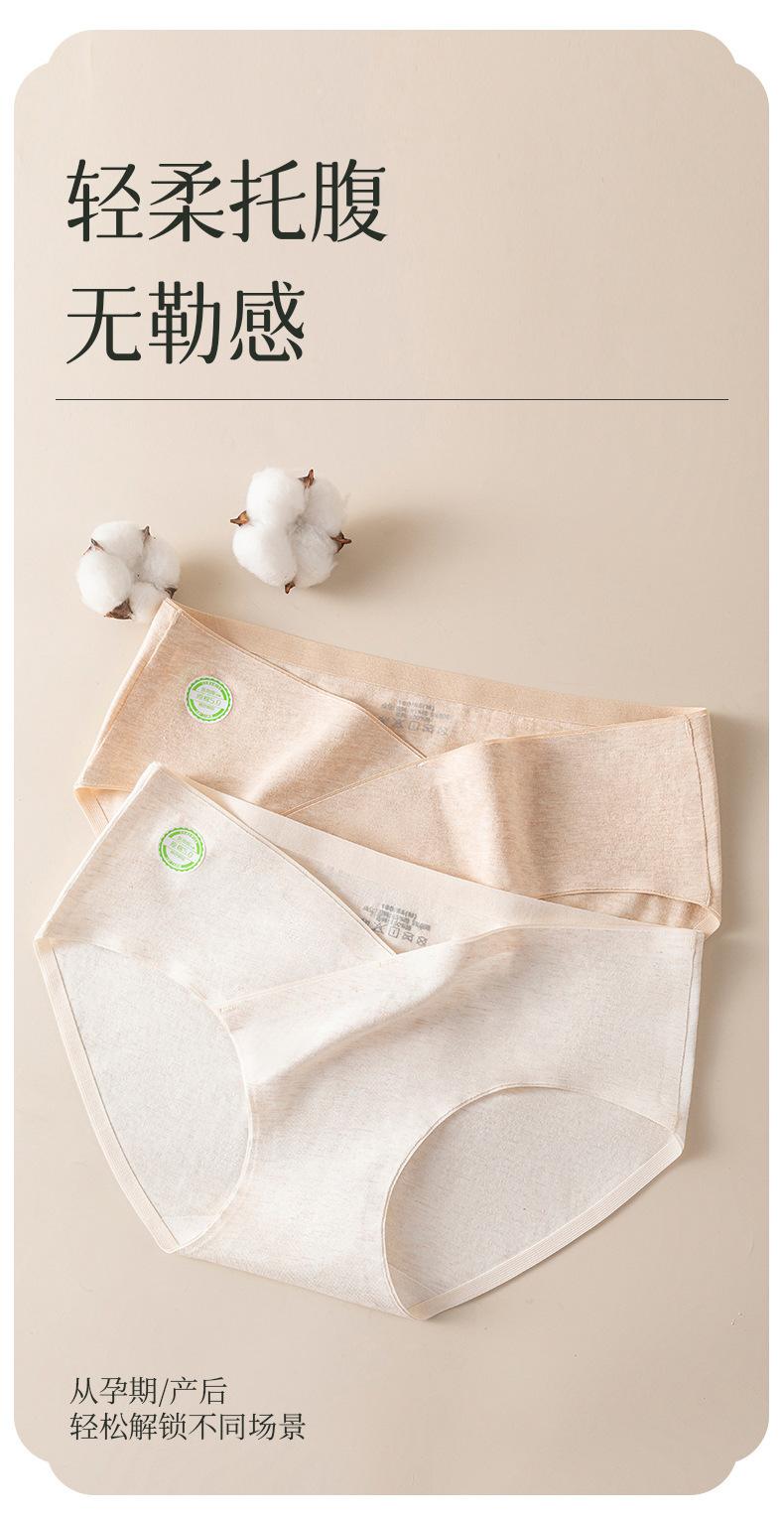 Ropa Interior de Maternidad de Algodón Crudo Grado Médico Clase A de Una Pieza Cintura Baja Forma V Soporte Abdominal Antibacteriano 7A Entrepierna Extendida Triángulo Sin Costuras