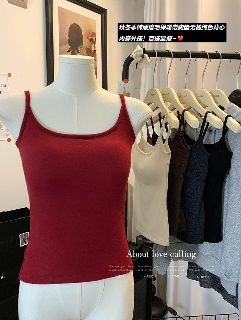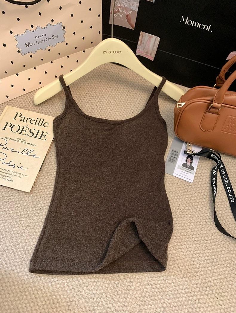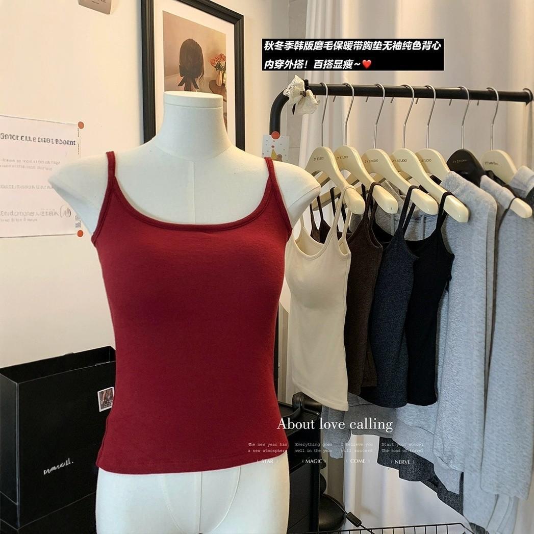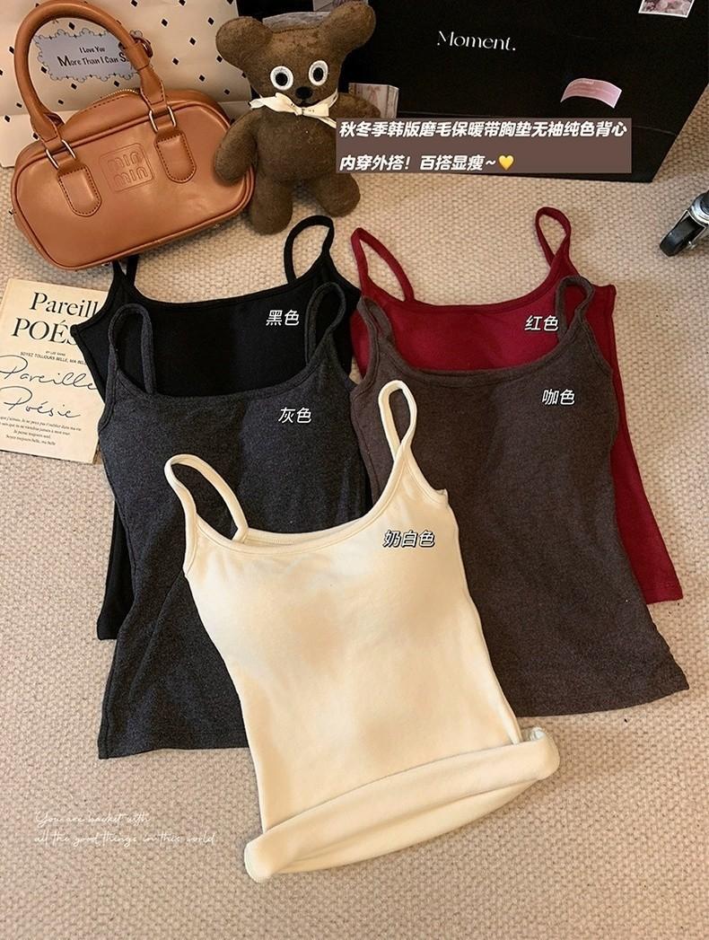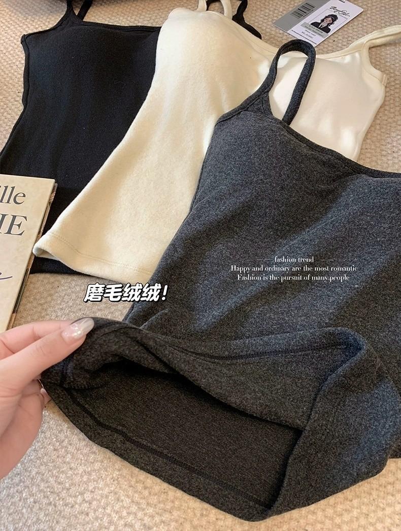 1271 Forro polar lijado Engrosado Cálido Cuello U Chaleco para Mujer Otoño e Invierno Nuevo Básico Combinable Top Interior con Tirantes