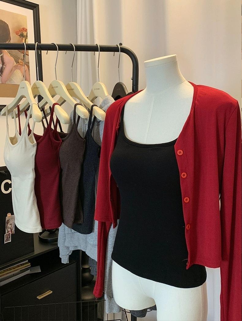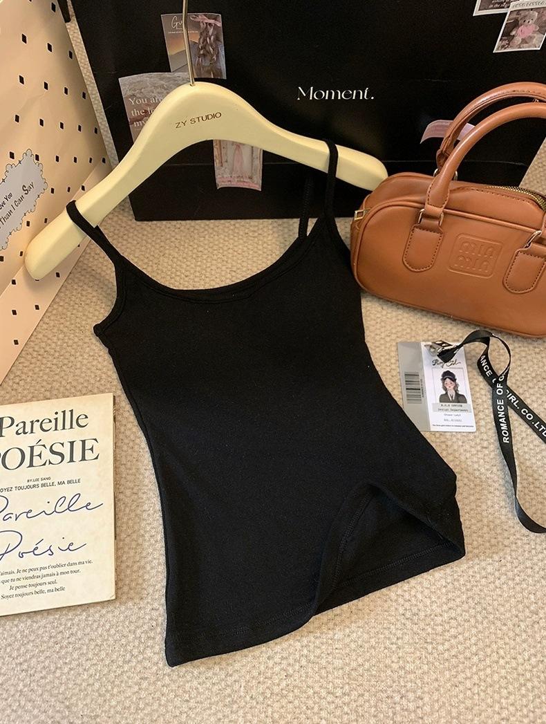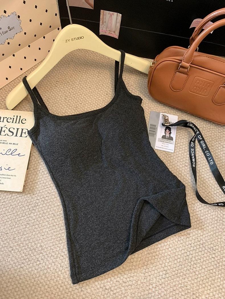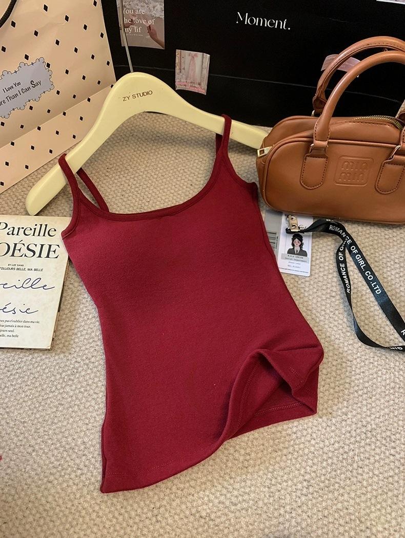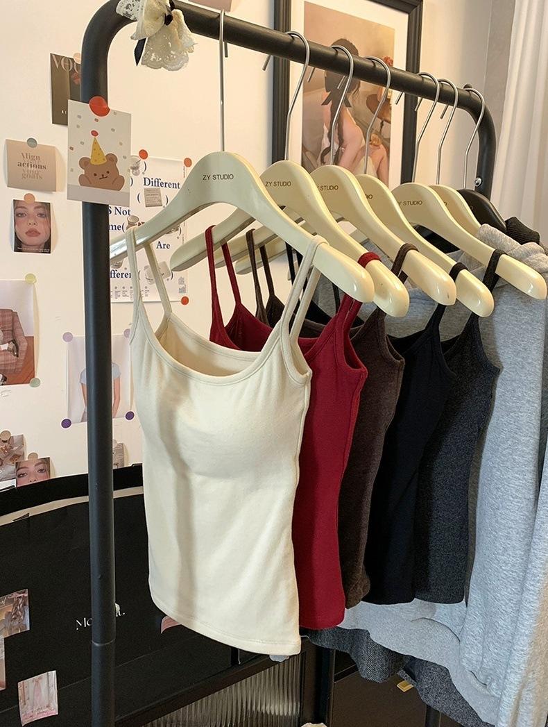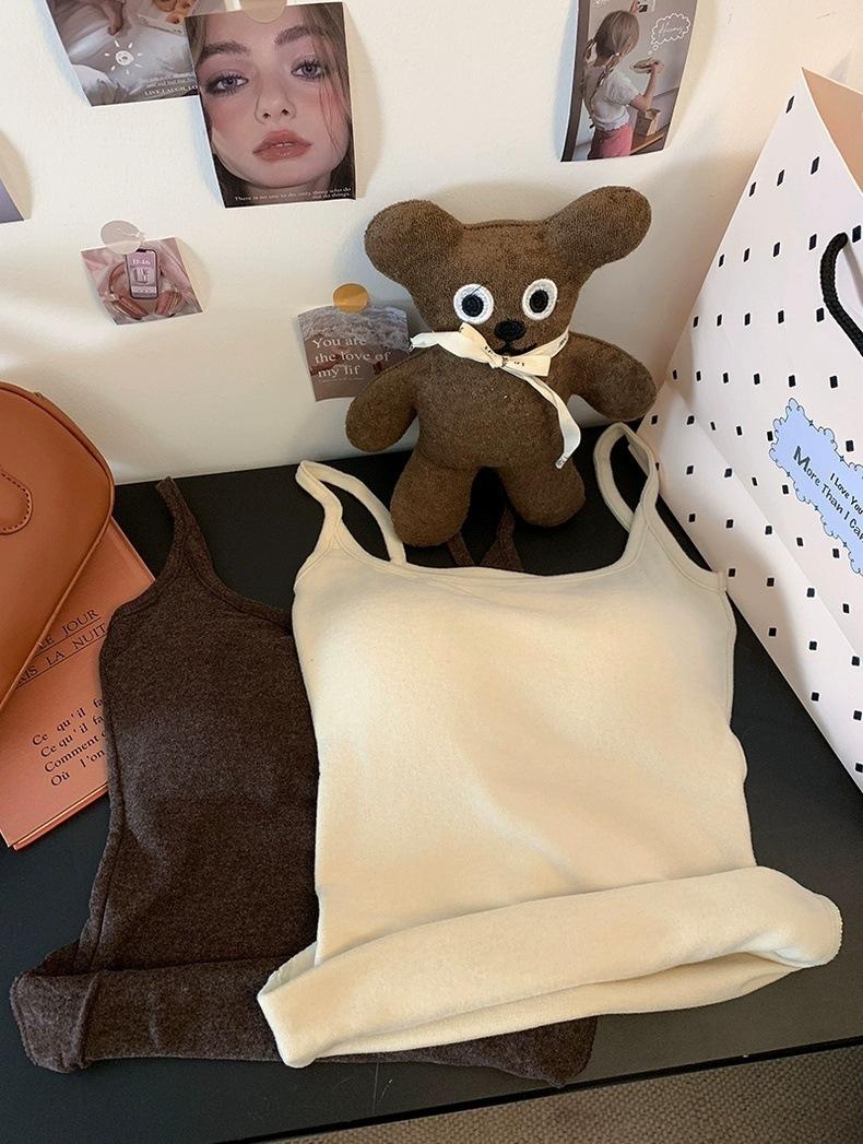 1271 Forro polar lijado Engrosado Cálido Cuello U Chaleco para Mujer Otoño e Invierno Nuevo Básico Combinable Top Interior con Tirantes