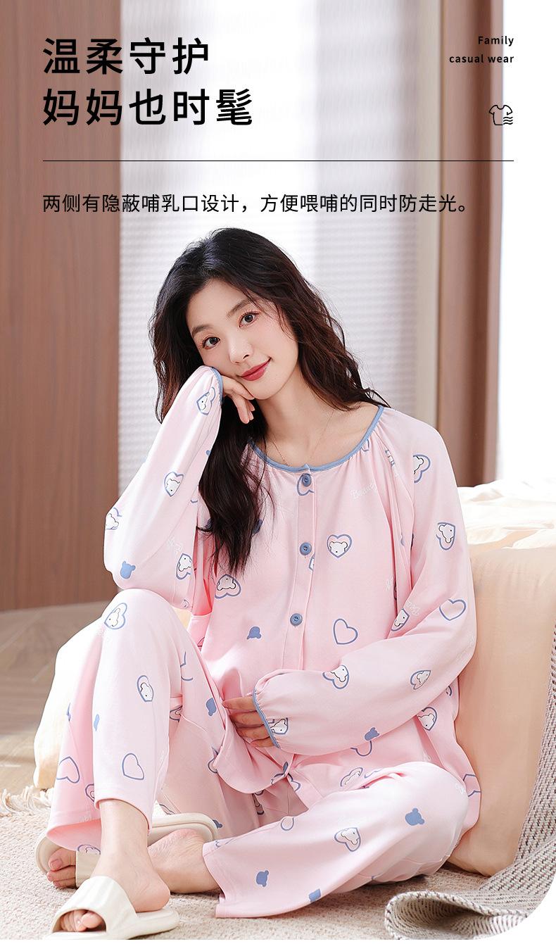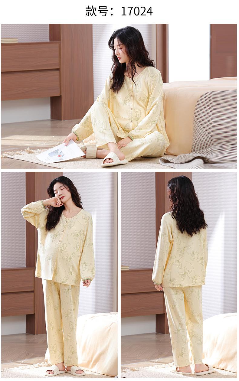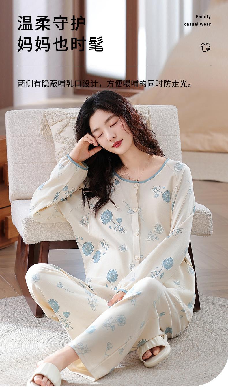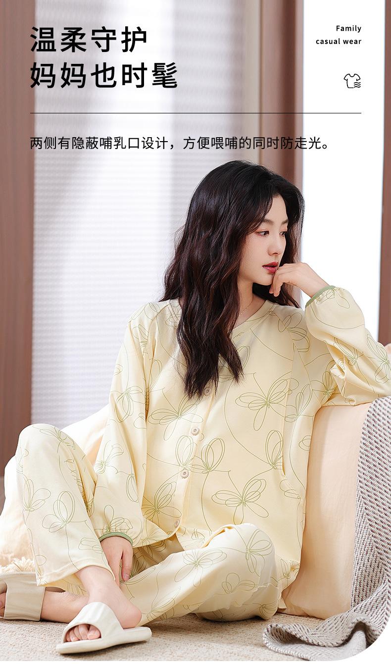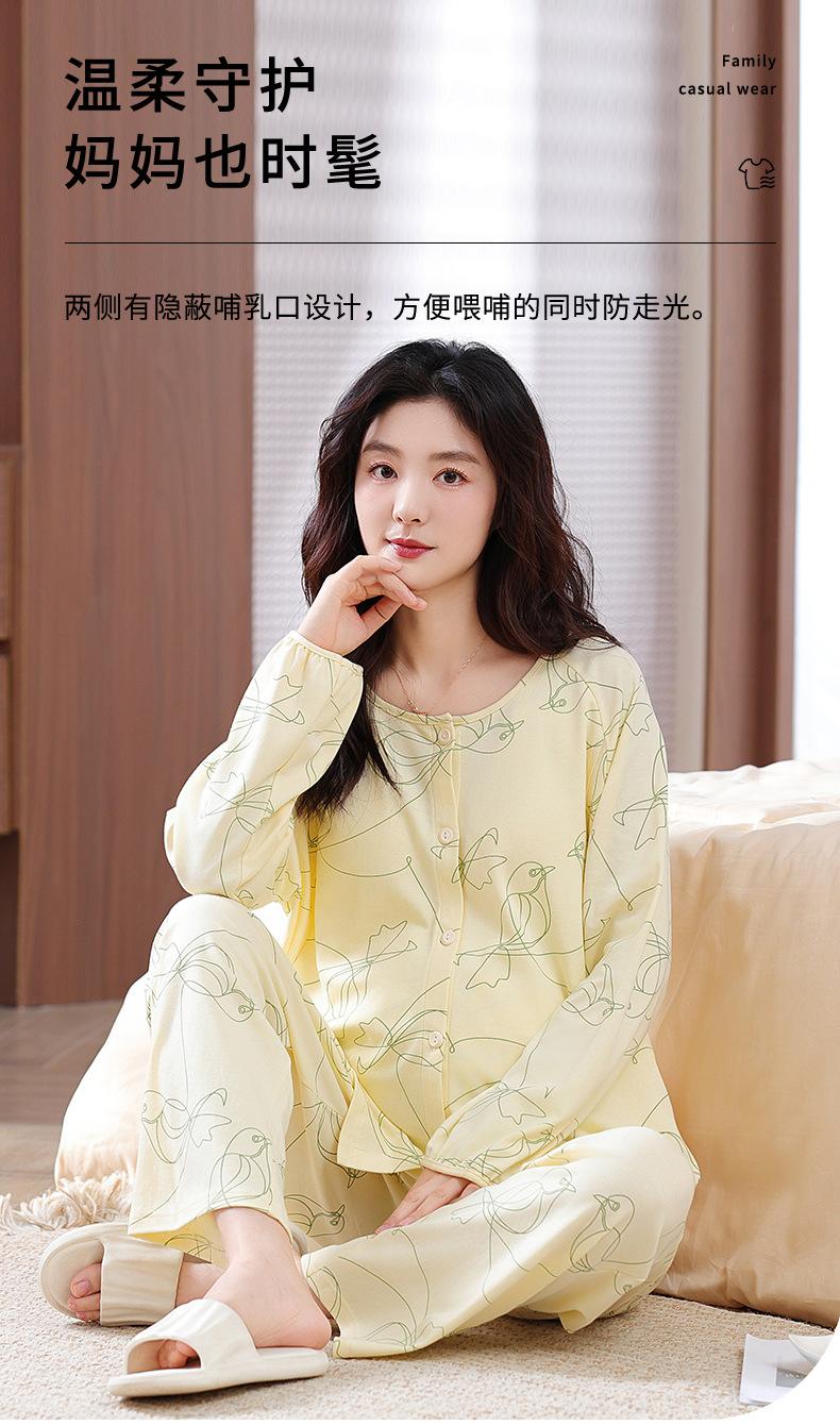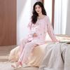 Fabricante Otoño Nuevo Producto Punto Venta Directa Pijama de Mujer Casual Simple Suelto Cómodo con Almohadilla en el Pecho Conjunto de Ropa para el Hogar