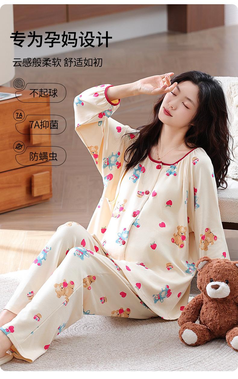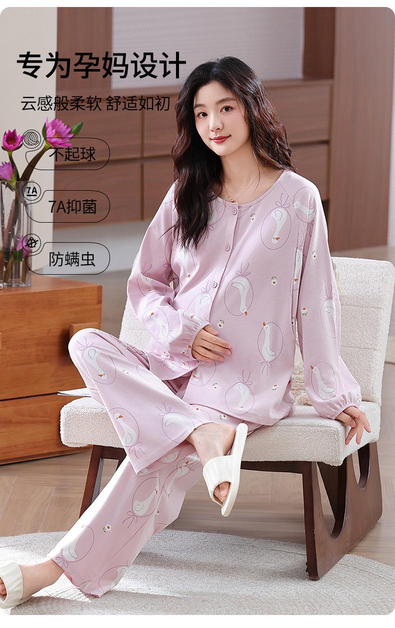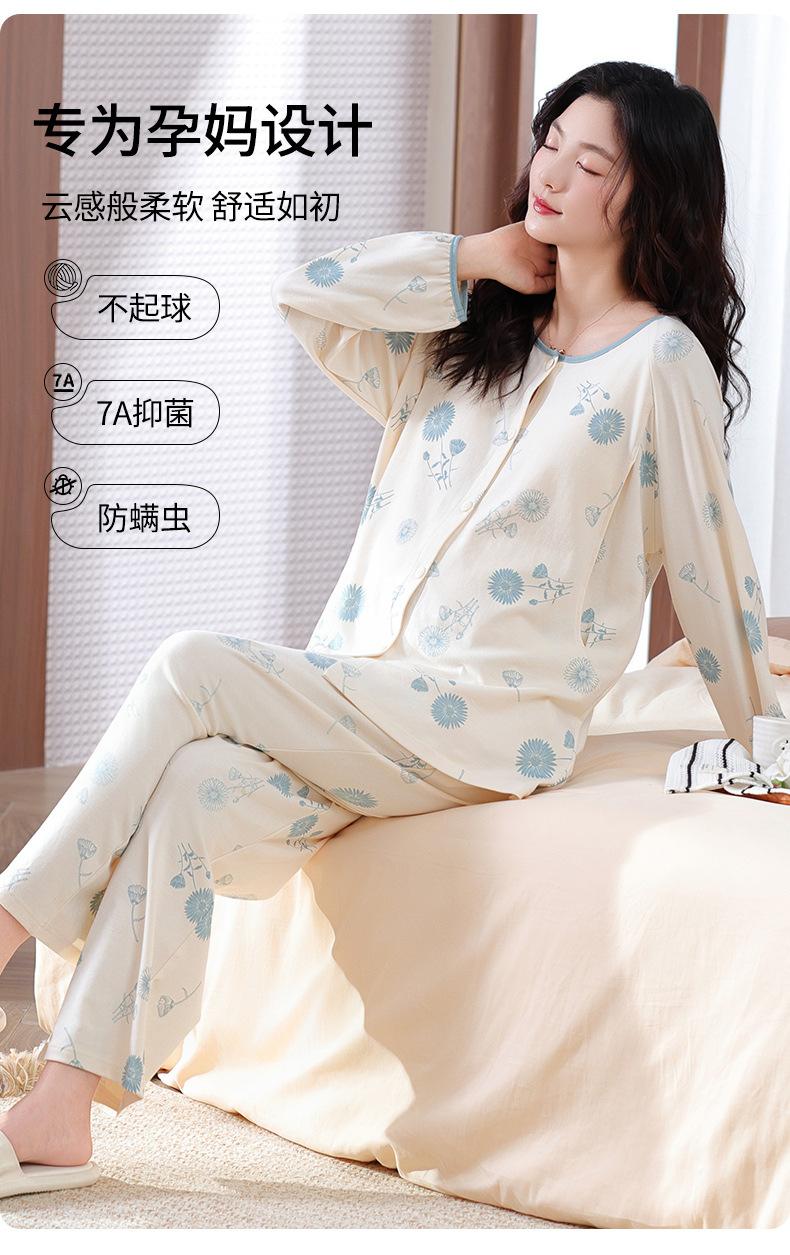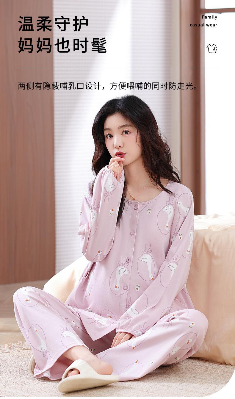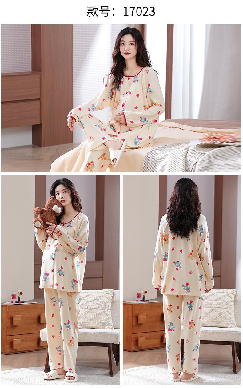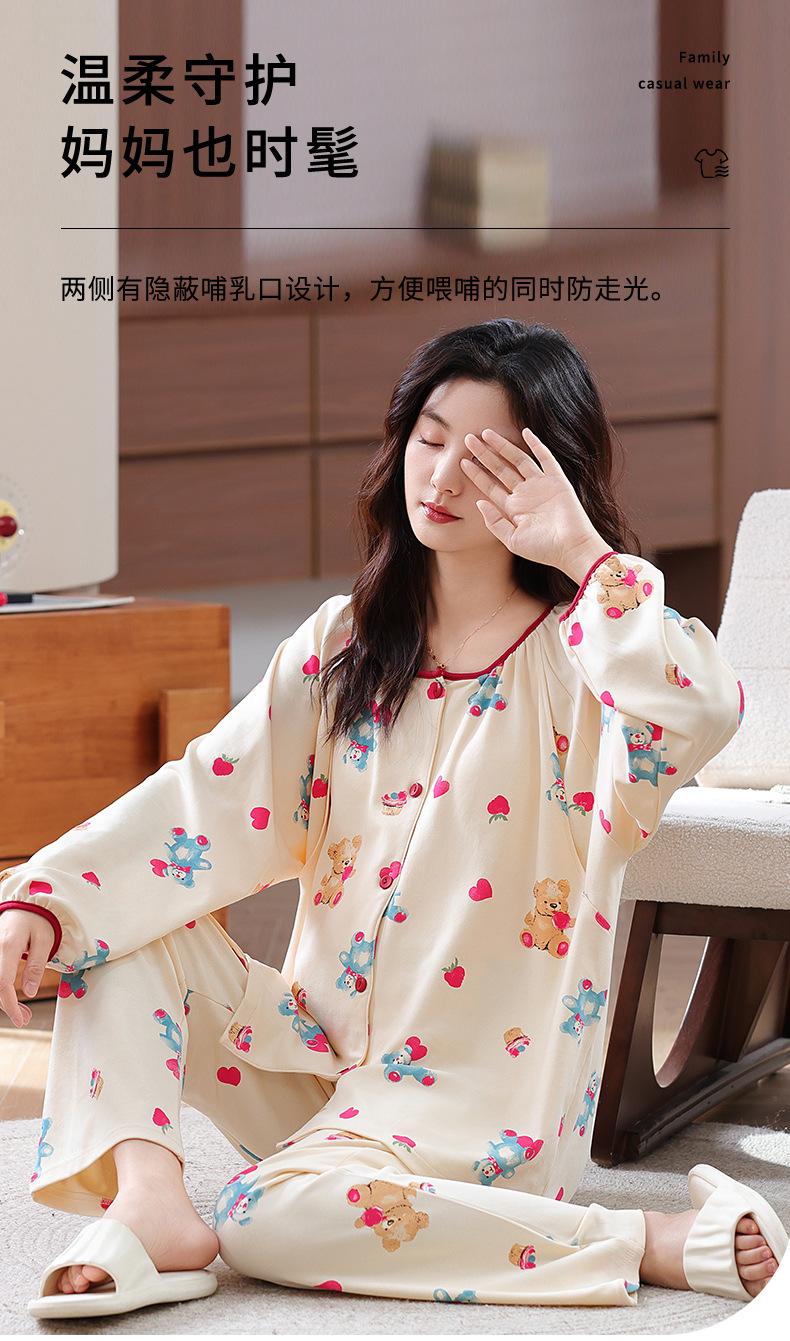 Fabricante Otoño Nuevo Producto Punto Venta Directa Pijama de Mujer Casual Simple Suelto Cómodo con Almohadilla en el Pecho Conjunto de Ropa para el Hogar