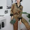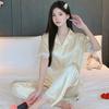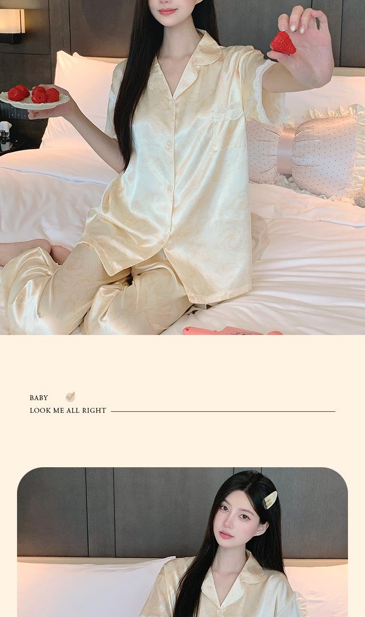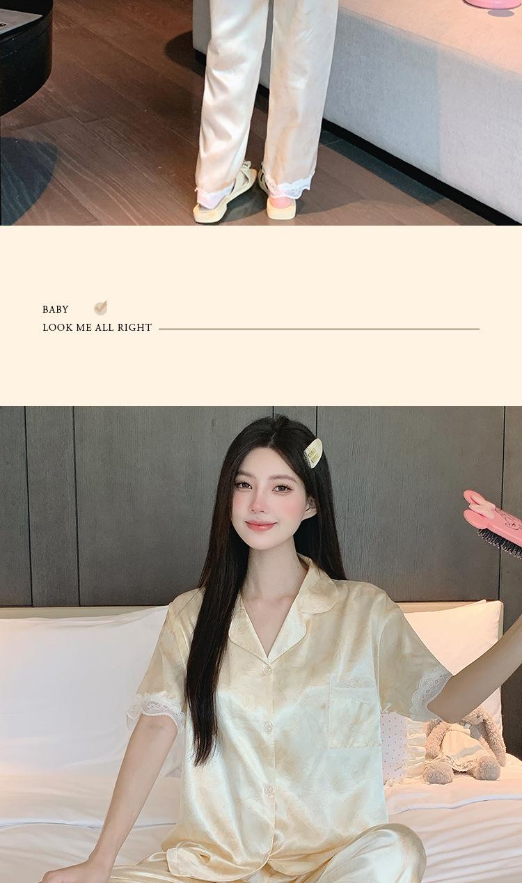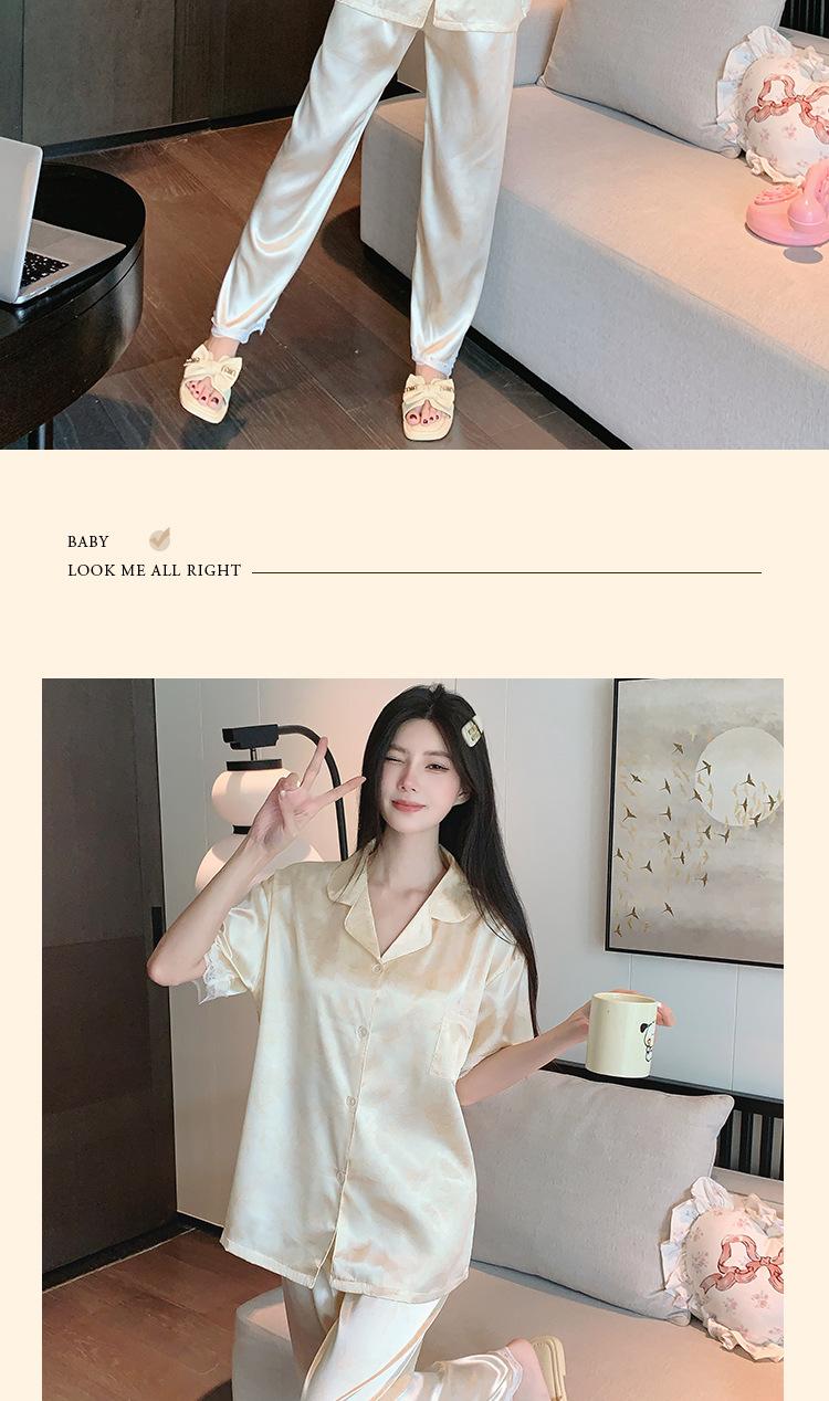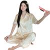 Lujo Ligero Color Sólido Encaje de Alta Gama Lujo Ligero Pijama de Seda Helada para Mujer Verano Manga Corta Pantalón Largo Conjunto de Ropa para el Hogar Venta al por Mayor