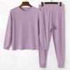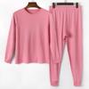 Conjunto de ropa interior térmica de color sólido con cuello redondo para mujer, jersey de cuello redondo, ropa de otoño, pantalones de otoño, ropa cálida para mujer al por mayor