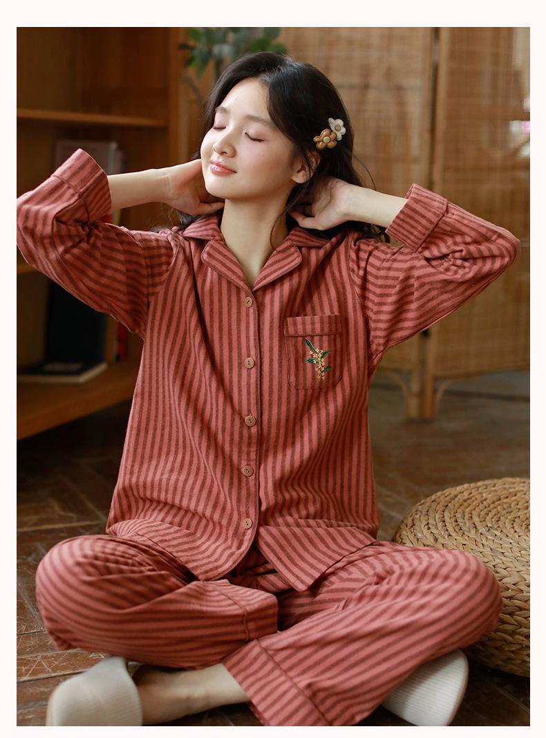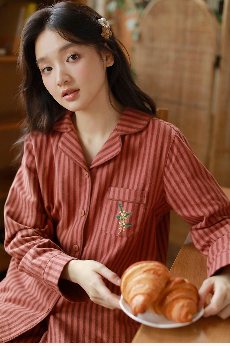 Pijamas de Franela de Algodón Puro para Mujer Nuevos de Otoño Personalizados Primavera y Otoño Ropa para el Hogar Se Pueden Usar Afuera Conjunto Casual para el Hogar
