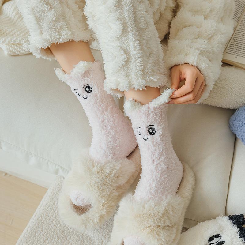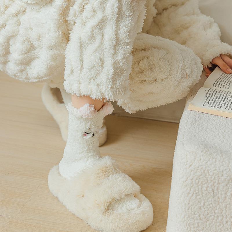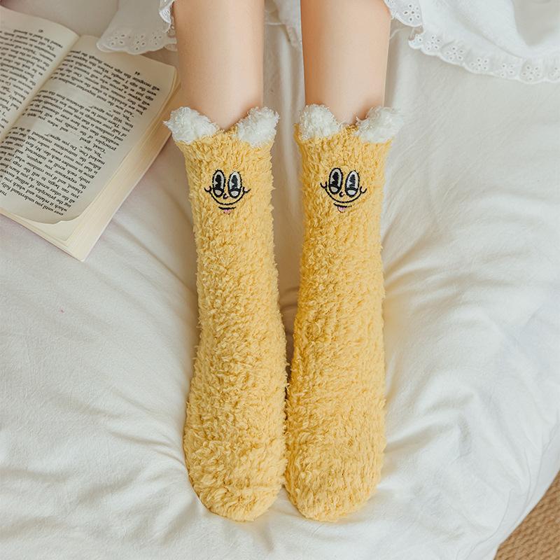 Calcetines lindos de forro polar coral para mujer Otoño Invierno Calcetines de algodón afelpados Espesor para el hogar Dormir Cálido Difuso Calcetines de piso Invierno