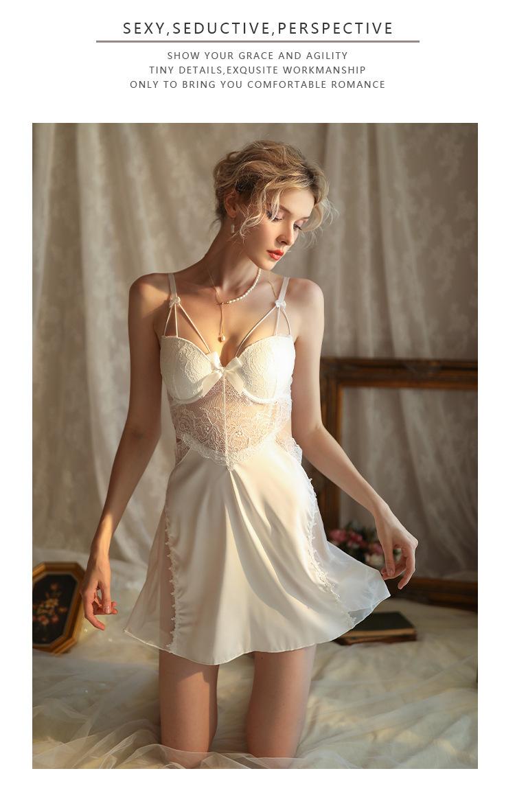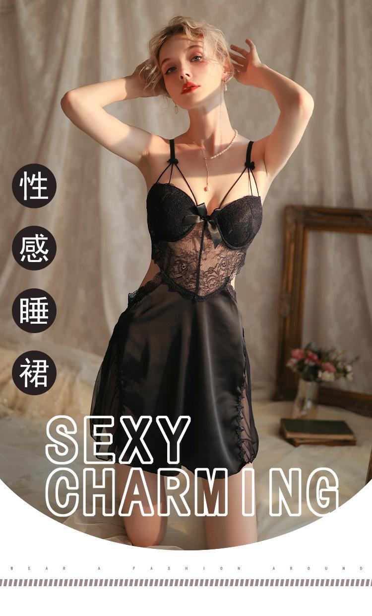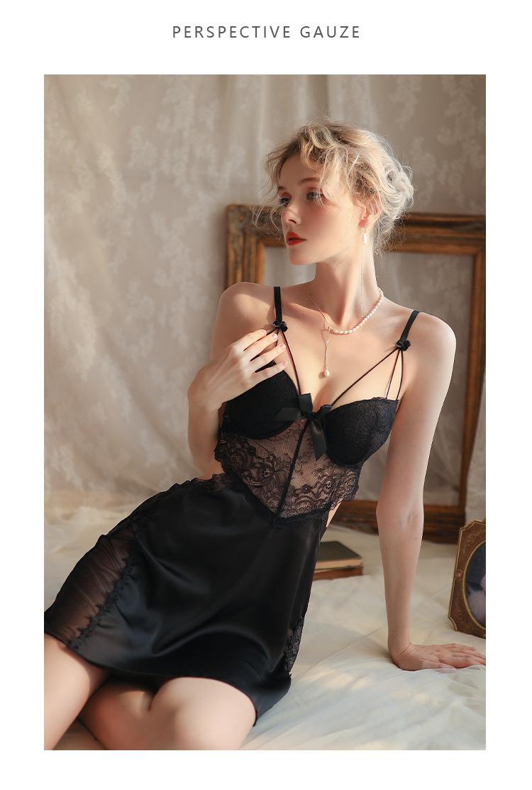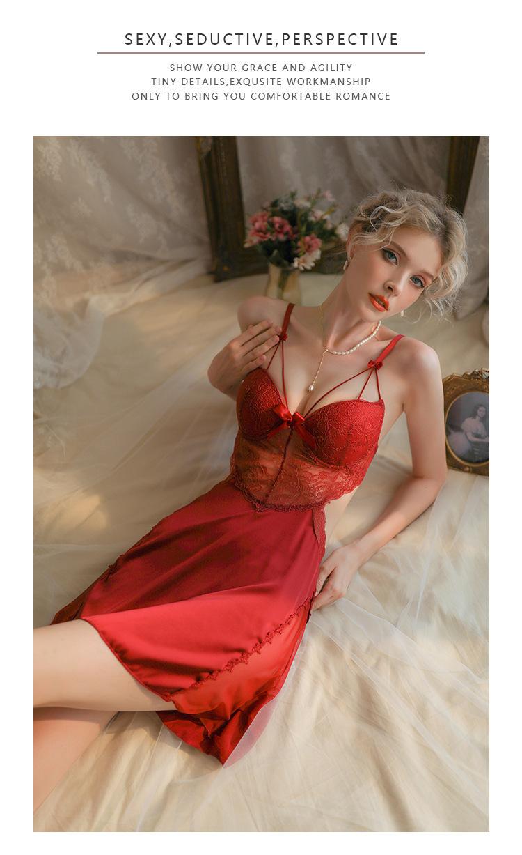 Hermoso hilo nuevo estilo sexy traje profundo V sexy encaje perspectiva tirantes sexy pijamas abertura sexy camisón femenino