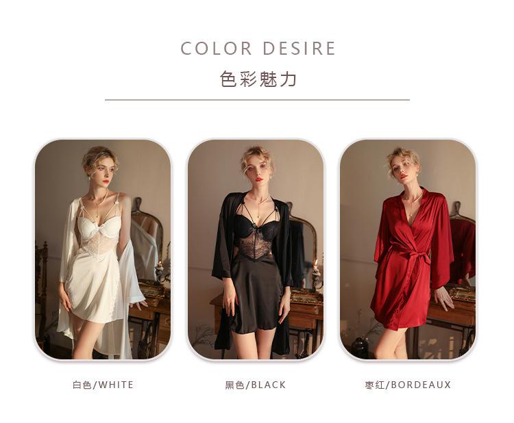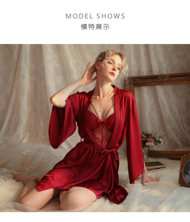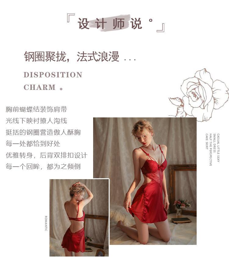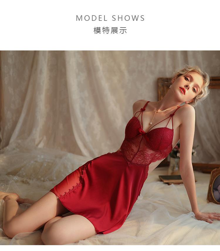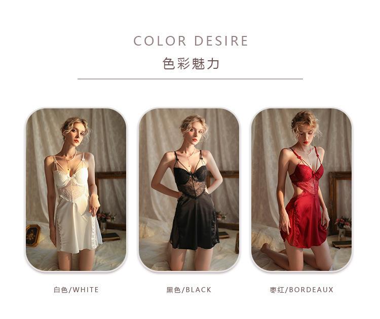 Hermoso hilo nuevo estilo sexy traje profundo V sexy encaje perspectiva tirantes sexy pijamas abertura sexy camisón femenino