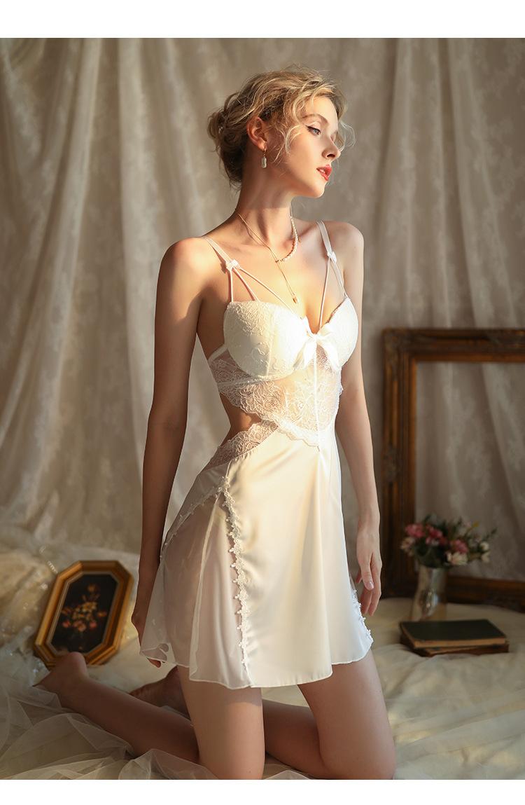 Nuevo Conjunto de Lencería Sexy Lencería Babydoll Sexy de Encaje Transparente Abertura Camisón Sexy Dropshipping