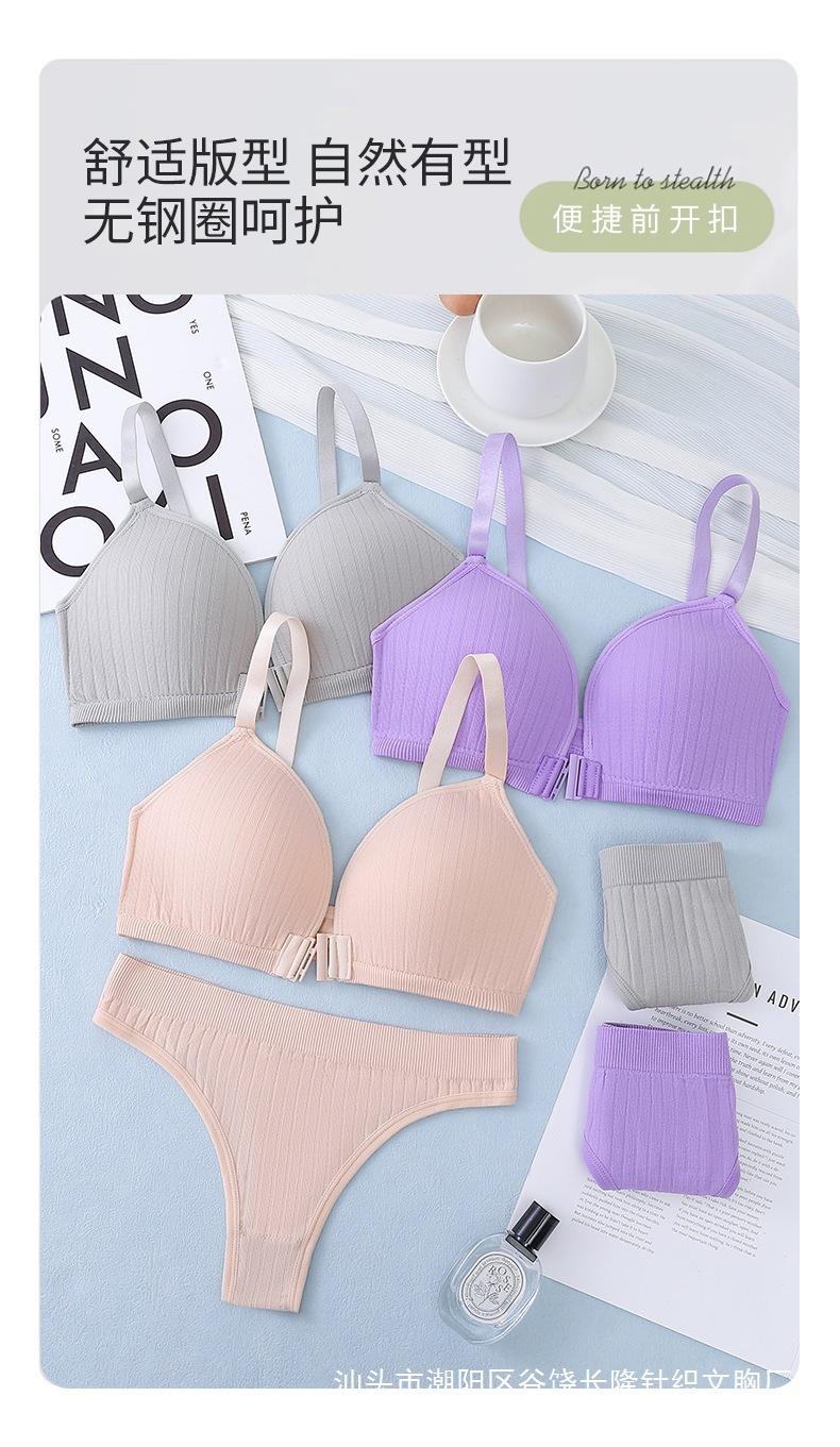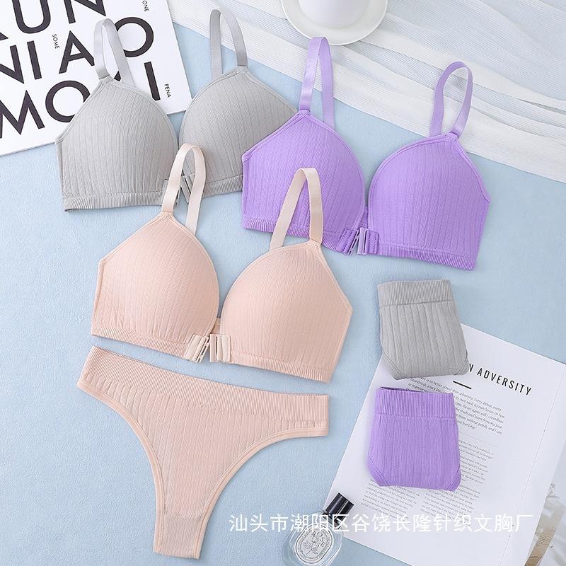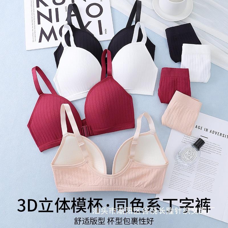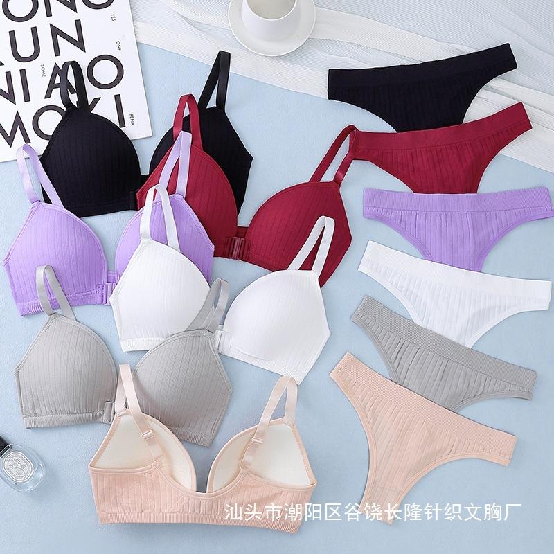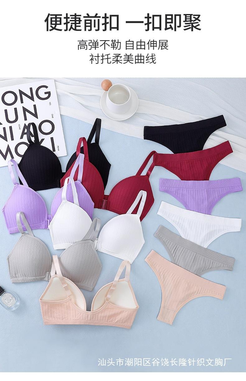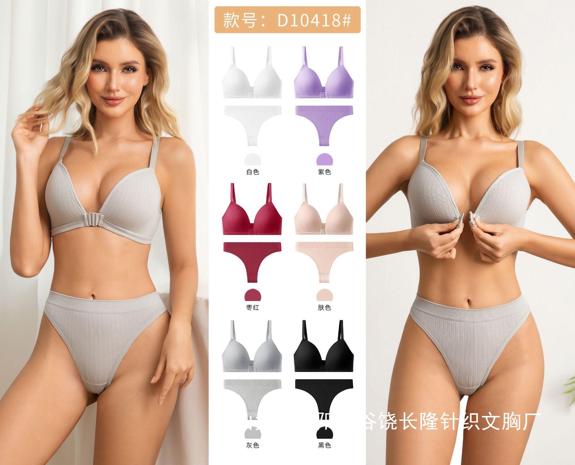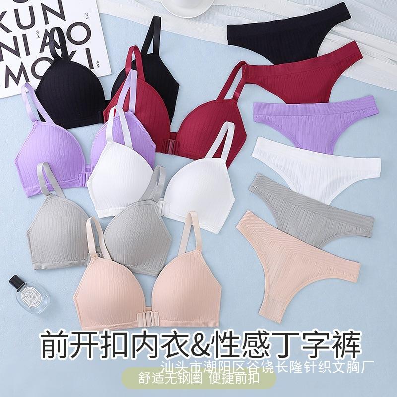 Sujetador Push-up Cómodo con Tanga, Sexy de Tirantes Finos y Copa Triangular sin Aros, con Hebilla Delantera para Comercio Exterior Transfronterizo