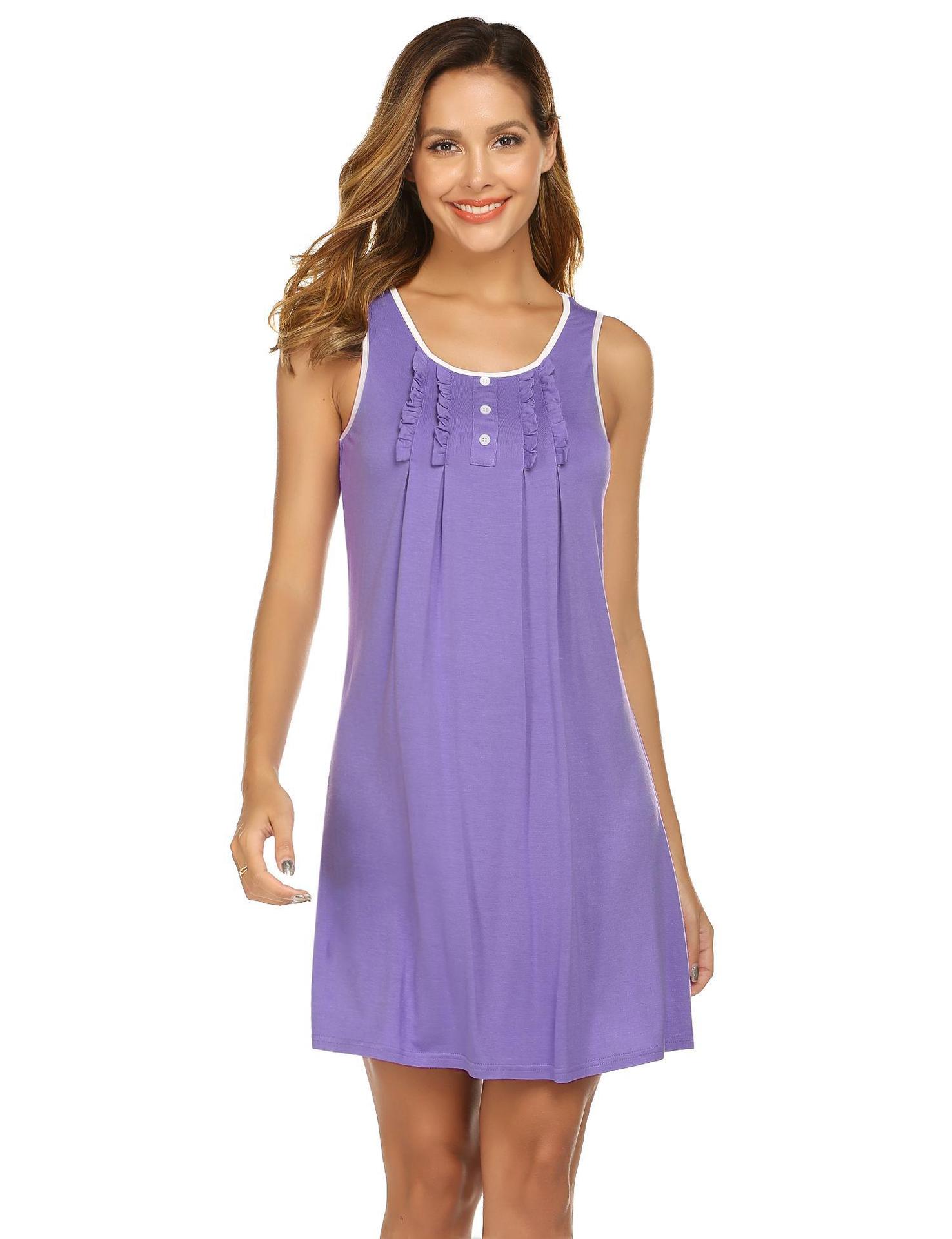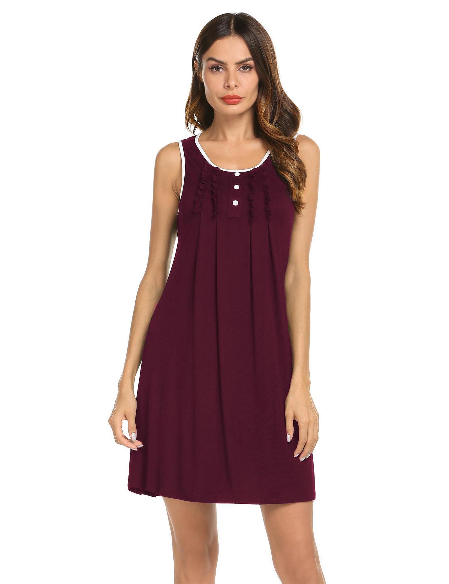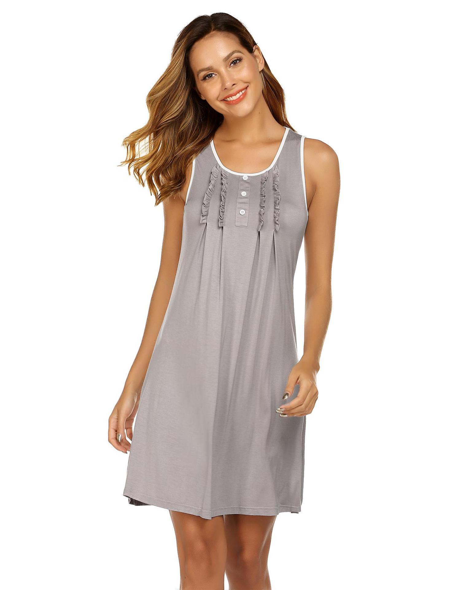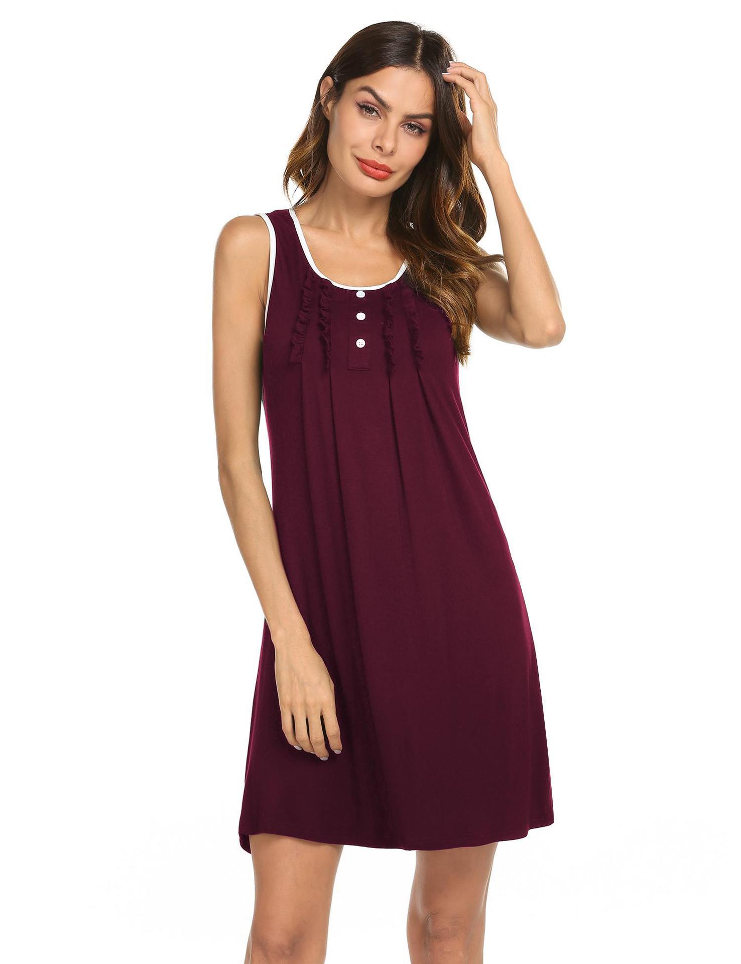 Amazon Europa y América Camisón Chaleco Vestido de Verano para Mujer Sin Mangas Simple Color Sólido Se Puede Usar Fuera Ropa para el Hogar Pijama Mujer