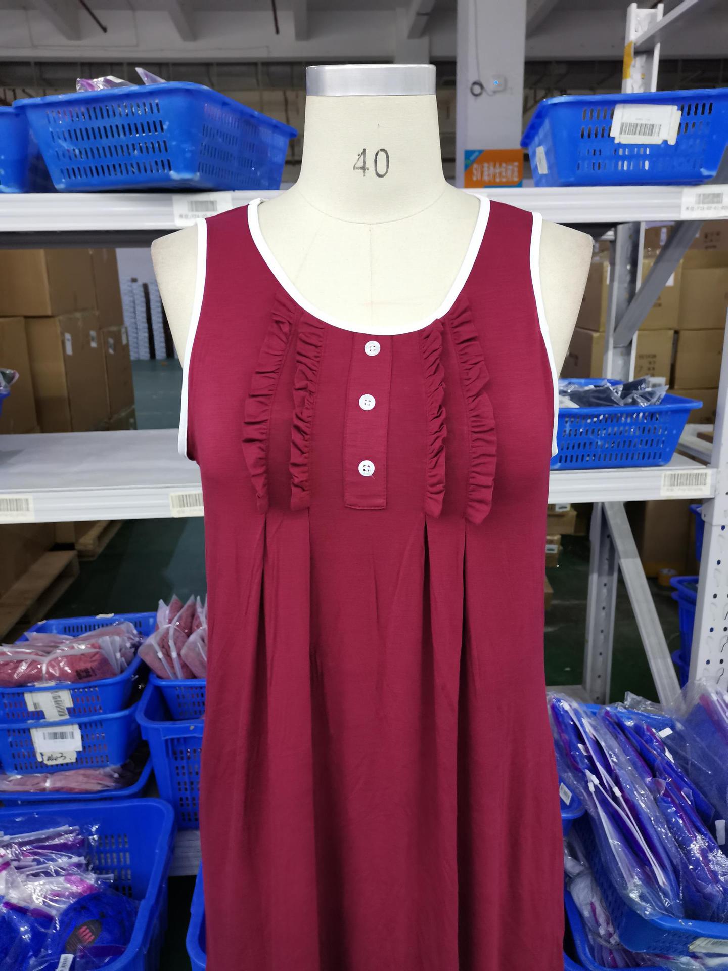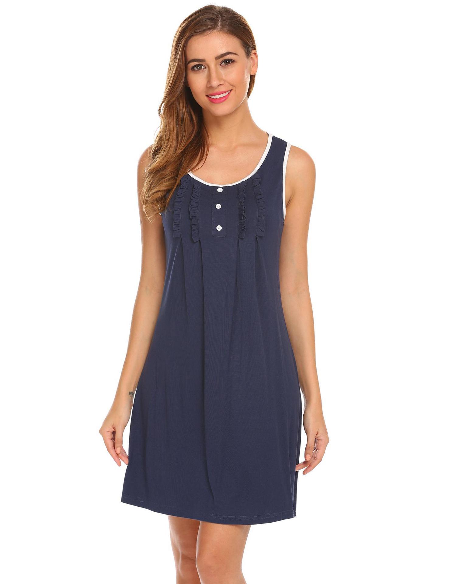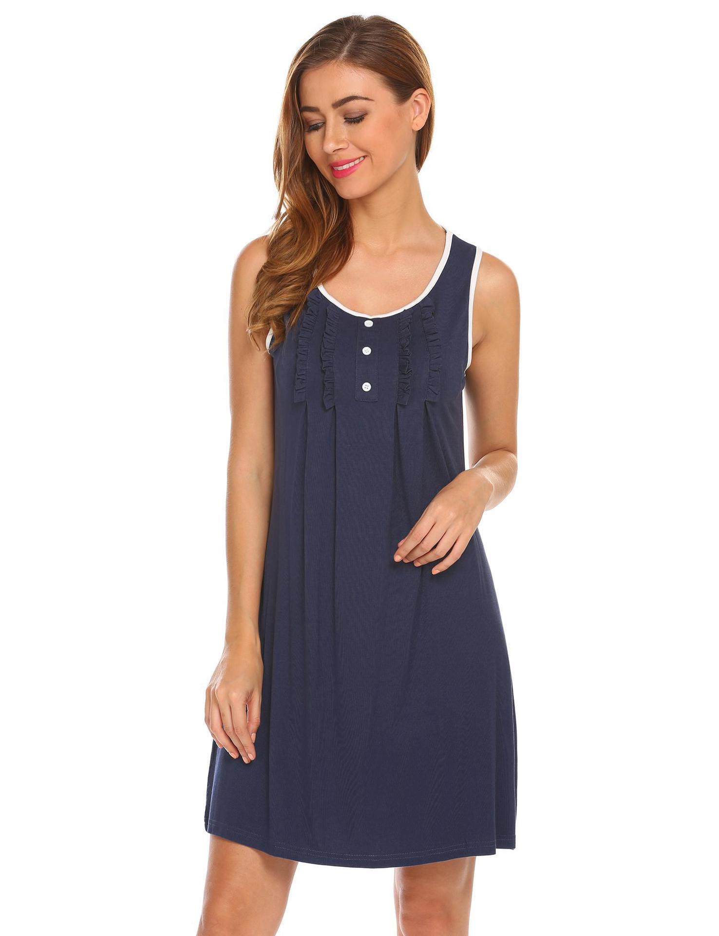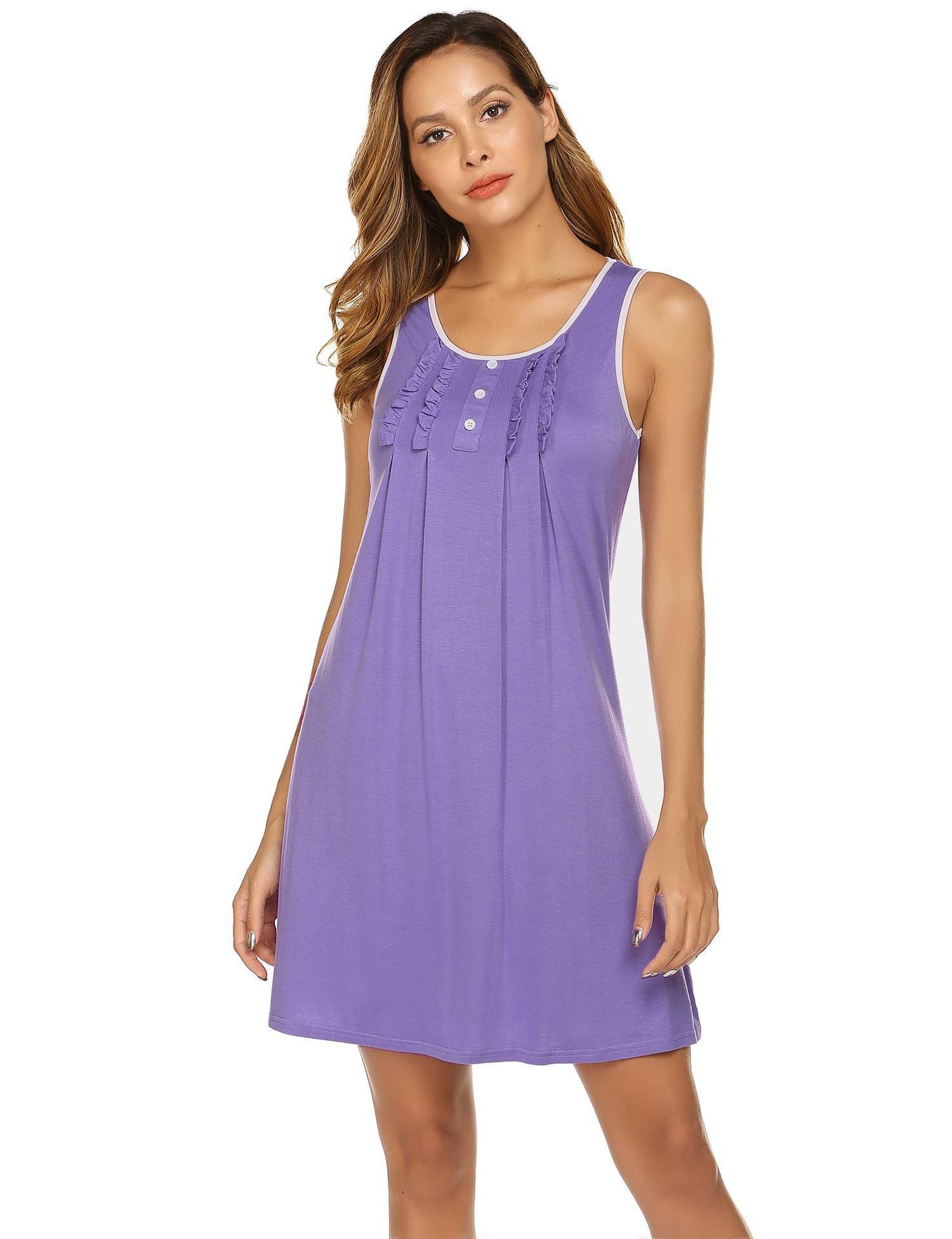 Amazon Europa y América Camisón Chaleco Vestido de Verano para Mujer Sin Mangas Simple Color Sólido Se Puede Usar Fuera Ropa para el Hogar Pijama Mujer