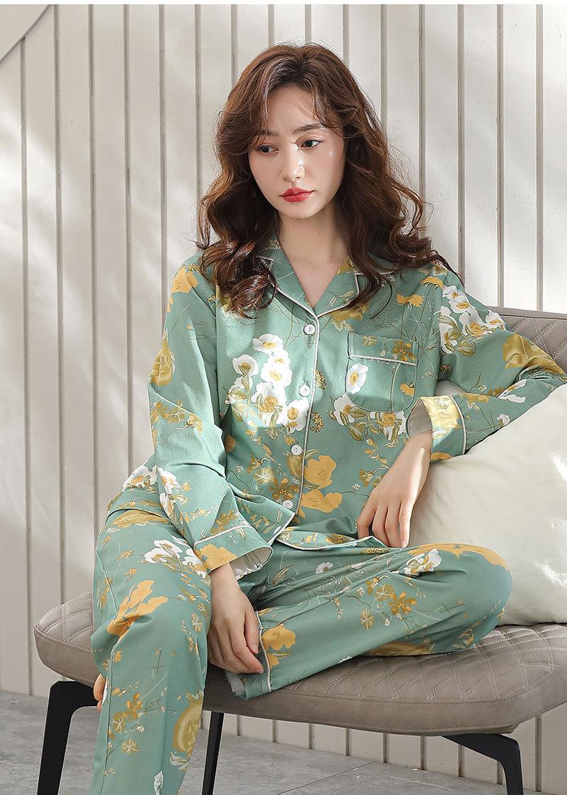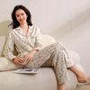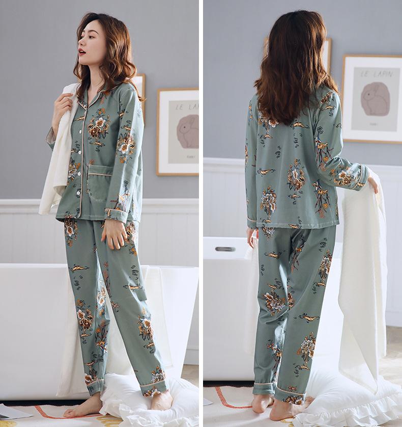 Pijama para Mujer Algodón Puro Manga Larga Primavera Otoño Invierno Cárdigan Talla Grande Holgado Mamá de Mediana Edad Ropa de Casa Set Delgado de Verano
