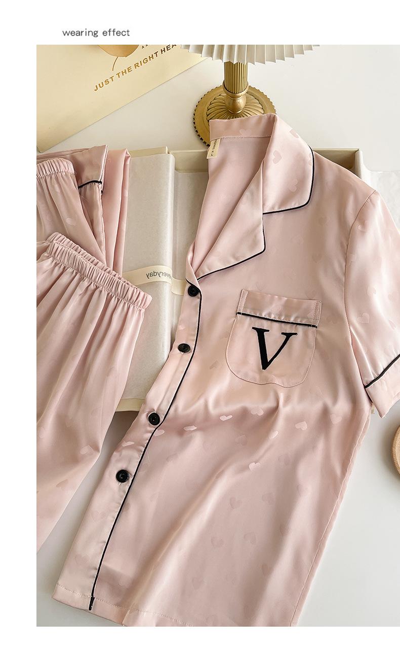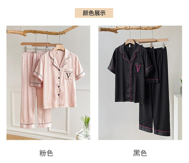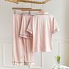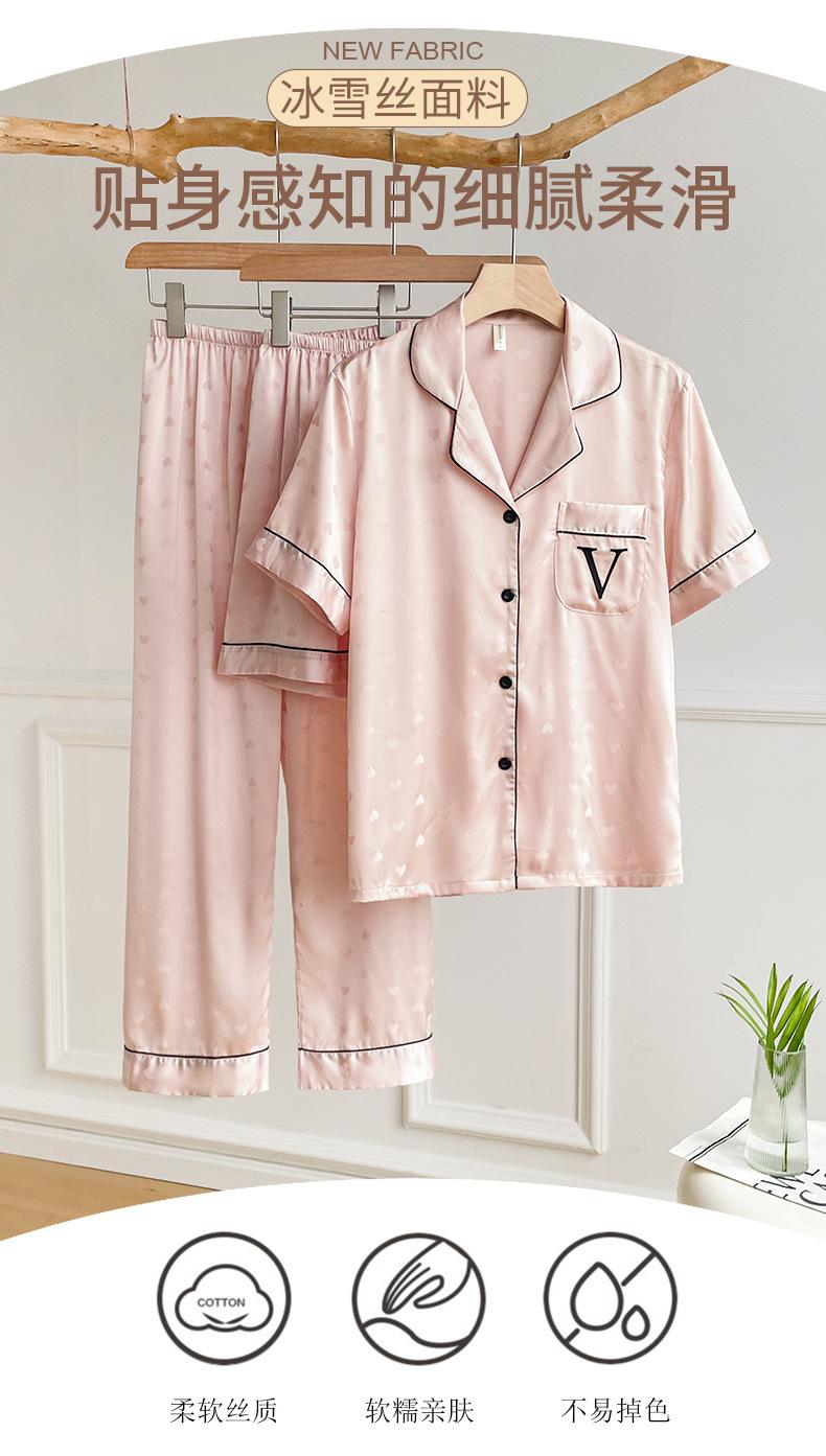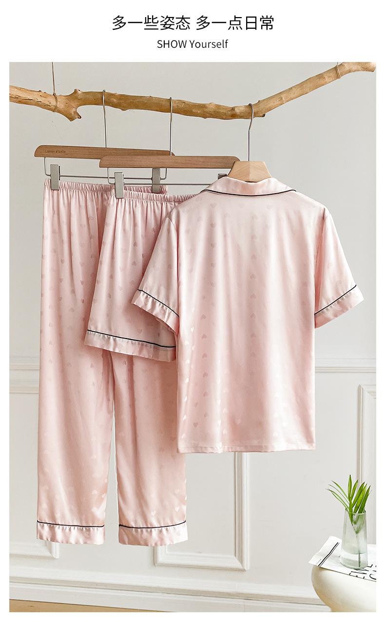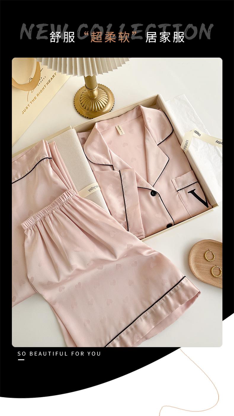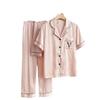 Pijama de Verano para Mujer Delgada Nueva Seda de Hielo y Nieve Traje de Verano Manga Corta Seda de Alta Gama Ropa para el Hogar Conjunto de Tres Piezas
