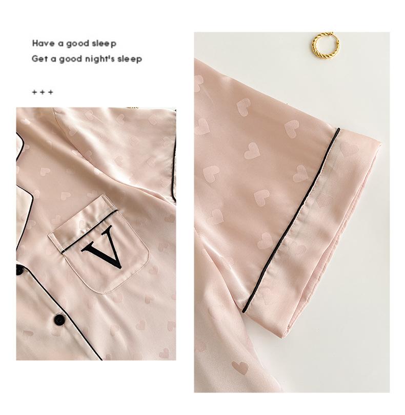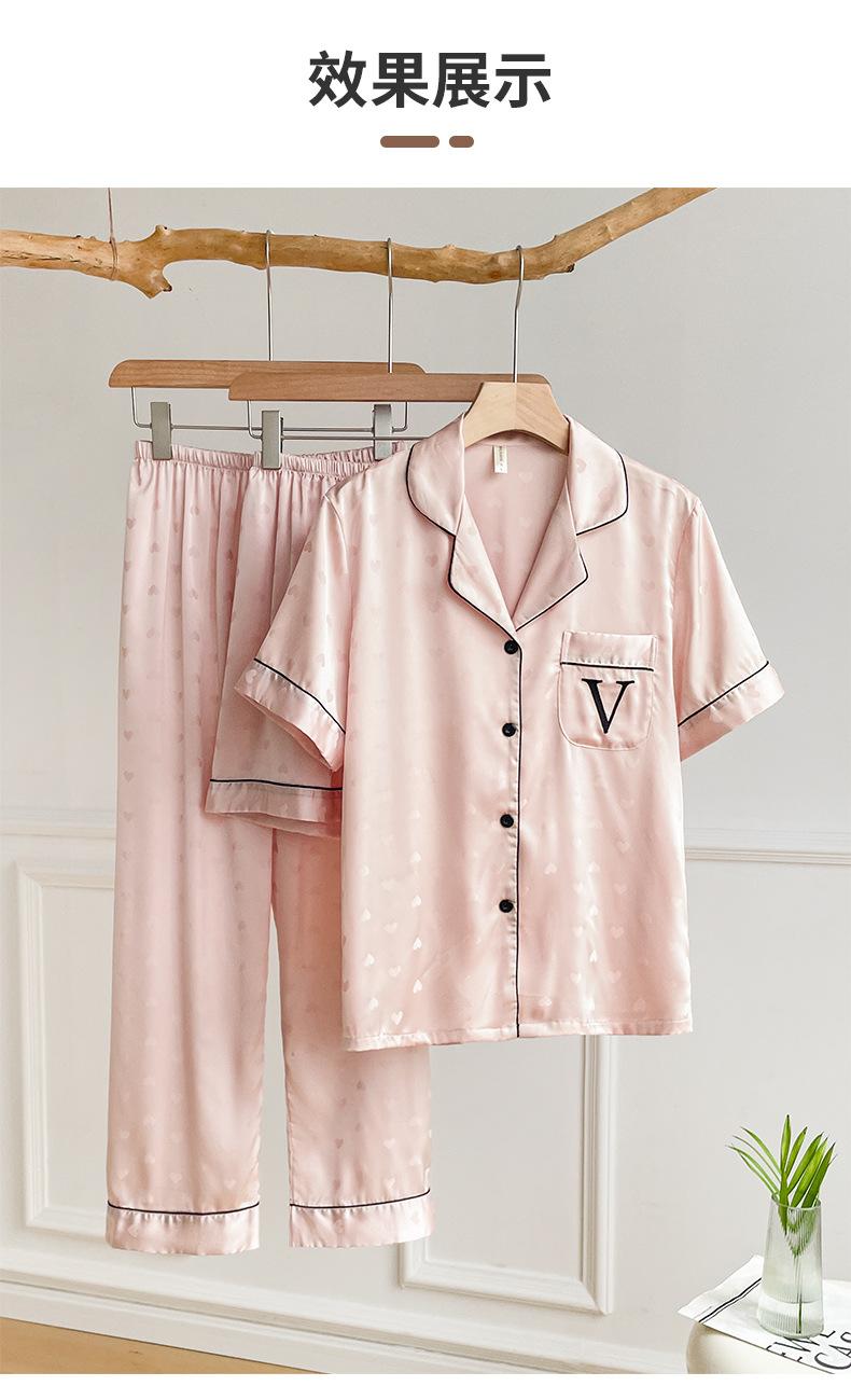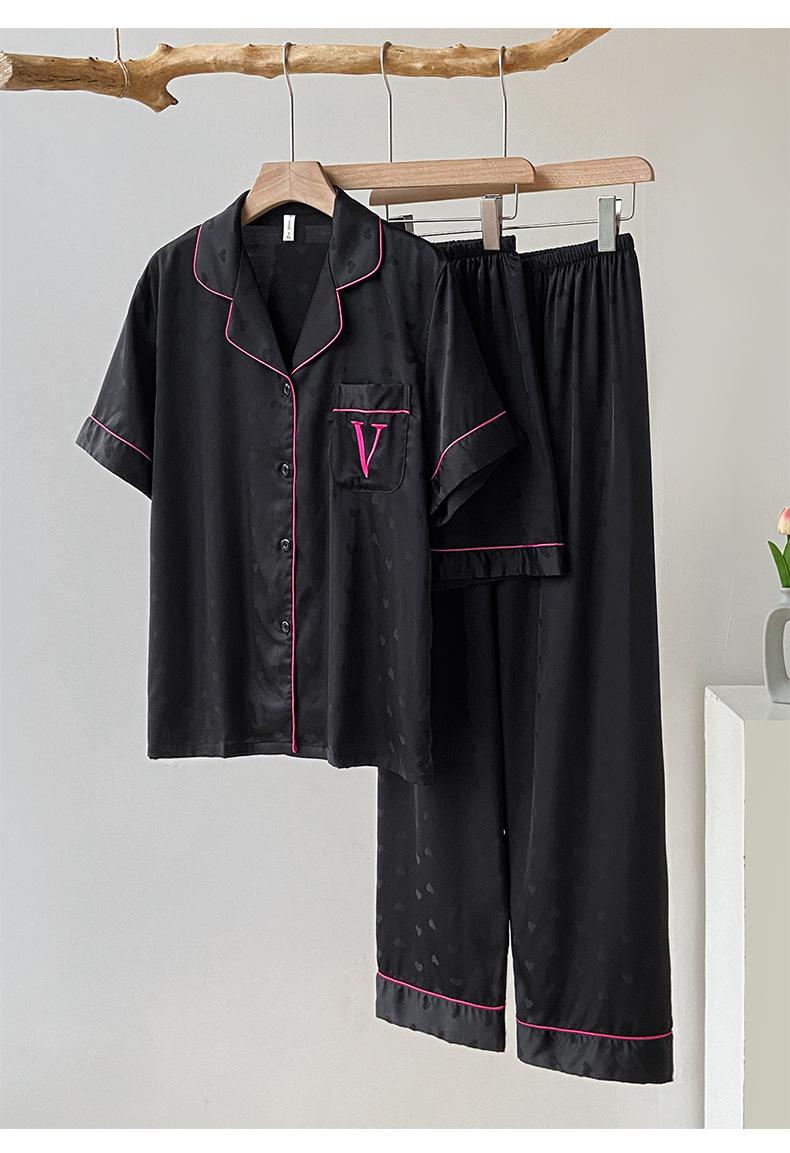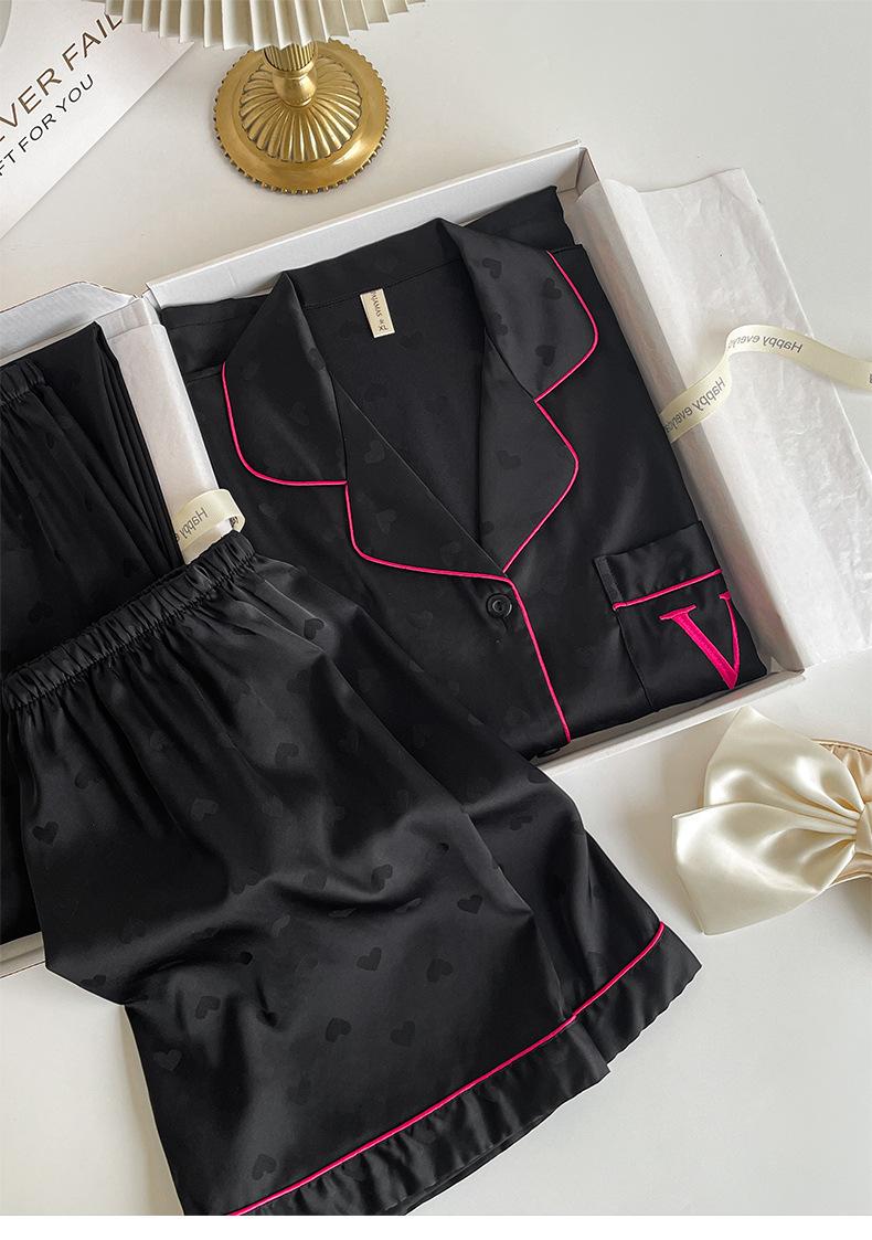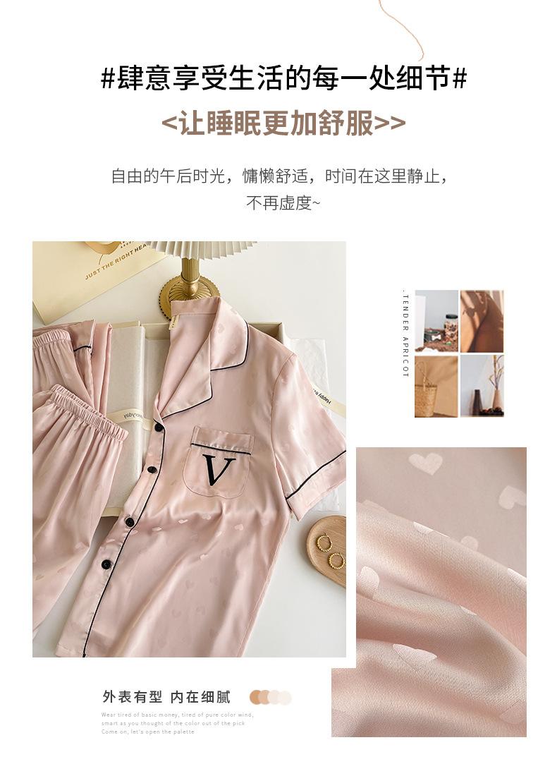 Pijama de Verano para Mujer Delgada Nueva Seda de Hielo y Nieve Traje de Verano Manga Corta Seda de Alta Gama Ropa para el Hogar Conjunto de Tres Piezas