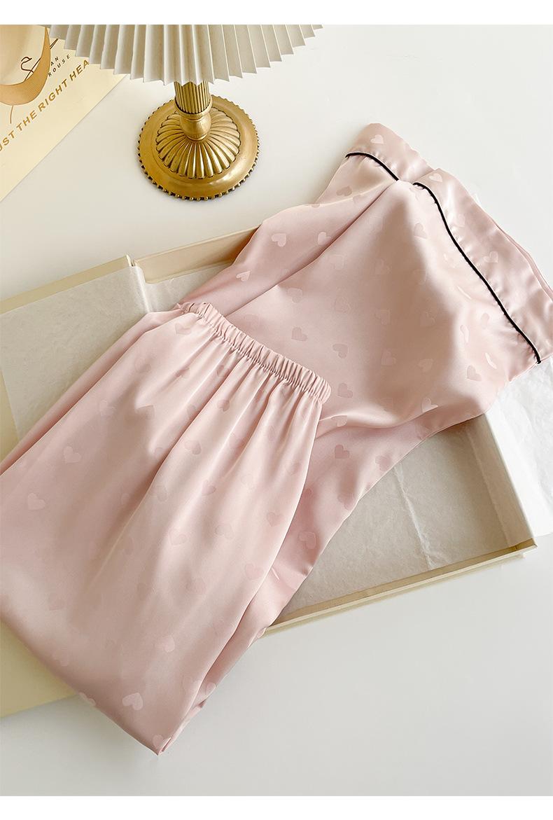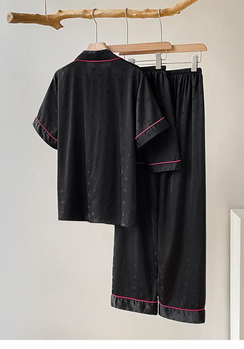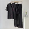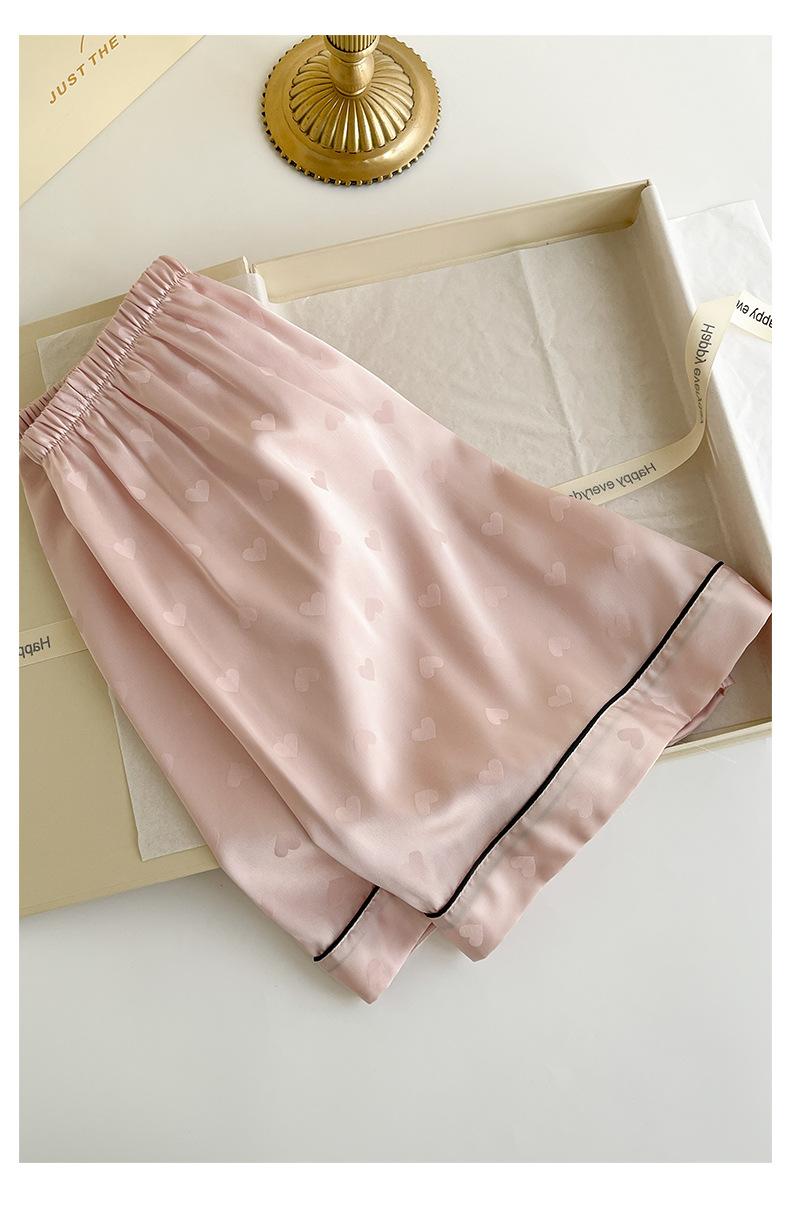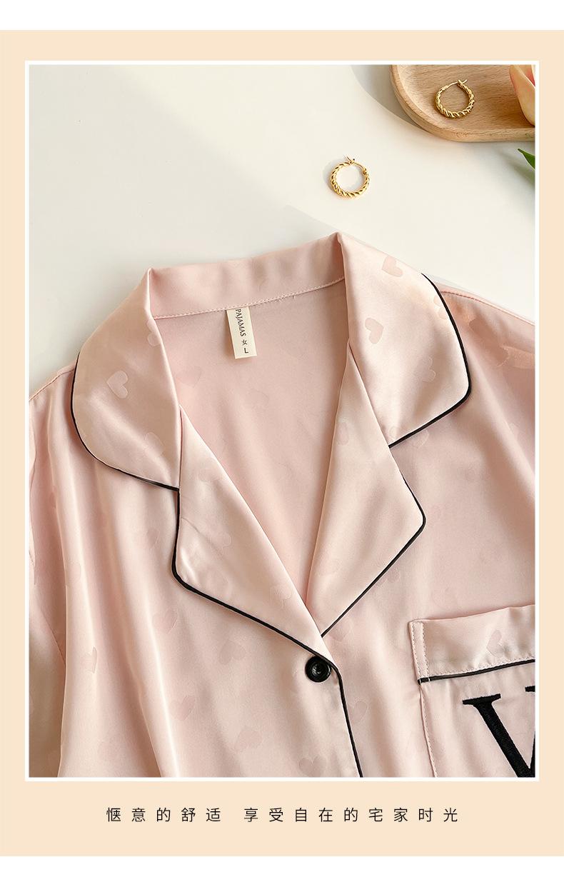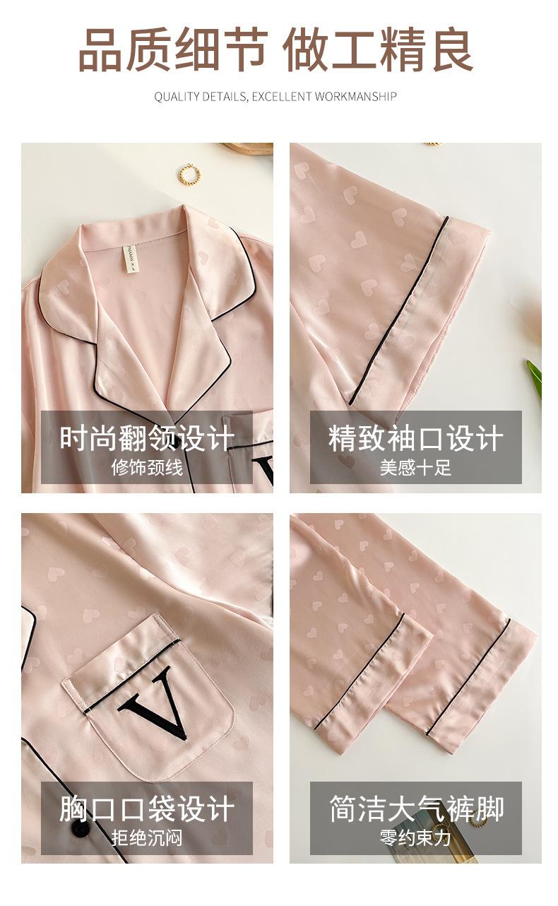 Pijama de Verano para Mujer Delgada Nueva Seda de Hielo y Nieve Traje de Verano Manga Corta Seda de Alta Gama Ropa para el Hogar Conjunto de Tres Piezas