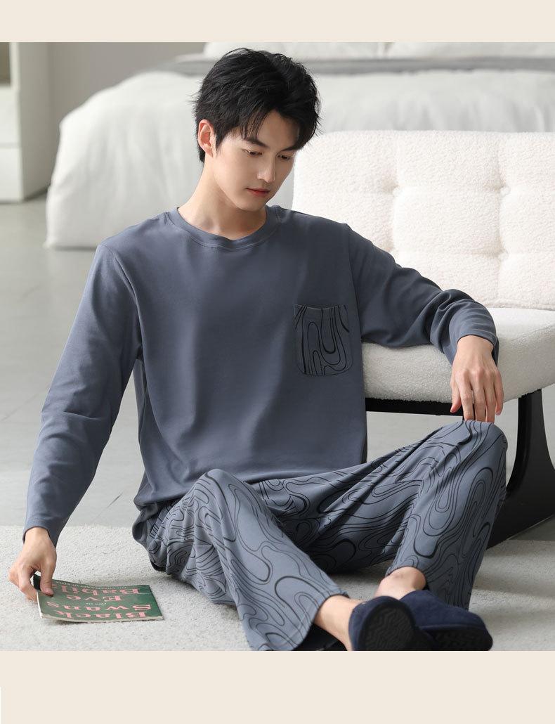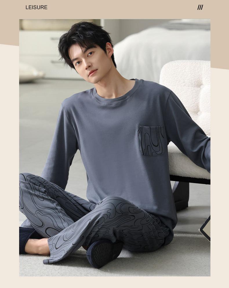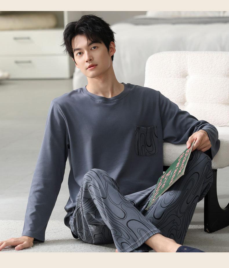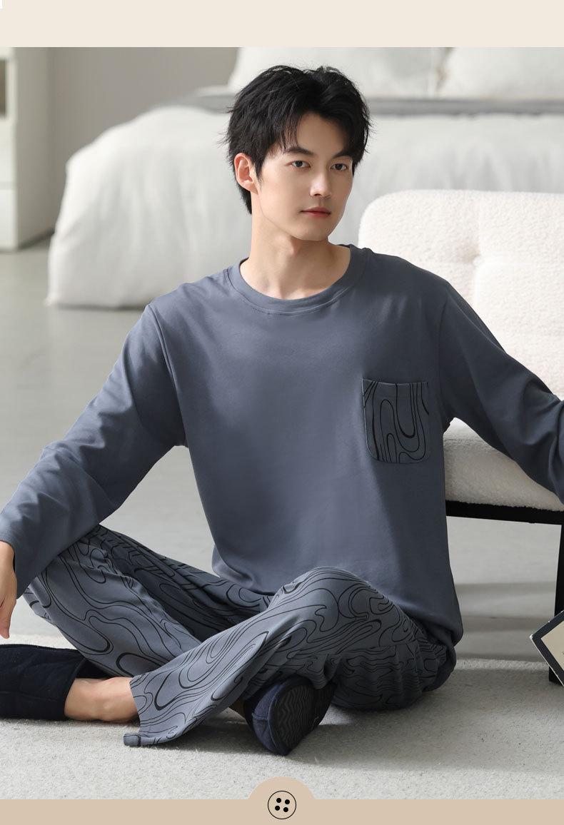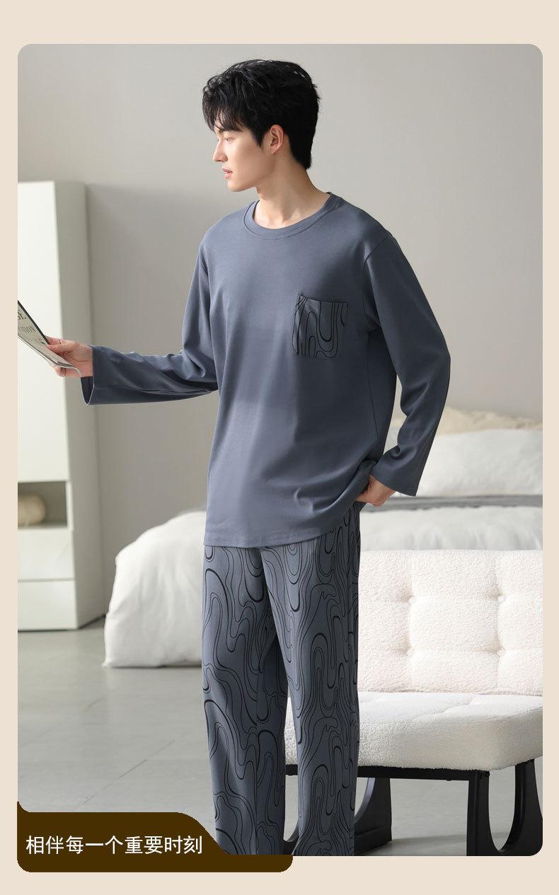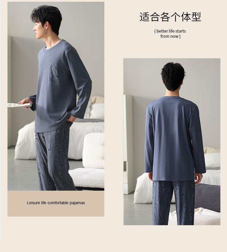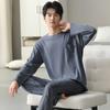 Pijama de Algodón Puro para Hombre de Manga Larga y Pantalón Largo para Primavera y Otoño 2025, Conjunto Casual Holgado para Estar en Casa