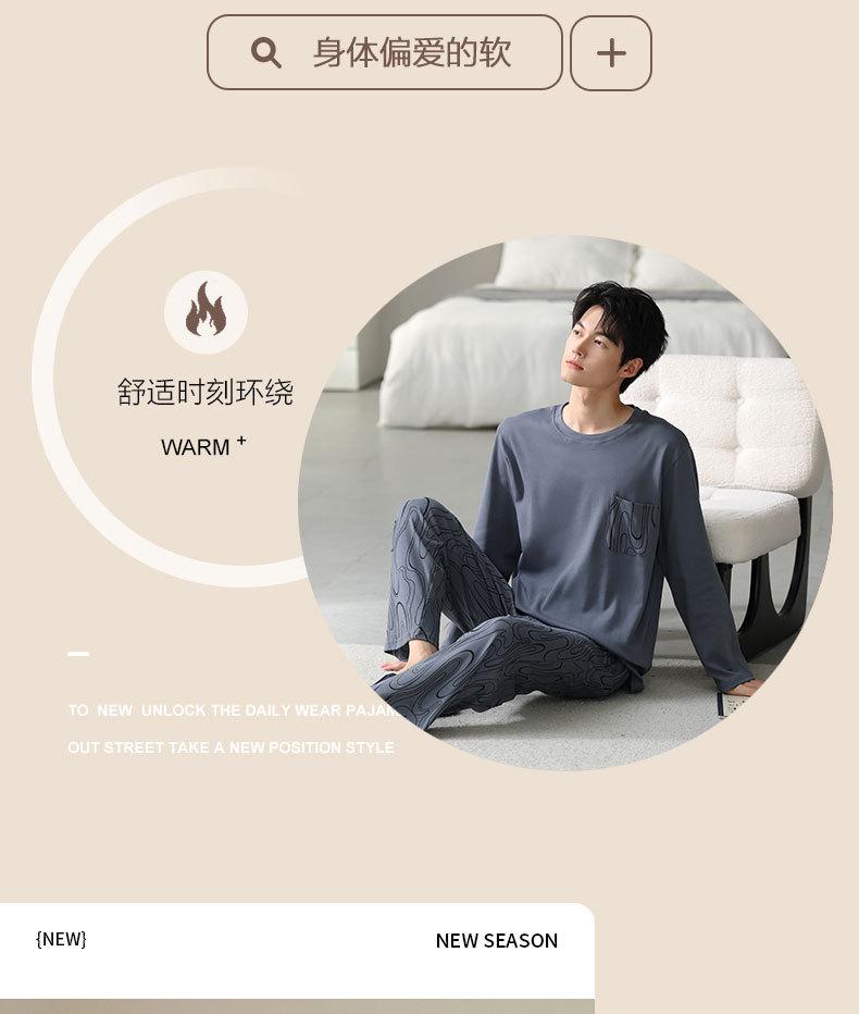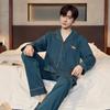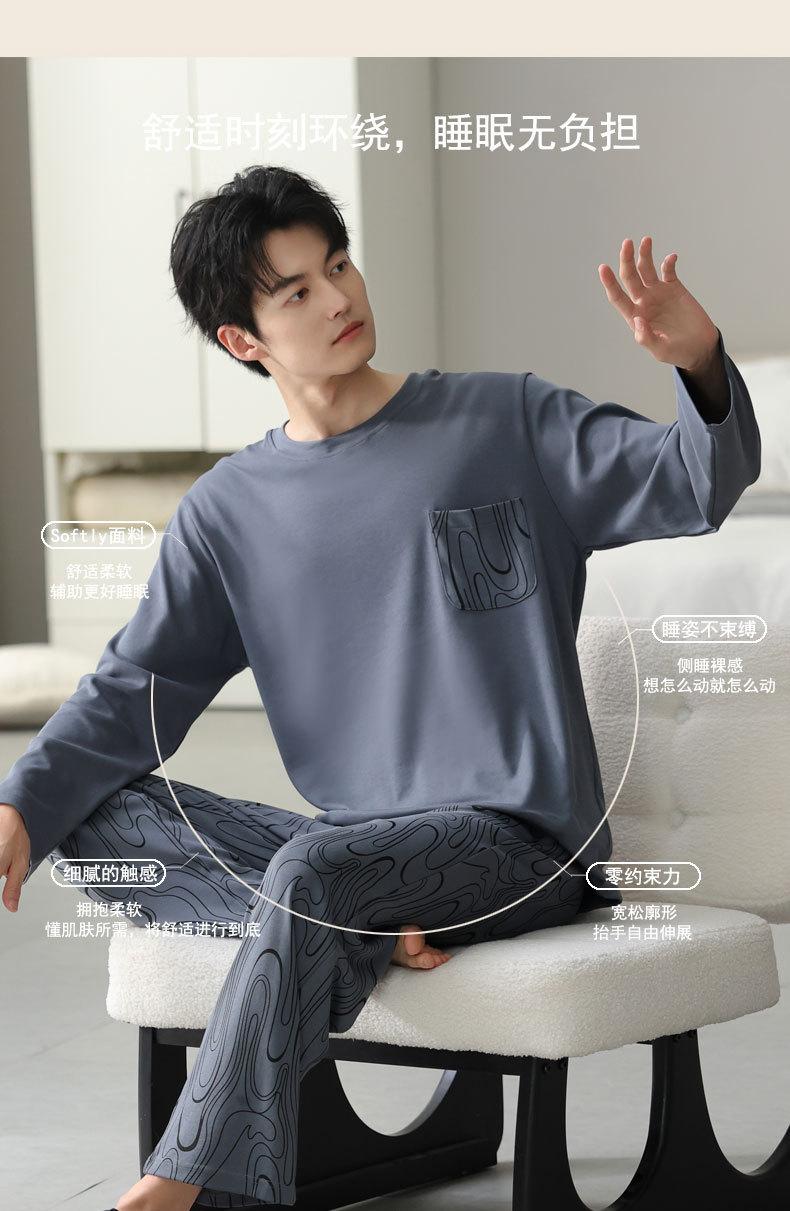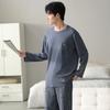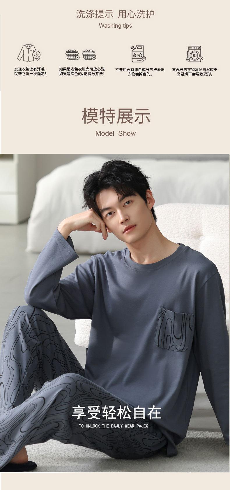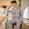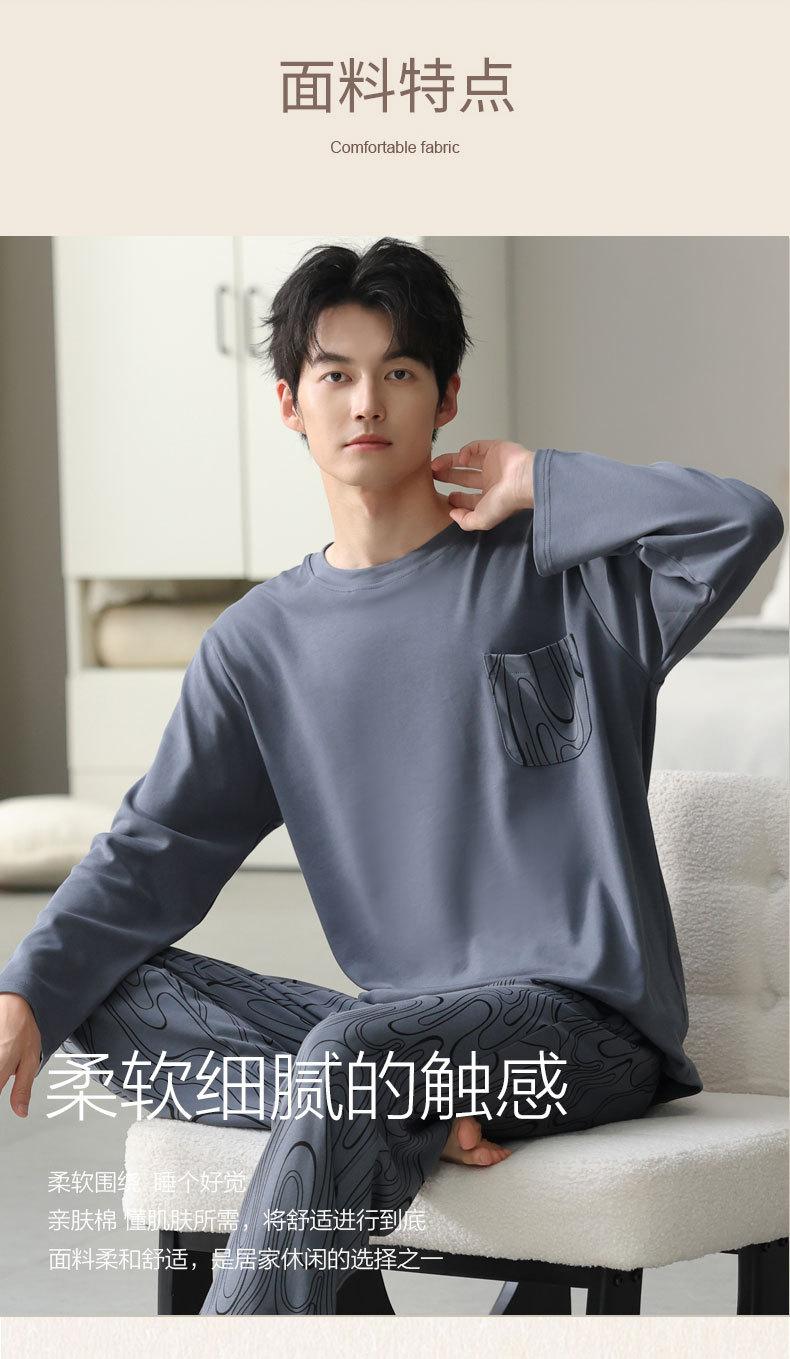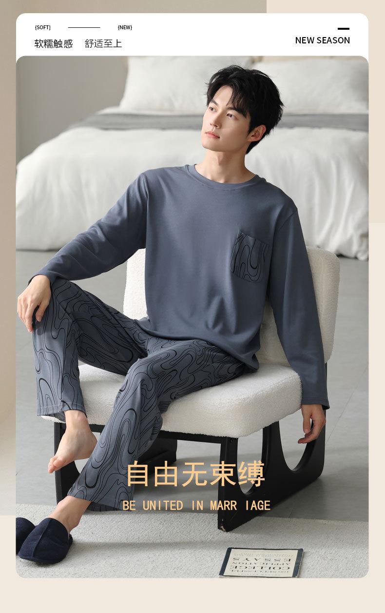 Pijama de Algodón Puro para Hombre de Manga Larga y Pantalón Largo para Primavera y Otoño 2025, Conjunto Casual Holgado para Estar en Casa