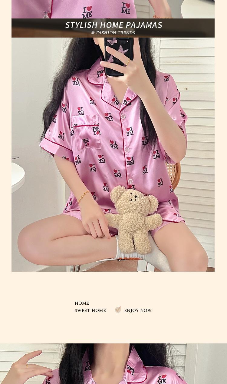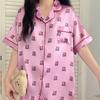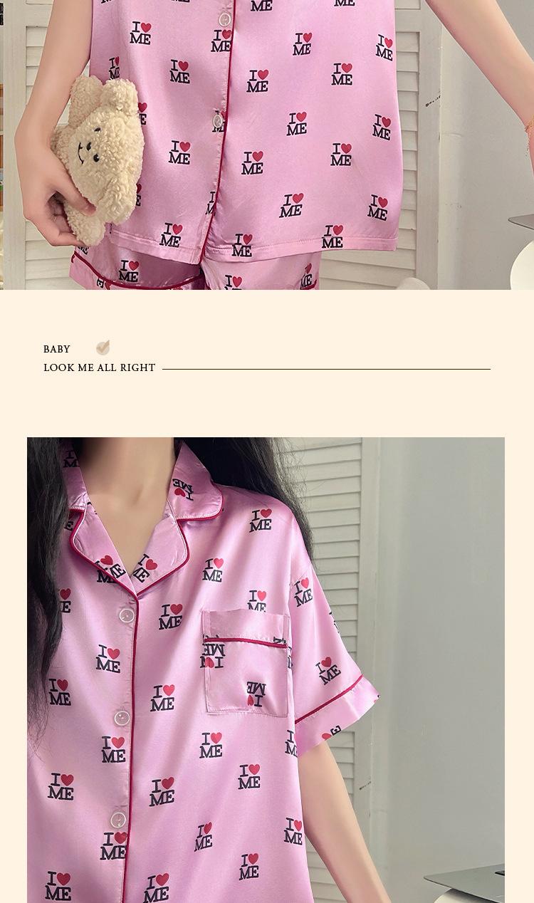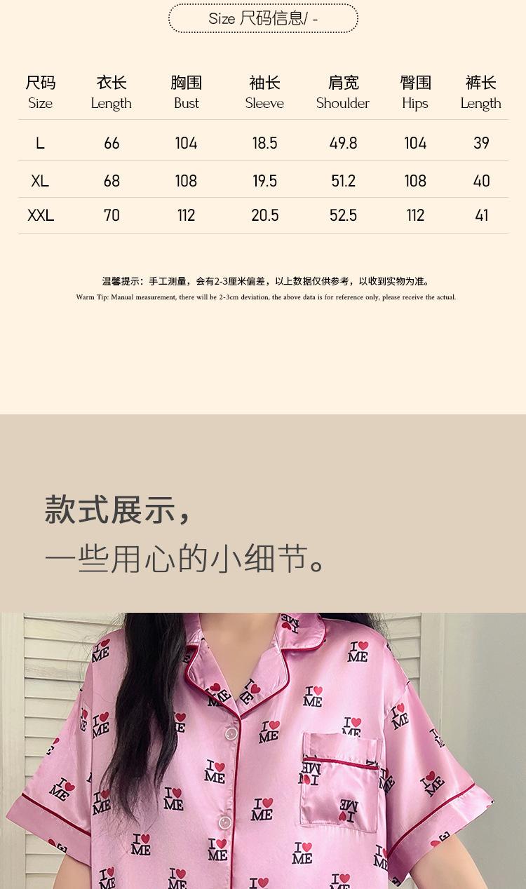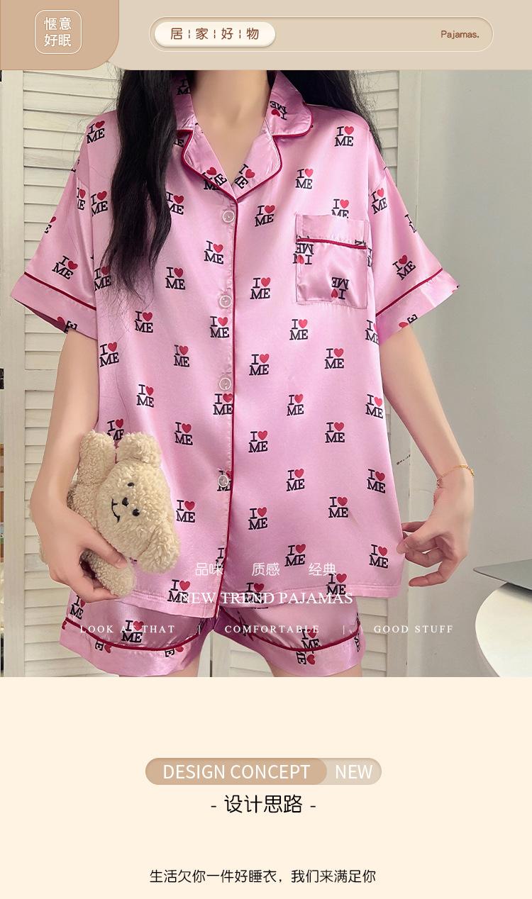Pijama de Seda de Hielo para Mujer Verano Nuevo Estilo de Alta Gama Letra Corazón Pequeño Delgada Ropa de Casa Conjunto de Dos Piezas Se Puede Usar Afuera Venta al Mayoreo