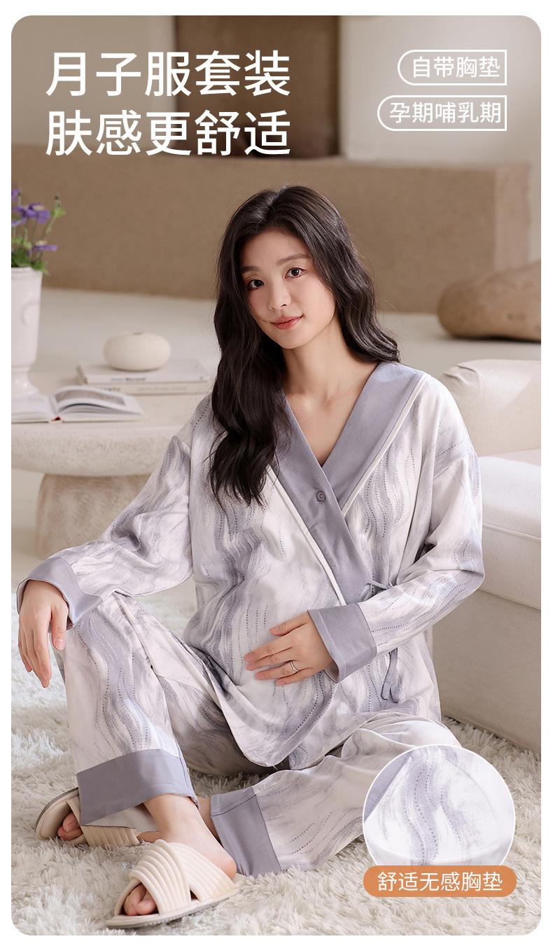 Cárdigan Kimono de Algodón Puro Estilo Nuevo Xi Yue con Almohadillas para el Busto Ropa Postparto Otoño 2025 Pijama de Maternidad Embarazo Lactancia
