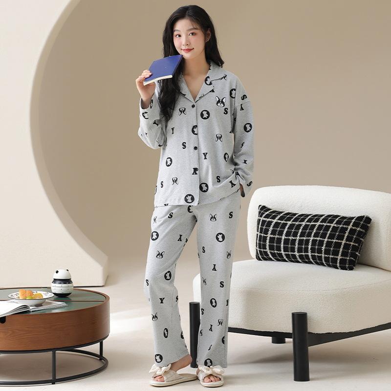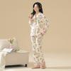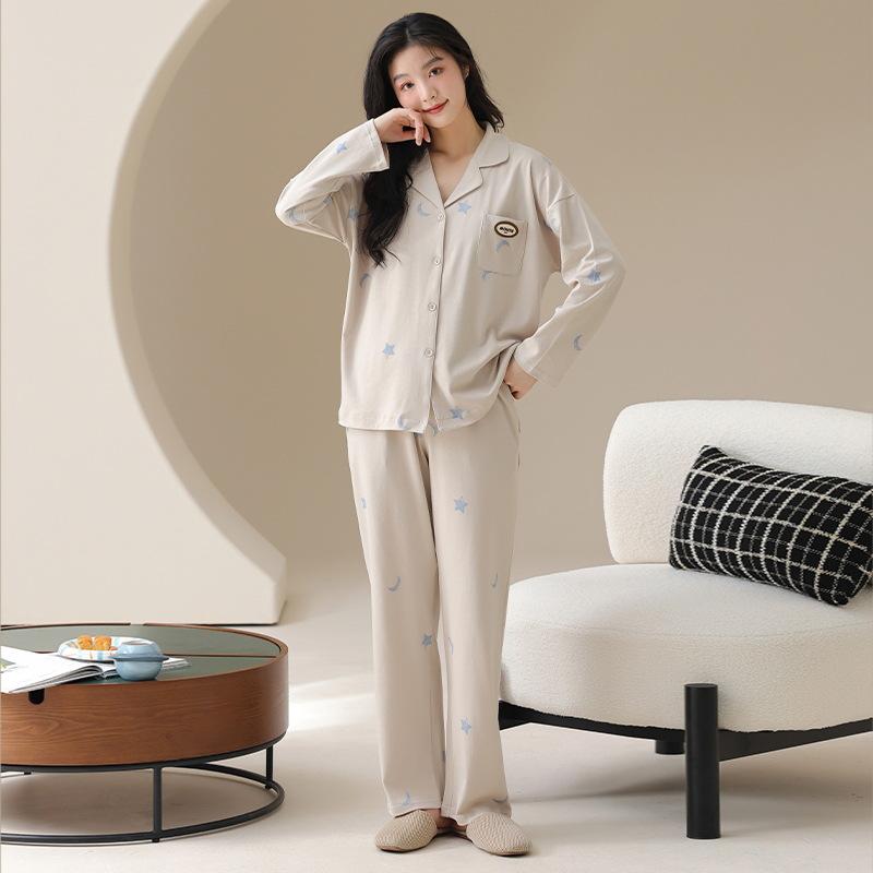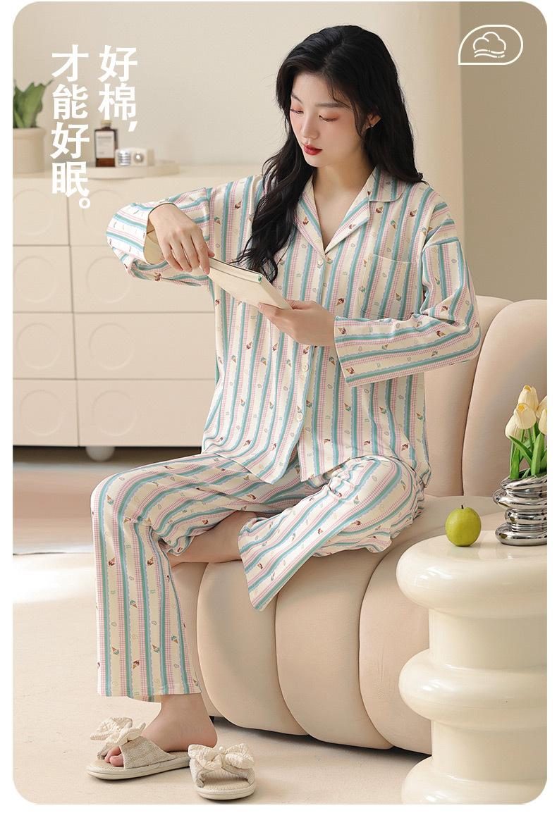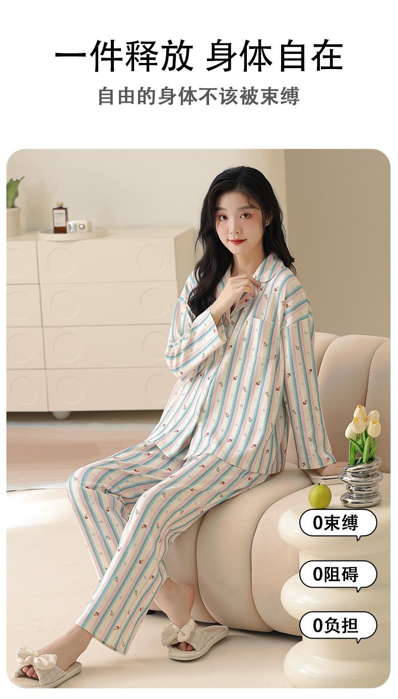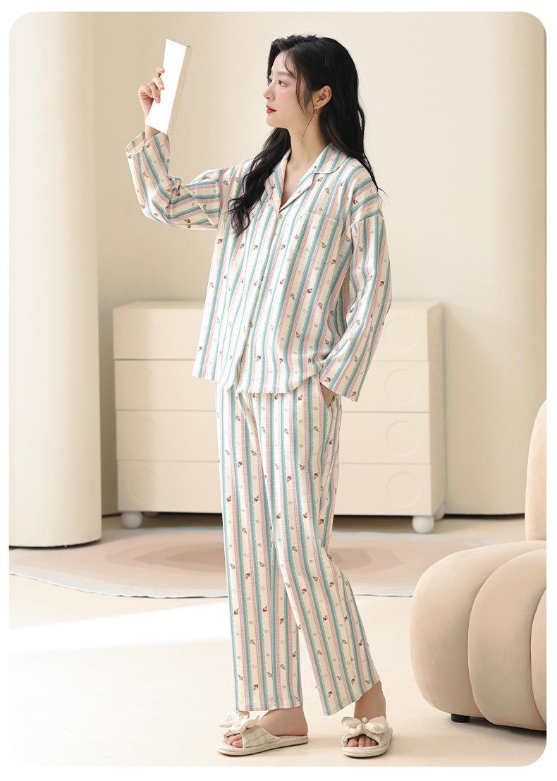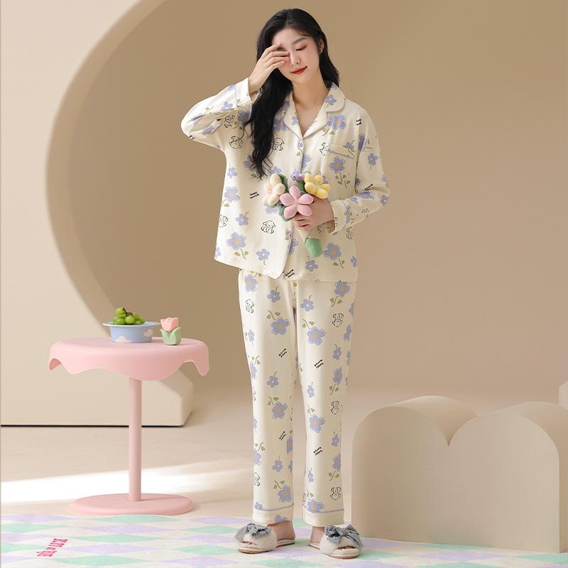 Pijama de Algodón Puro para Mujer Primavera y Otoño Manga Larga Antibacteriano Antiácaros Suave Cárdigan Holgado Dulce Se Puede Usar Fuera Conjunto Ropa para el Hogar