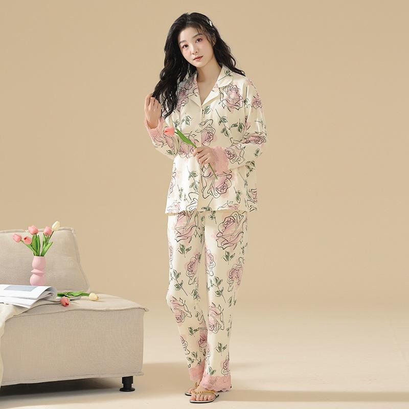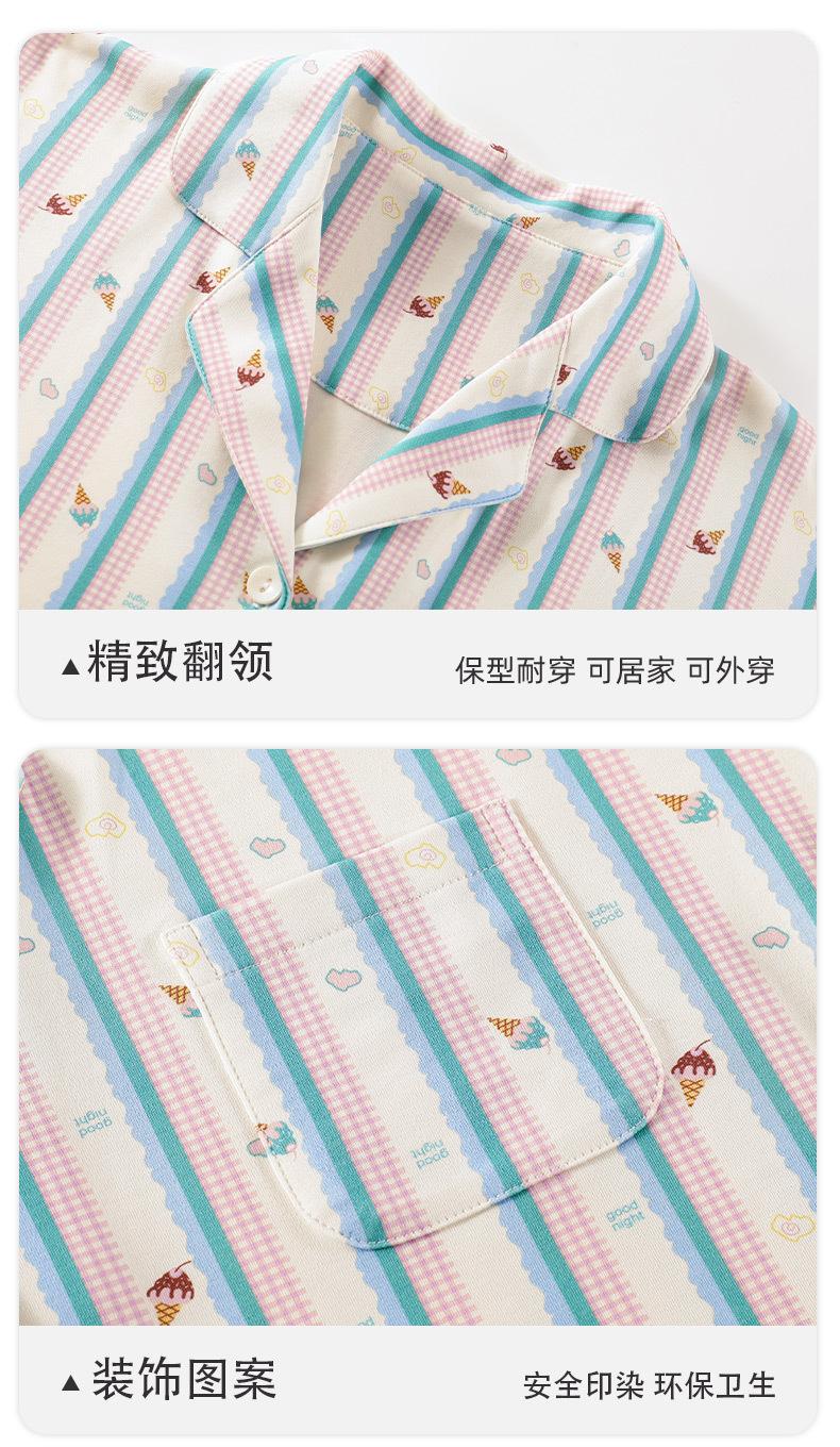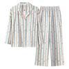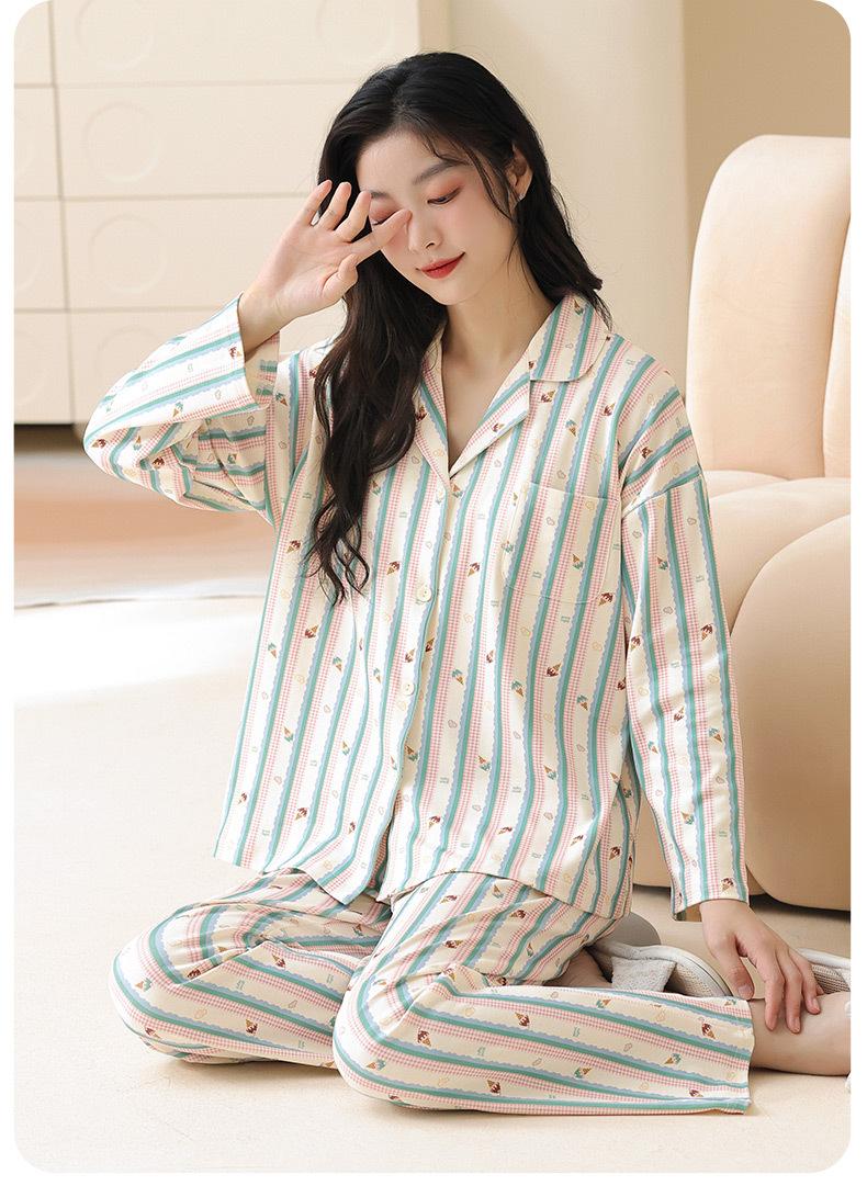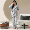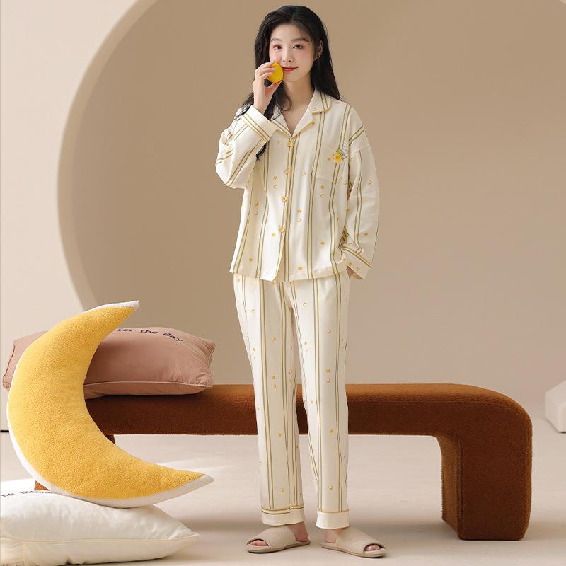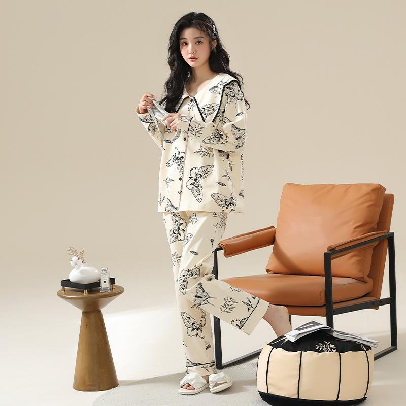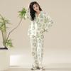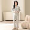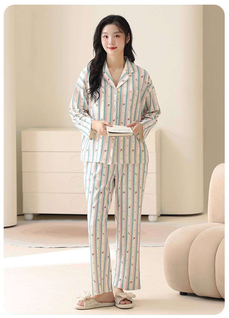 Pijama de Algodón Puro para Mujer Primavera y Otoño Manga Larga Antibacteriano Antiácaros Suave Cárdigan Holgado Dulce Se Puede Usar Fuera Conjunto Ropa para el Hogar