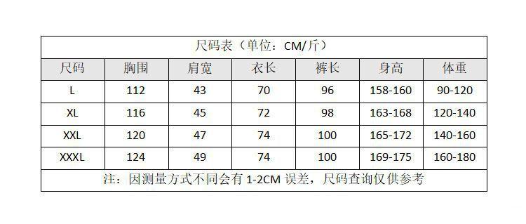 L size (90-120 catties), XL (120-140 catties), XXL (140-160 catties), 3XL (160-180 catties)