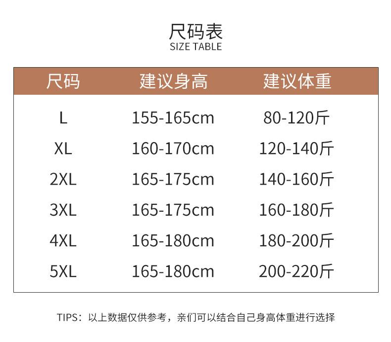 L size (80-120 catties), XL (120-140 catties), XXL (140-160 catties), 3XL (160-180 catties), 4XL (180-200 catt...