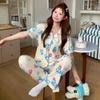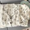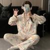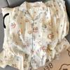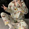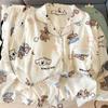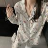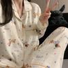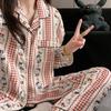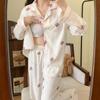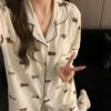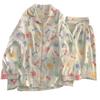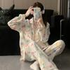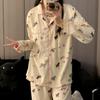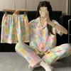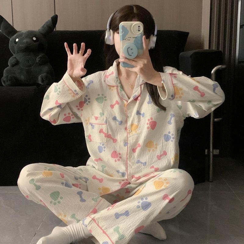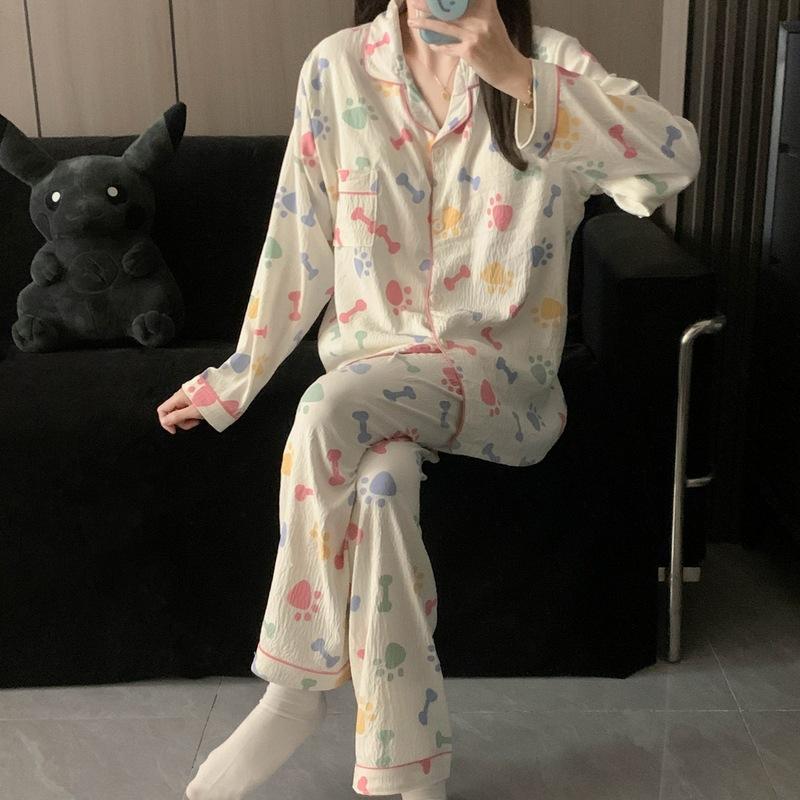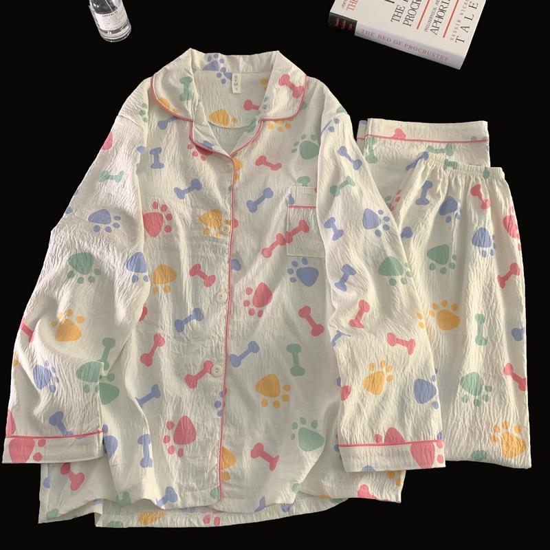 Pijama de Talla Grande Transfronteriza del Fabricante para Mujer, Dulces Huellitas Coloridas, Primavera y Otoño Manga Larga Lindo Ropa para Casa Traje de Dos Piezas
