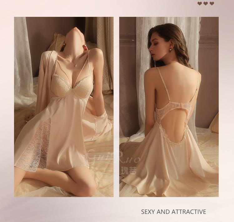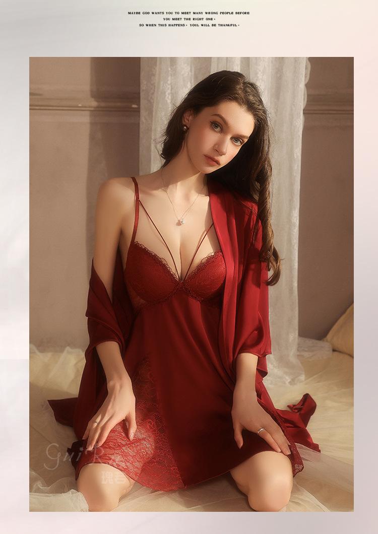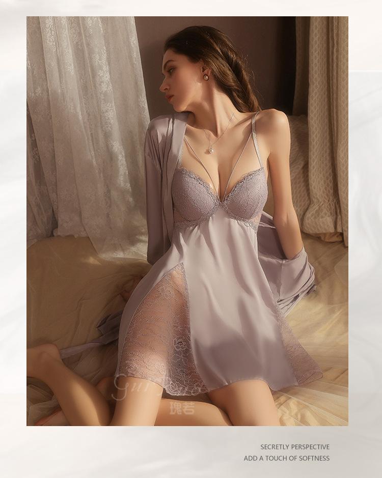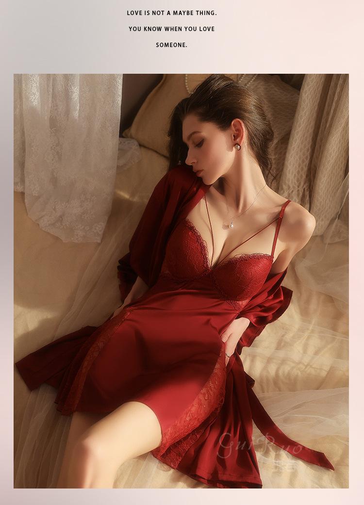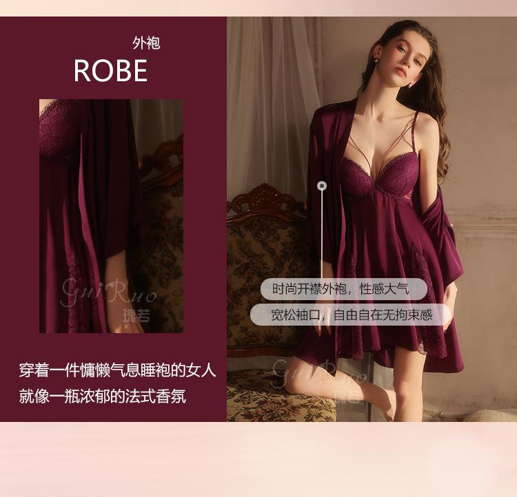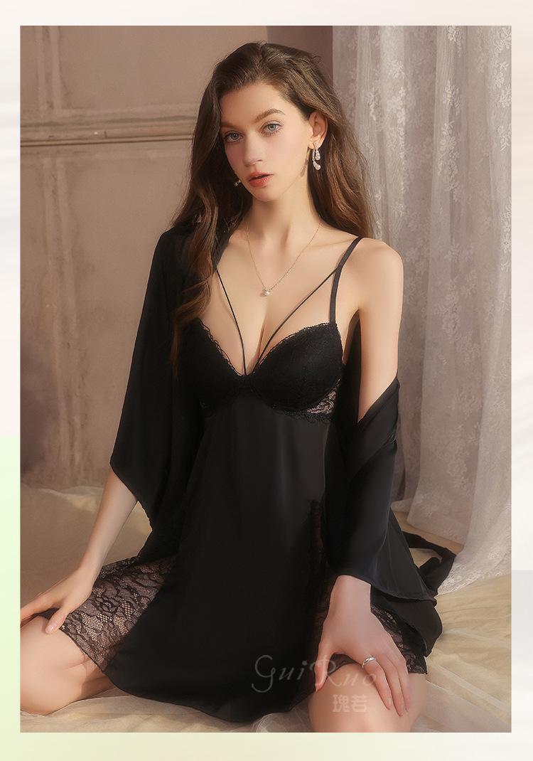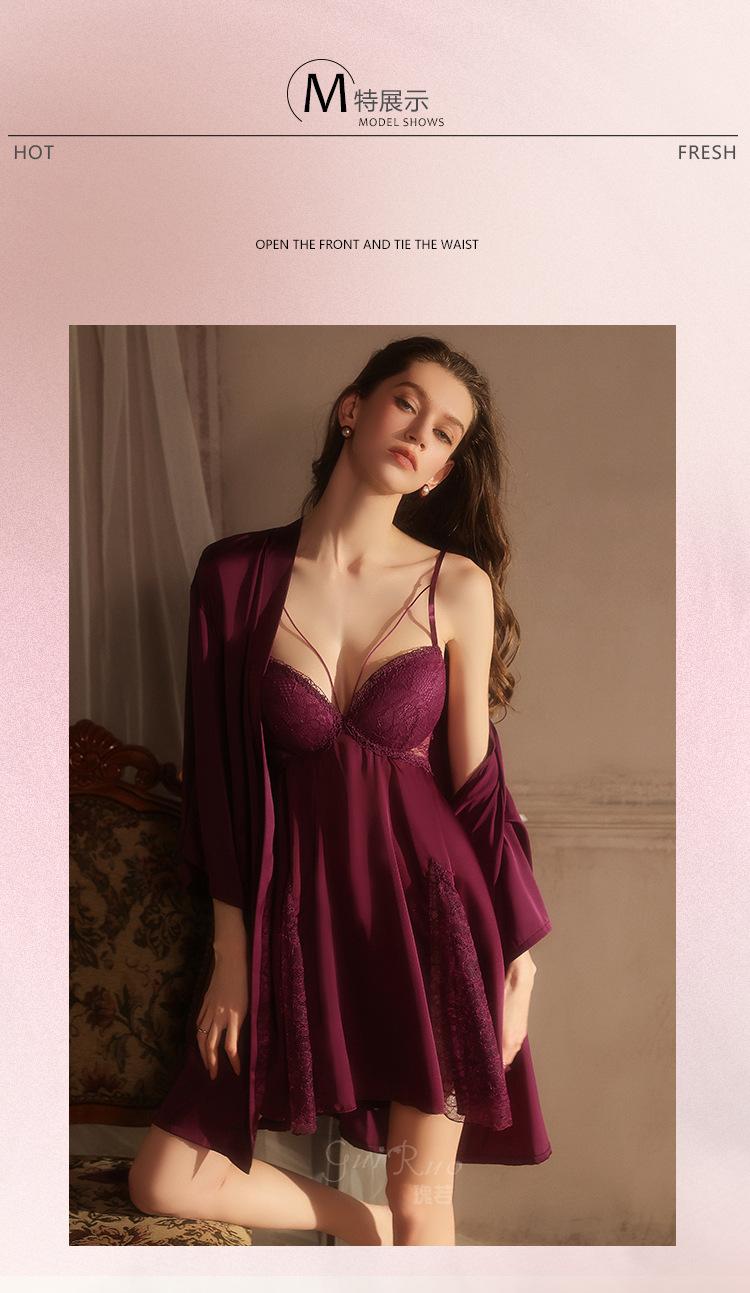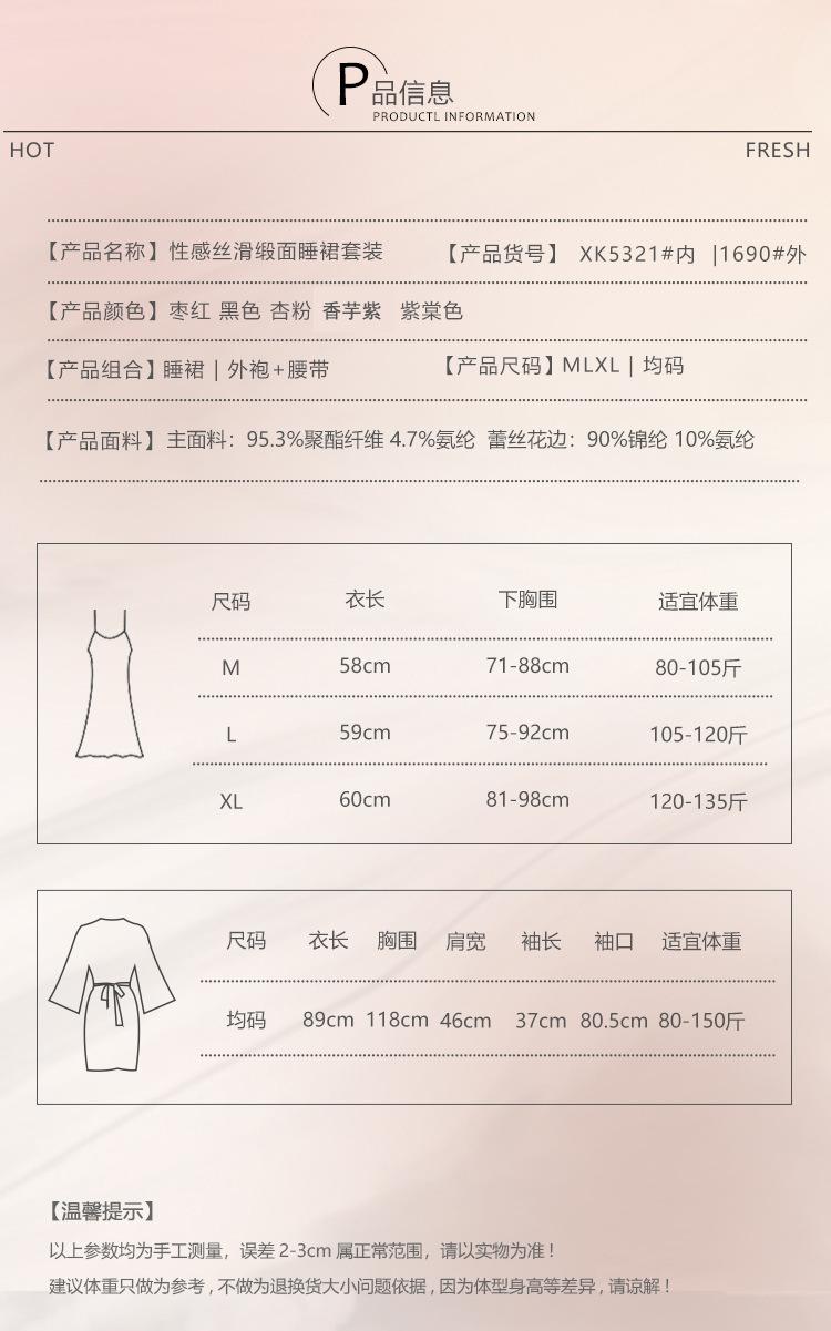 XK5321 black (nightgown), 1690 Black (Robe + Belt), XK5321 purplish red (nightgown), 1690 purplish brown (oute...