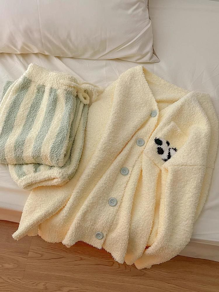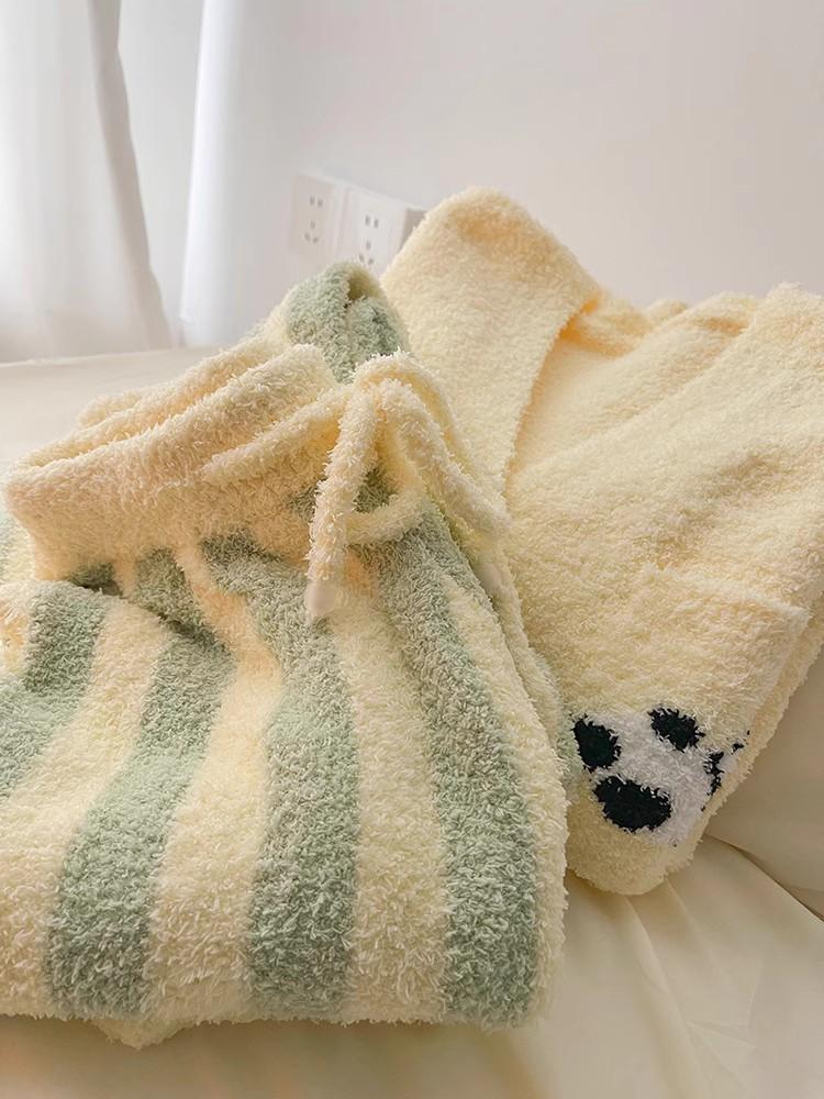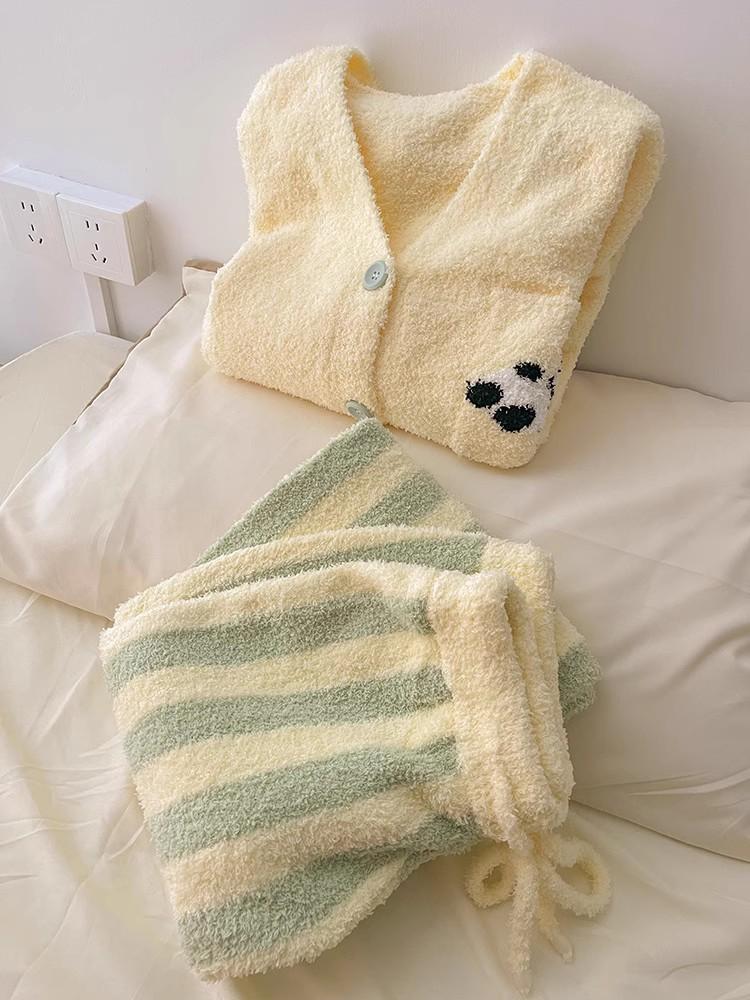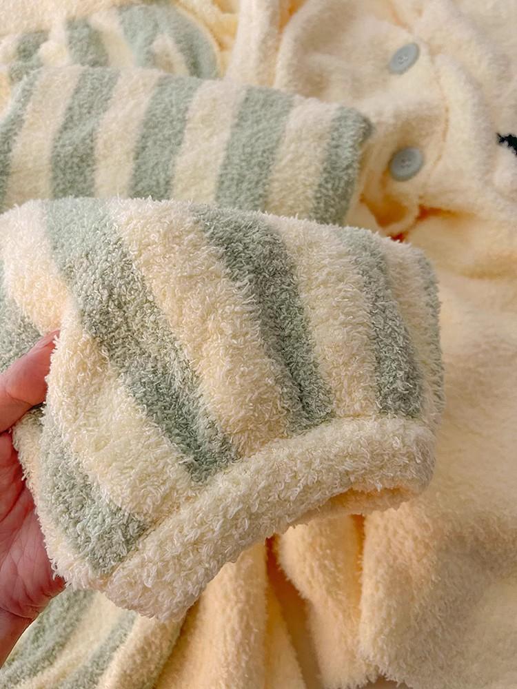 Pijama de Terciopelo Suave para Niña Conjunto de Ropa de Casa de Punto para Mujer Invierno Extra Grueso Cálido Talla Extra Estilo Invierno Ropa Exterior